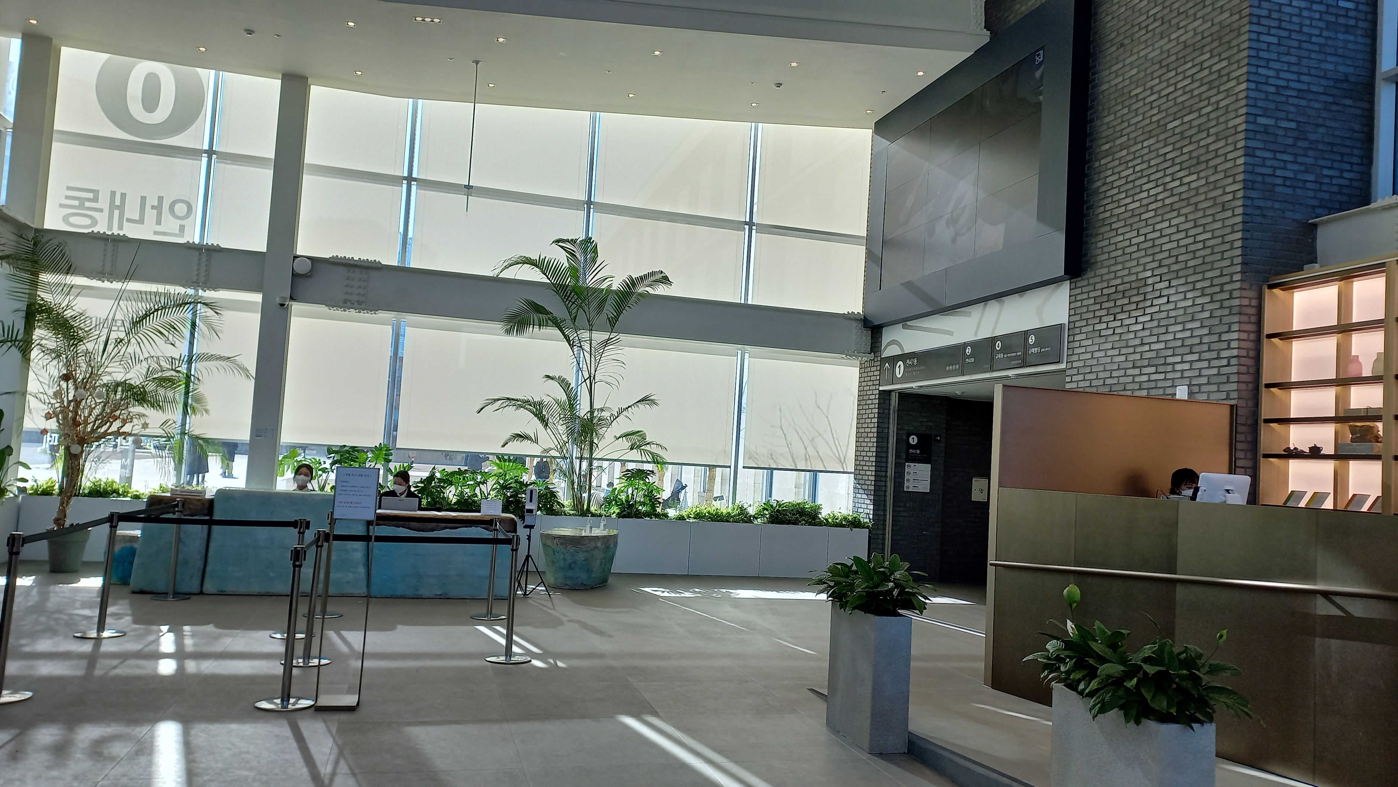 박물관의 종합적인 안내를 돕는 공간으로 전면이 유리로 되어 있어 시원한 개방감을 보여줍니다,