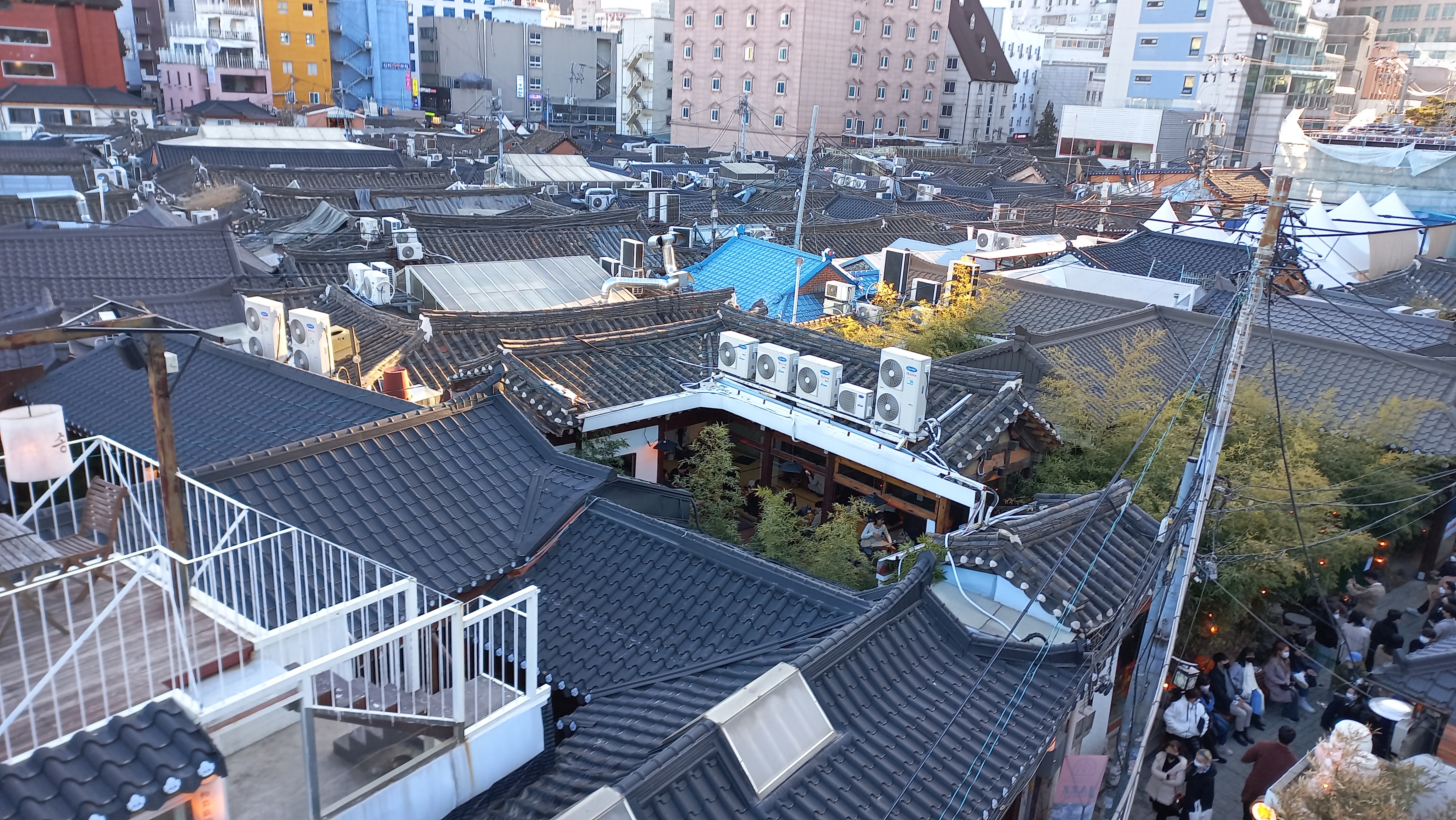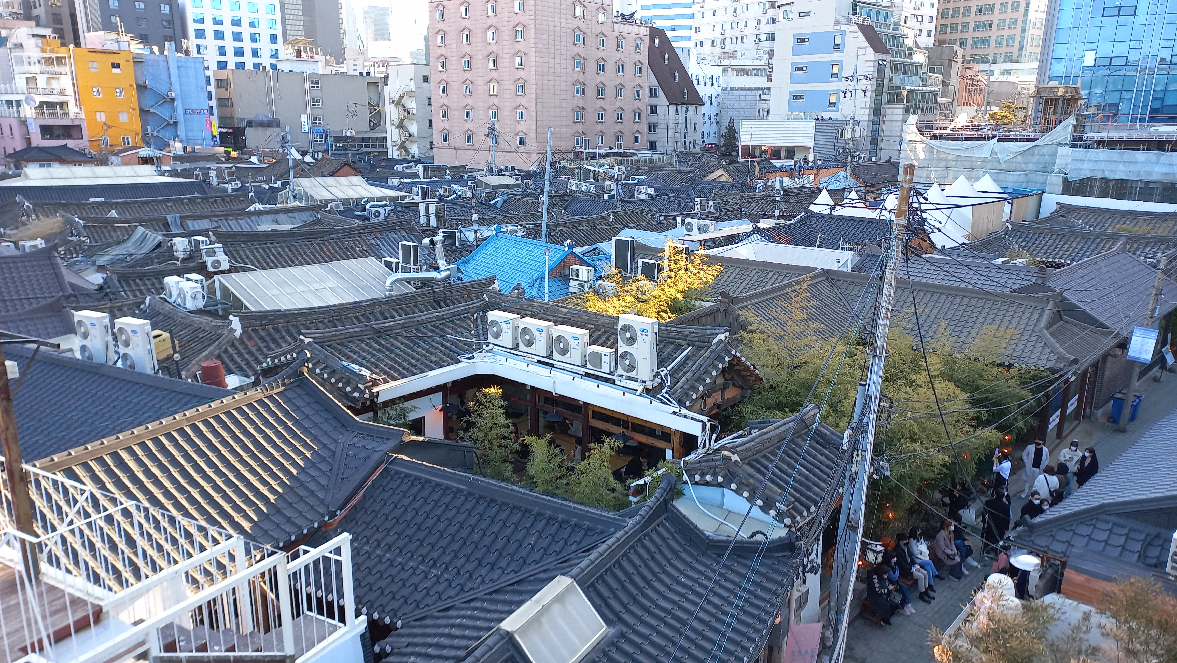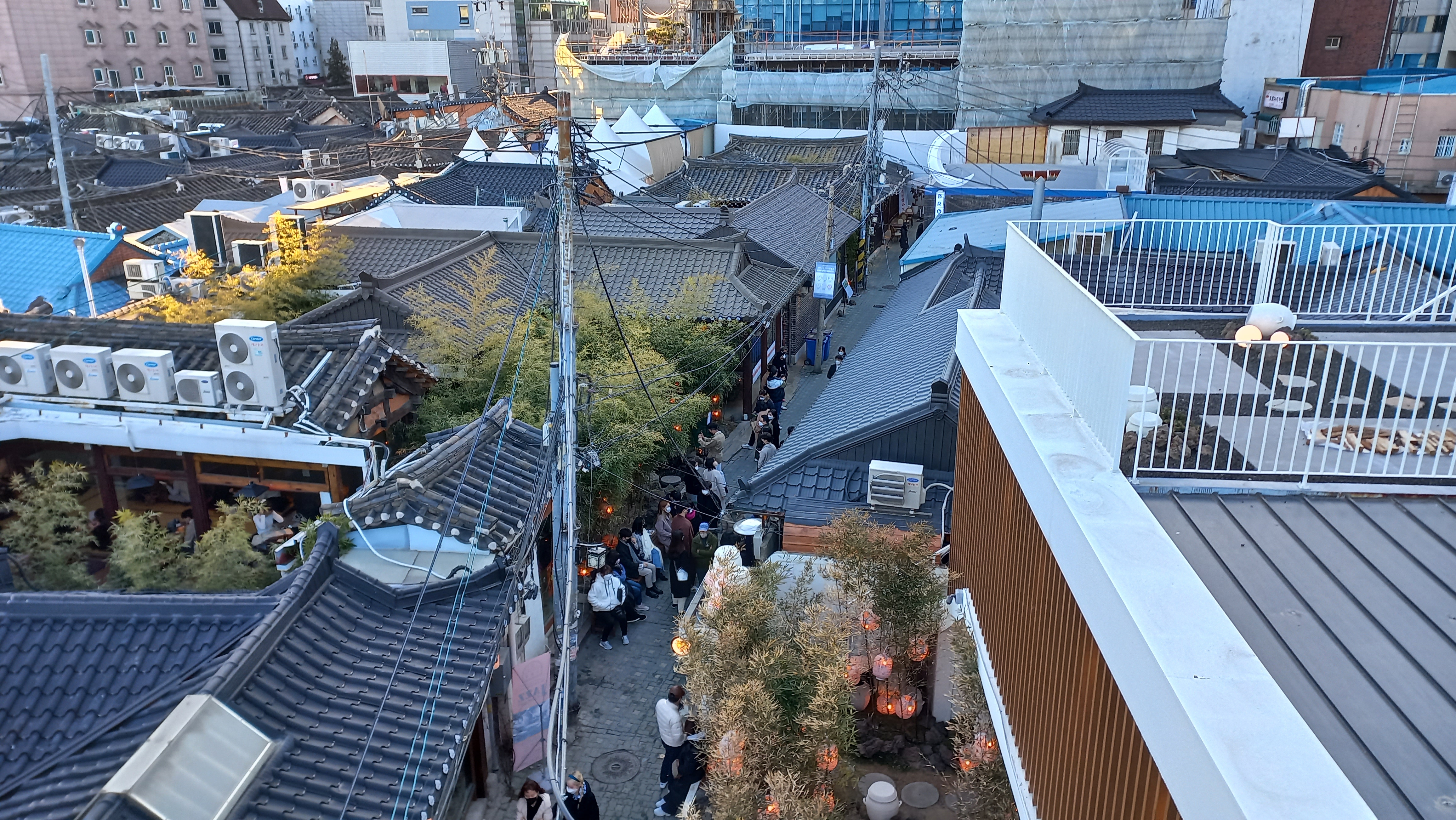 우즈베이커리 카페에서 바라본 익선동 한옥마을 풍경을 담았습니다.