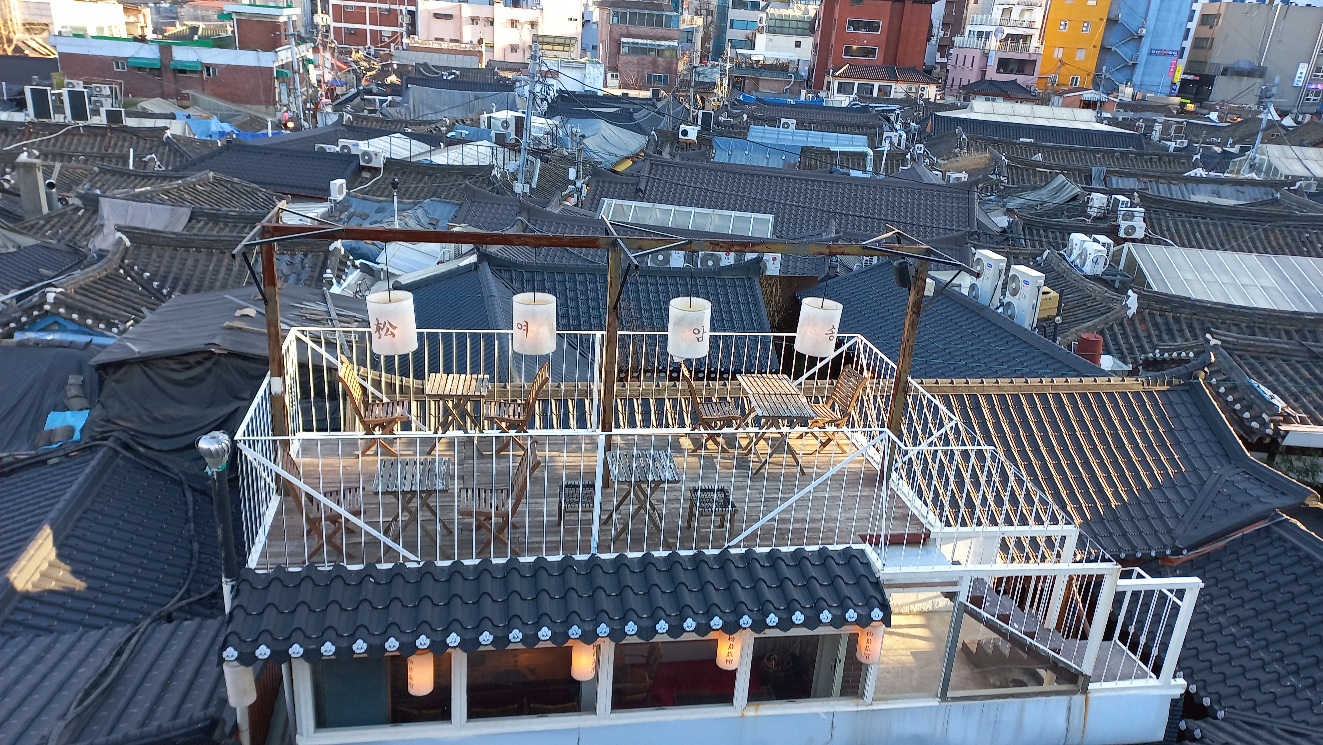 한옥마을이라는 특성으로 2층만 되면 익선동 한옥마을의 지붕들을 조망할 수 있는데, 이곳은 2층 건물 옥상이라 전망이 무척 좋답니다.