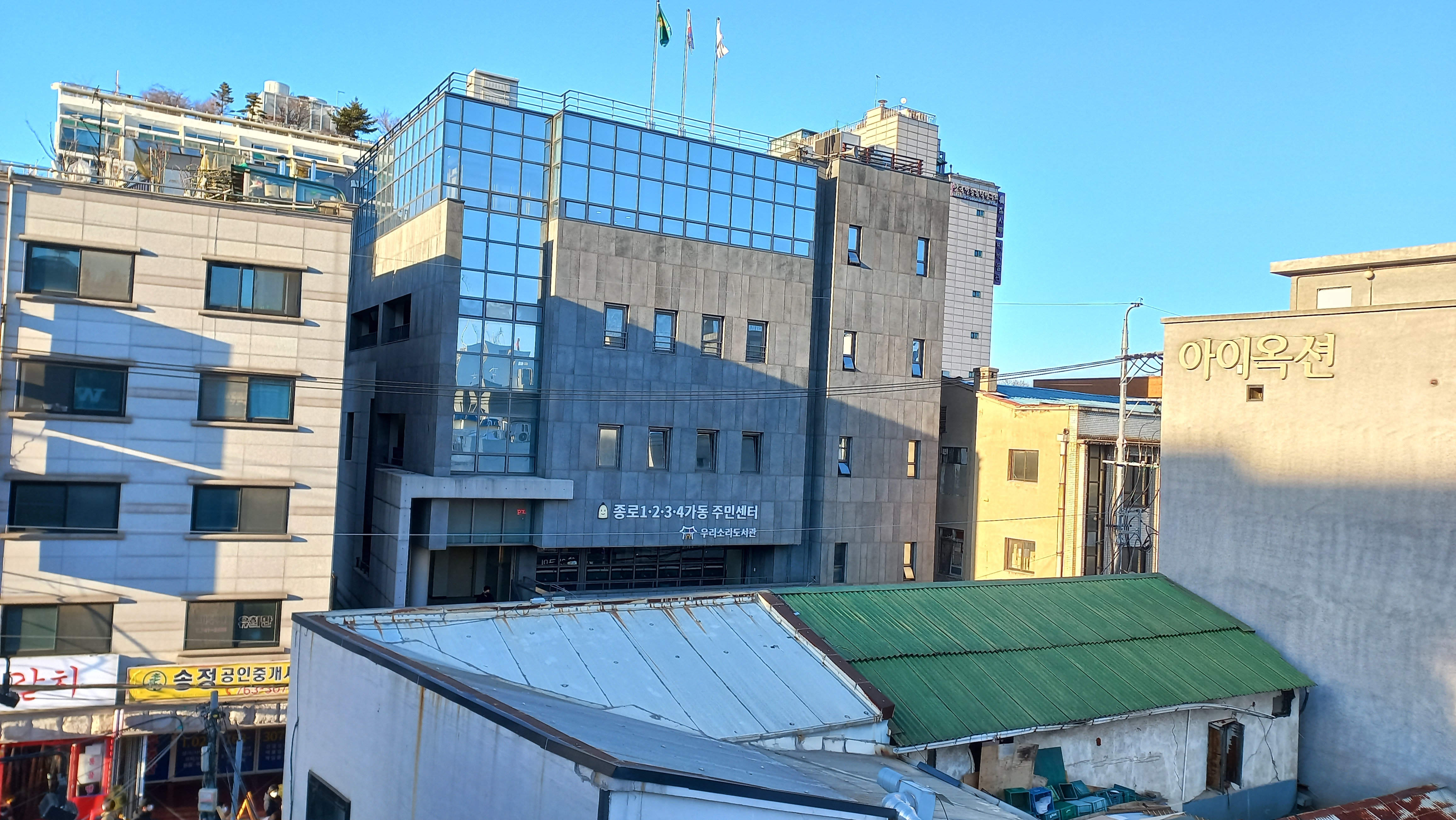 종로 1234가동 주민센터 맞은편 골목에 2층 건물로 이루어져 있습니다.