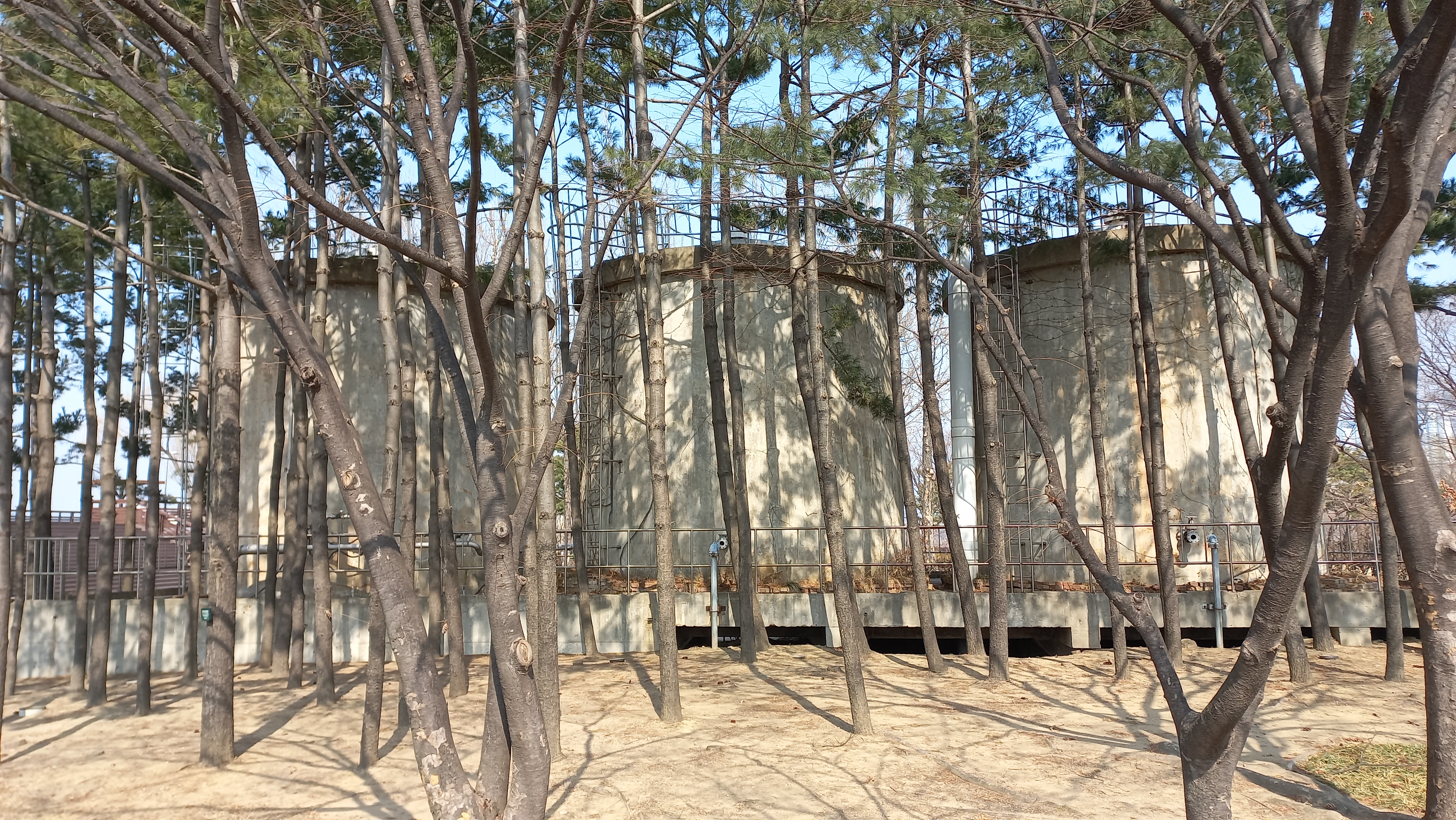 이곳은 과거 정수장으로 활용할 당시에는 정수하고 남은 불순물을 물과 찌꺼기로 다시 분리시켜 처리하던 곳이랍니다.