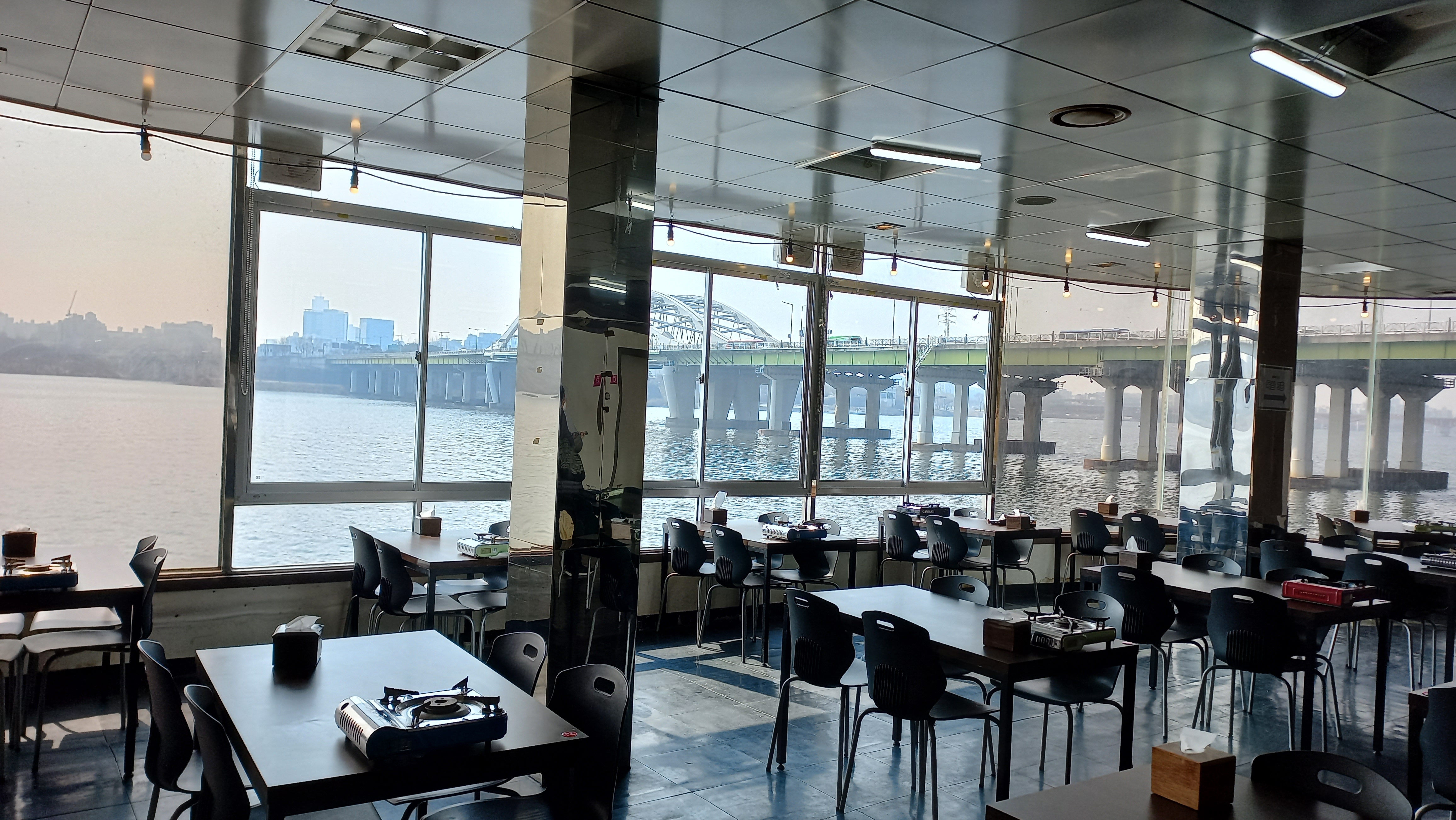 야외 테라스는 없고 통 큰 창문을 통해 한강을 바라볼 수 있는 곳입니다.