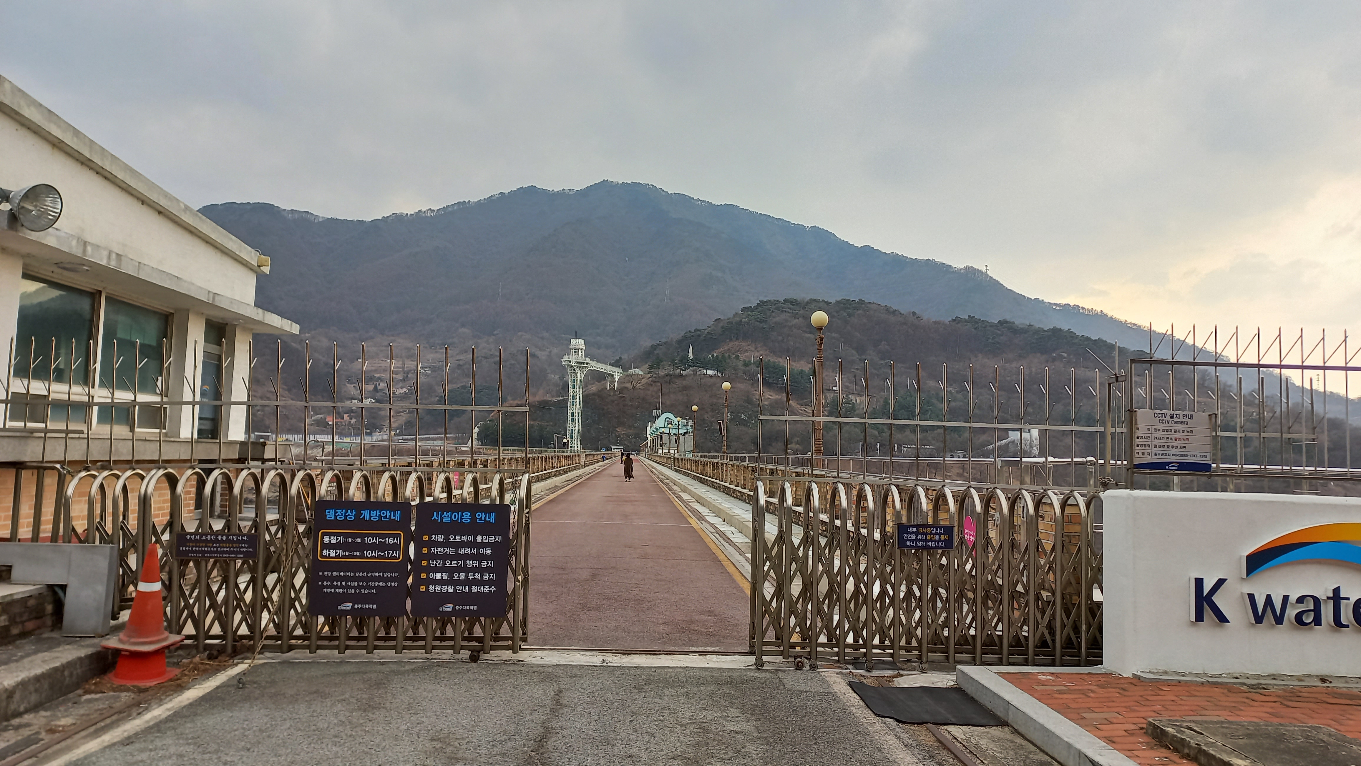 K워터충주댐 물문화관에서 500여 미터 도로를 따라 올라가면 댐 정상에 다다릅니다.