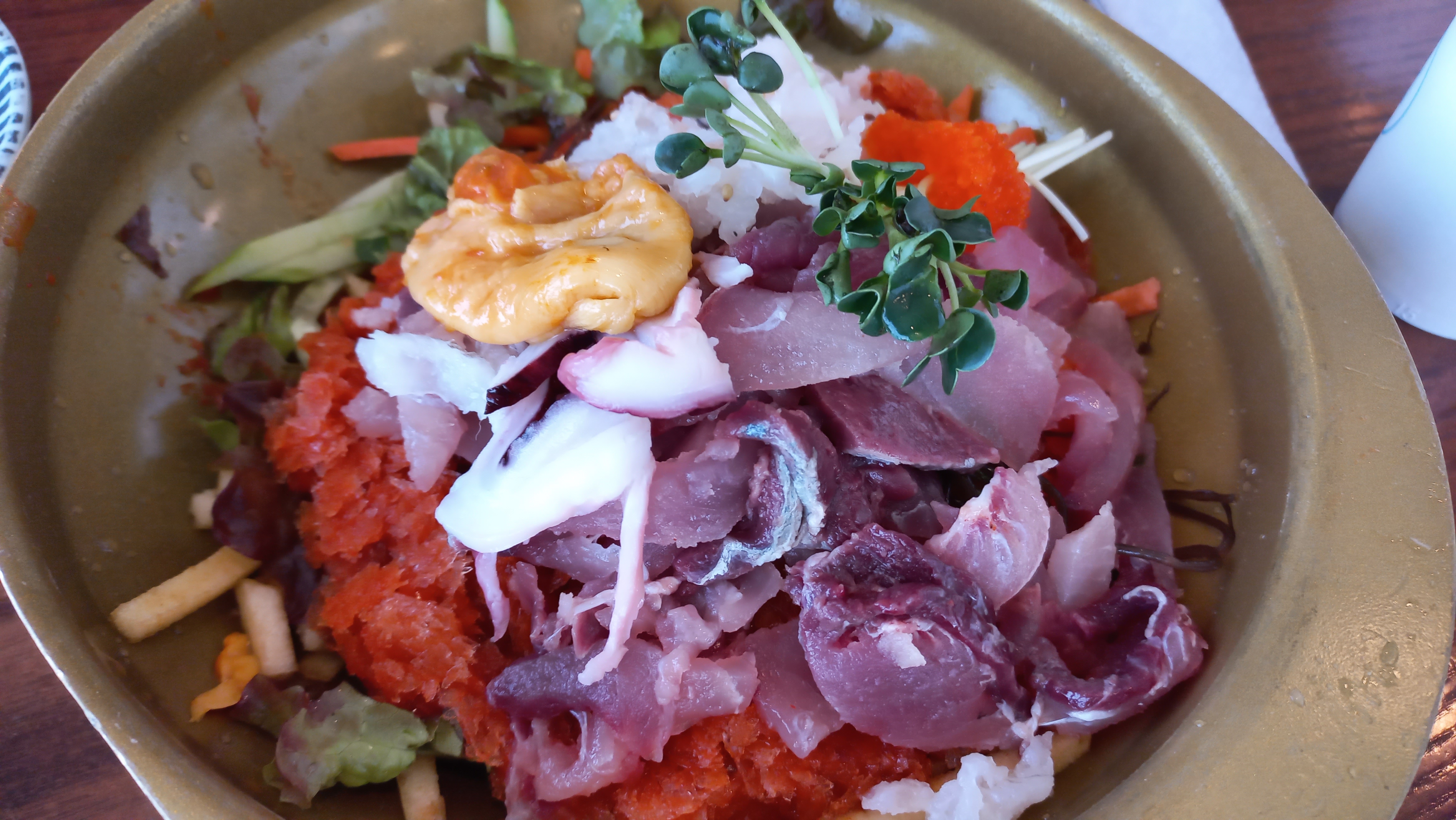 일반물회(17,000원), 여러가지 횟감과 멍게, 문어, 날치알이 들어 있어 해전물회에 비해 활전복, 해삼이 빠진 메뉴입니다.
