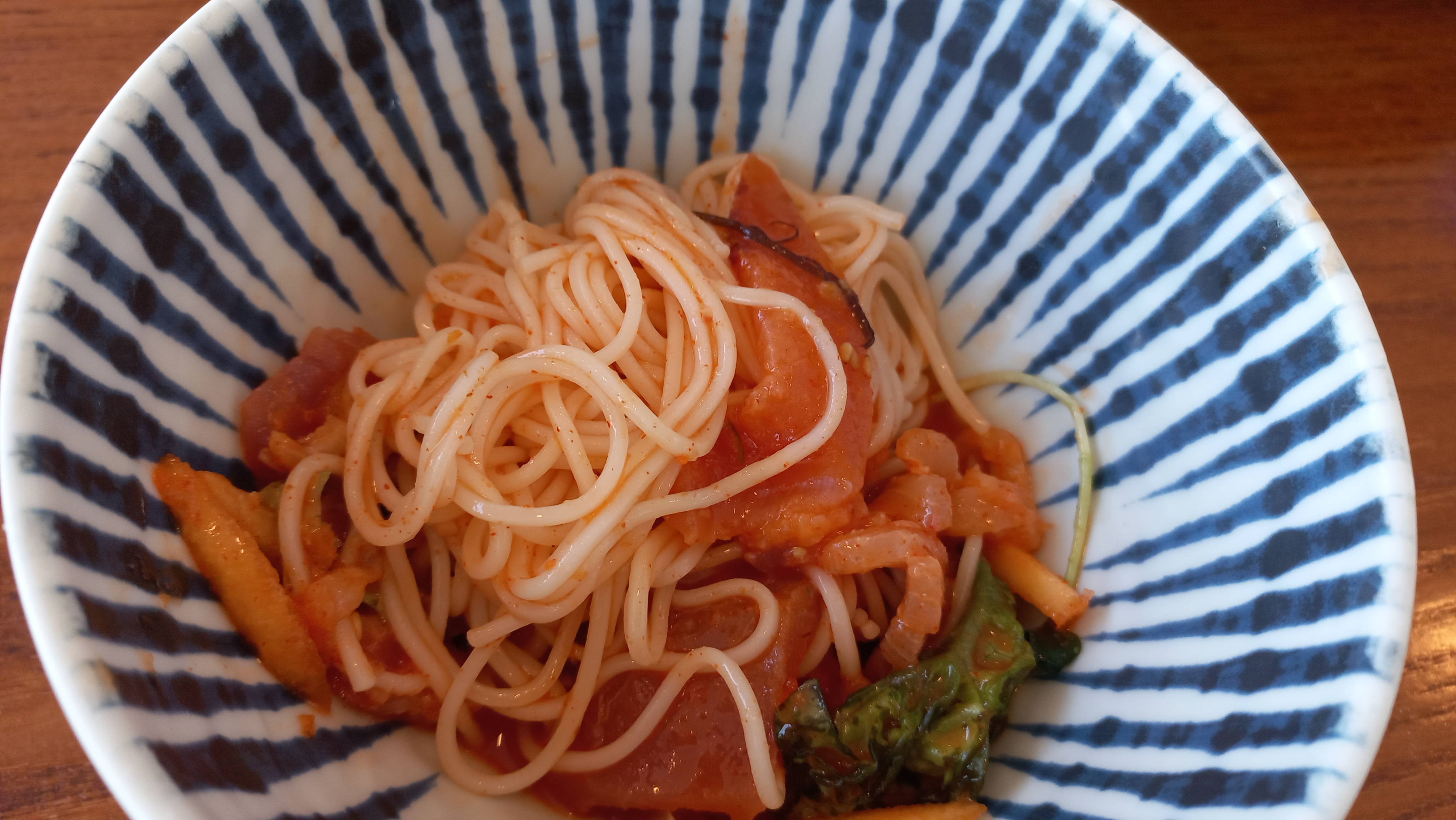 그리고 공깃밥(작은 공기)과 작은 소면 2개가 기본으로 나오는데, 나중에 물회 육수가 너무 맛있어 소면 2인분을 추가로 주문해서 먹었습니다.