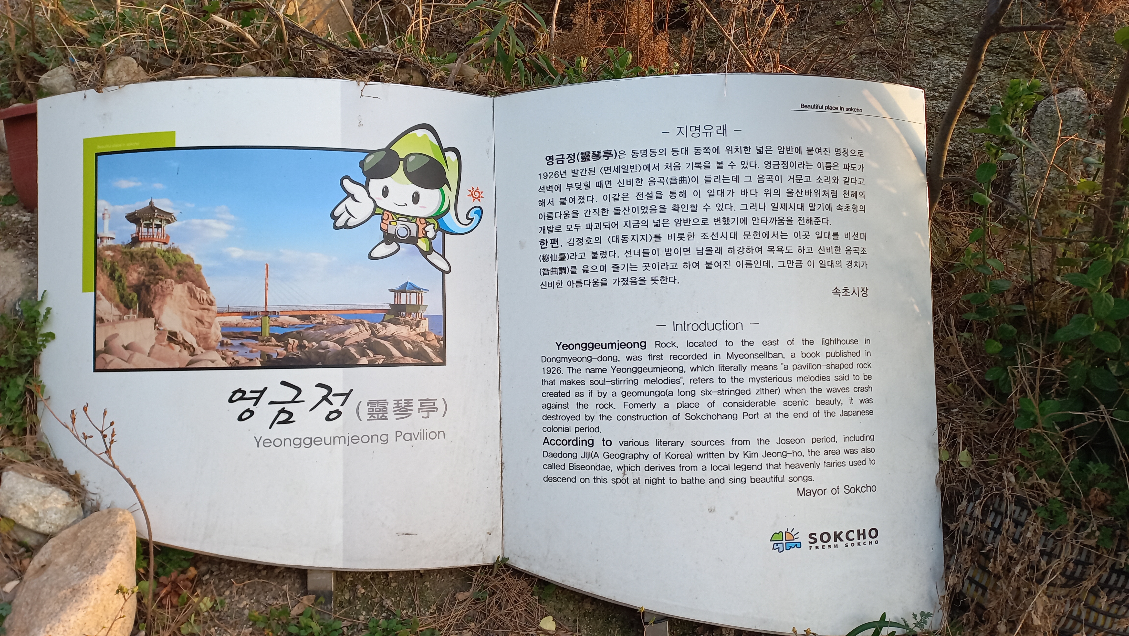 속초 일출명소인 영금정 해돋이 정자는 1997년 동명동 주민들이 십시일반 모은 성금으로 조성했다고 합니다.
