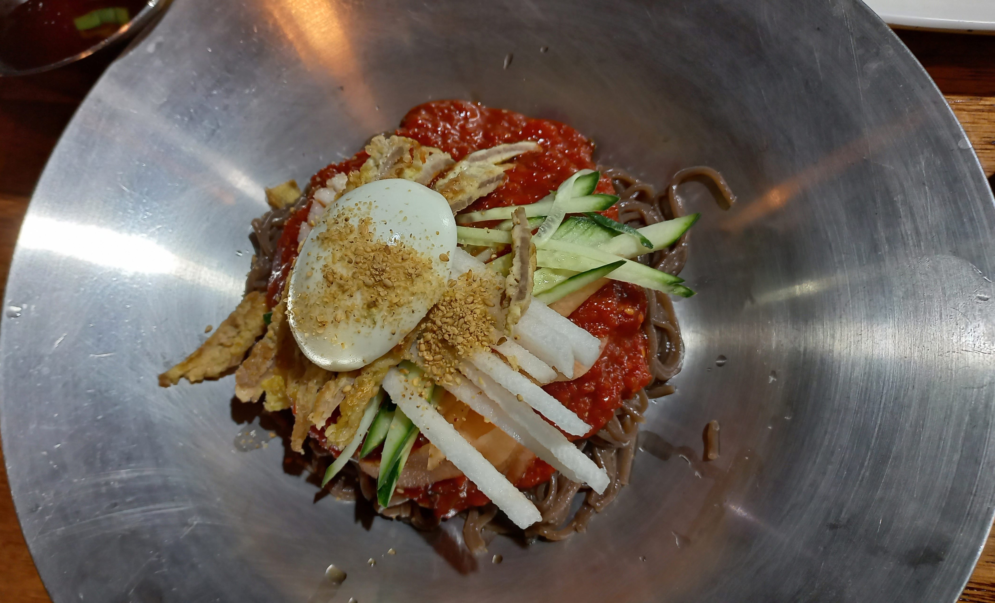 식구들이 많아 빨간순두부와 청국장, 비빔모밀과 냉모밀, 왕만두 등을 주문했습니다.