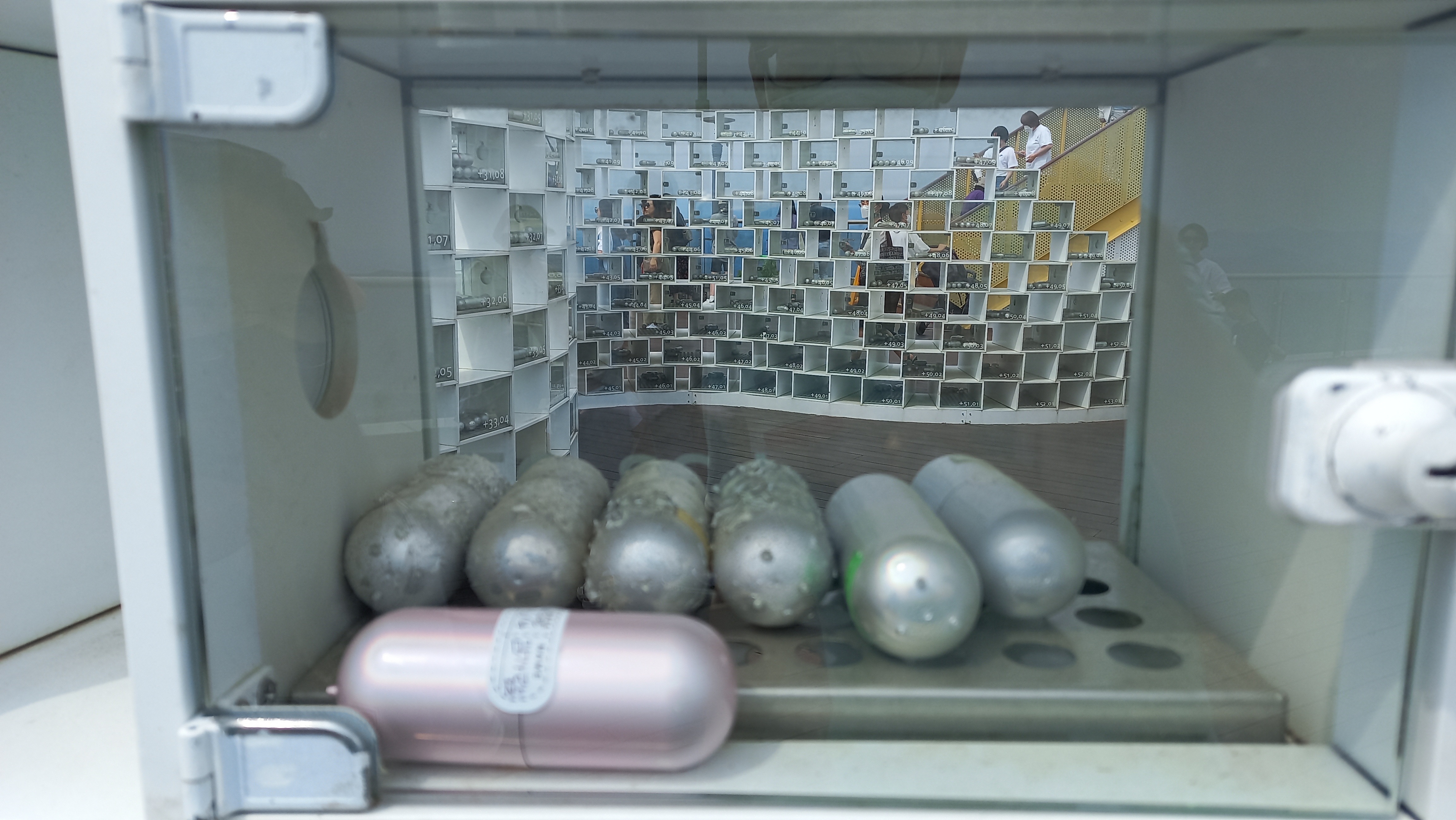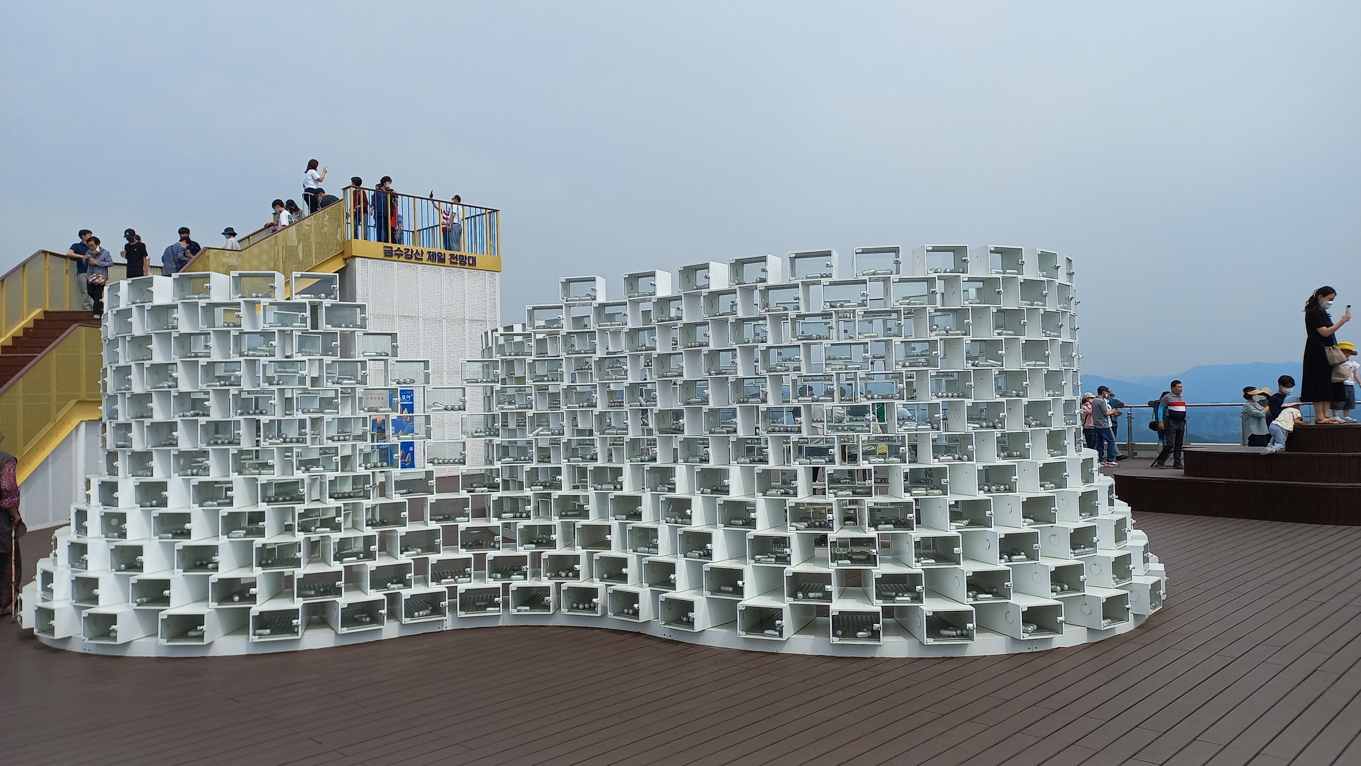 관람객들이 캡슐을 구입해 박스에 투입되면서 작품은 서서히 완성이 되어 가는데 구입가격이 비싼 게 흠입니다.