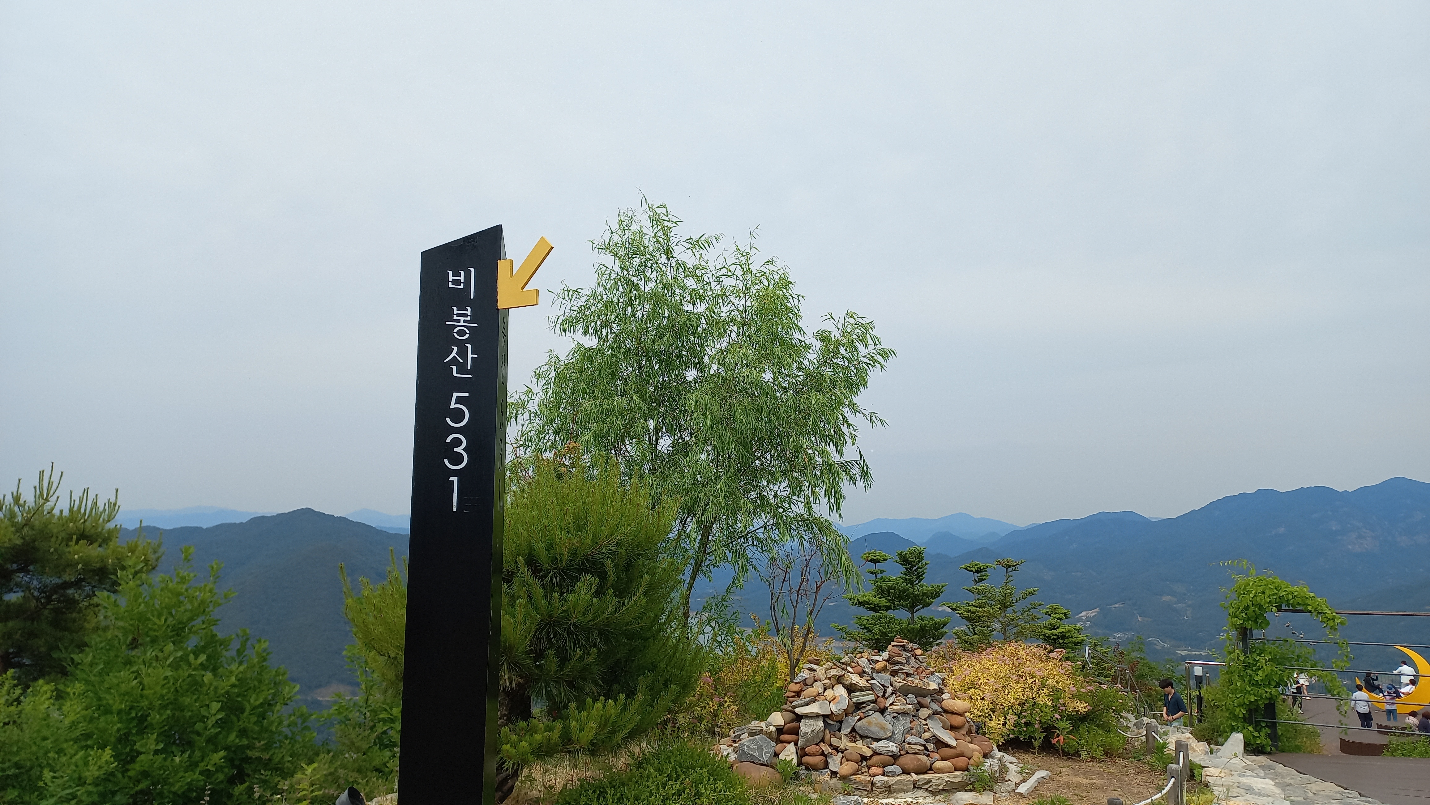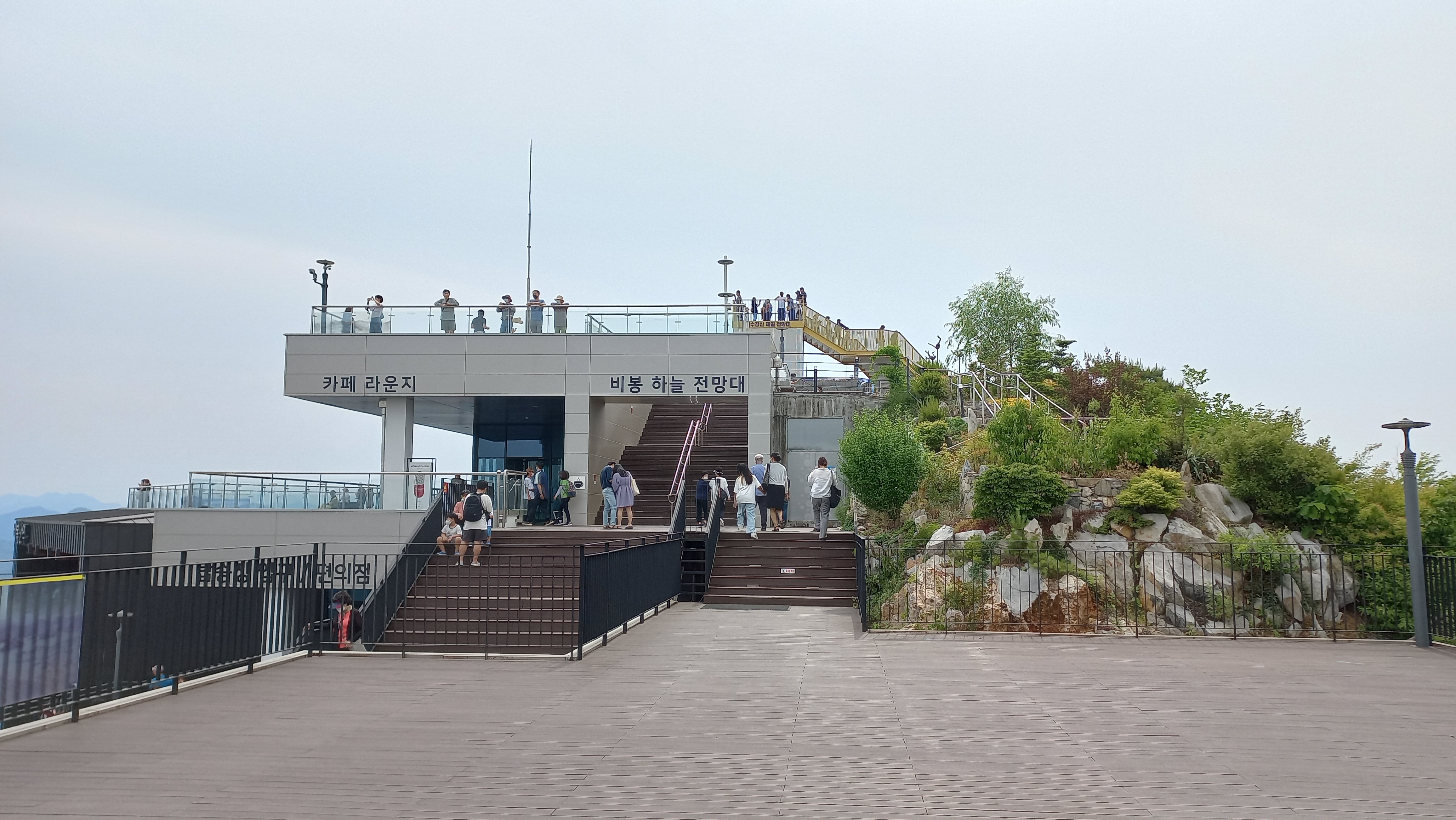 3층에는 카페와 전망데크가 있고, 4층은 비봉 하늘전망대, 5층 옥상은 금수강산 제일 전망대가 자리한 모습