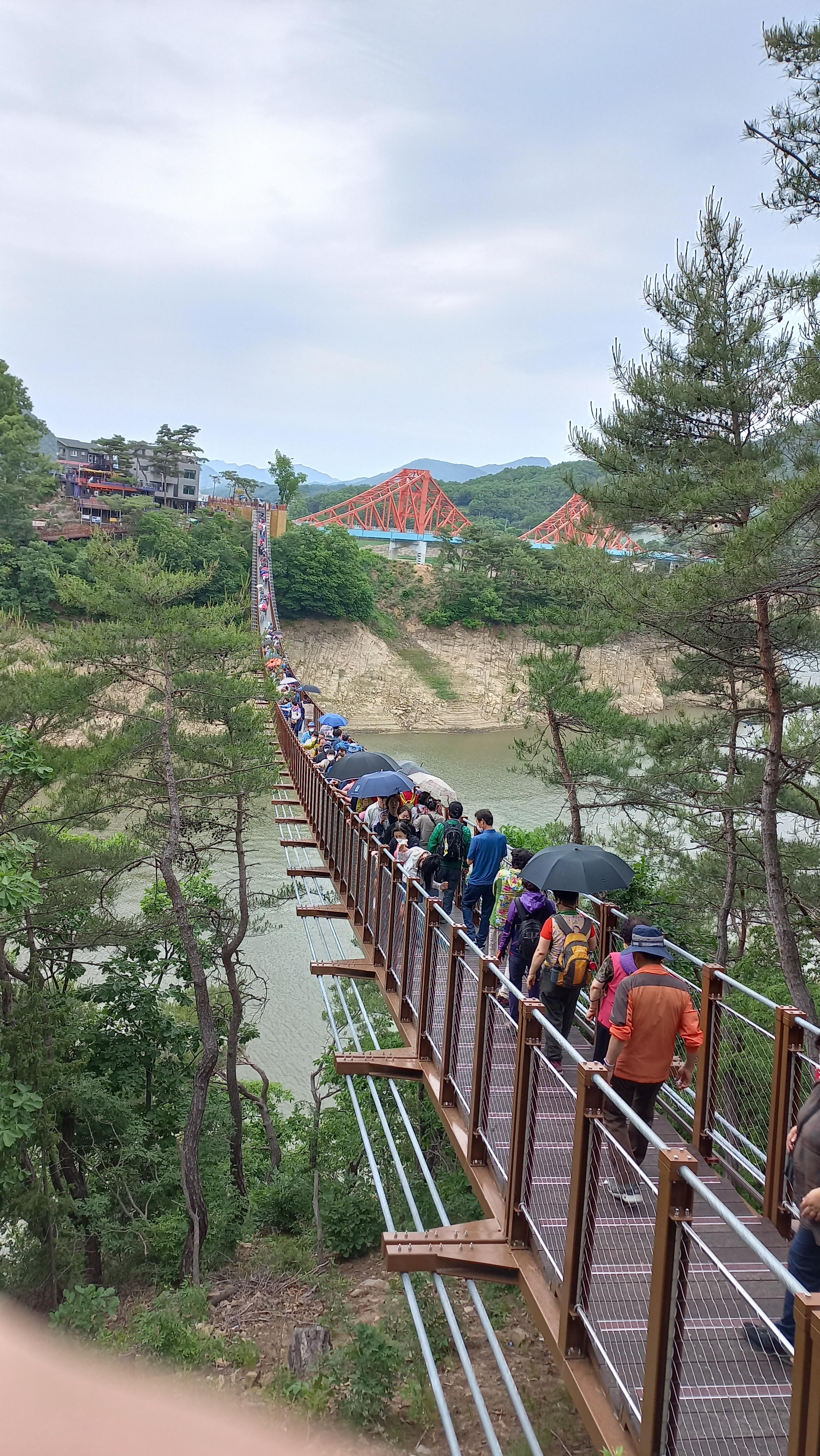 출렁다리를 건너며 사진 찍기엔 흔들림이 심해서 조심해야 합니다.