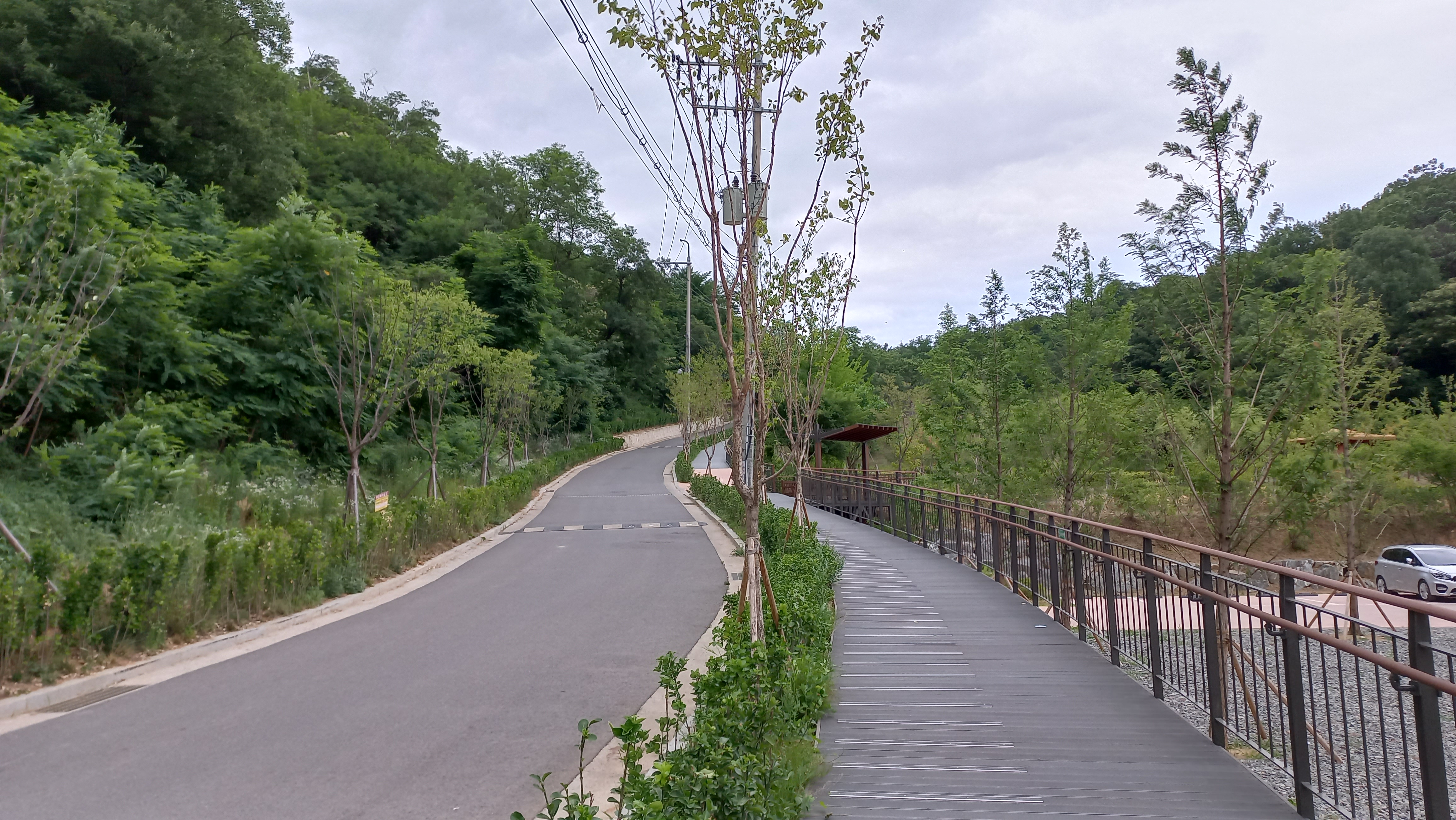 항동생태공원을 옆에 두고 천왕산 가족캠핑장 올라가는 길