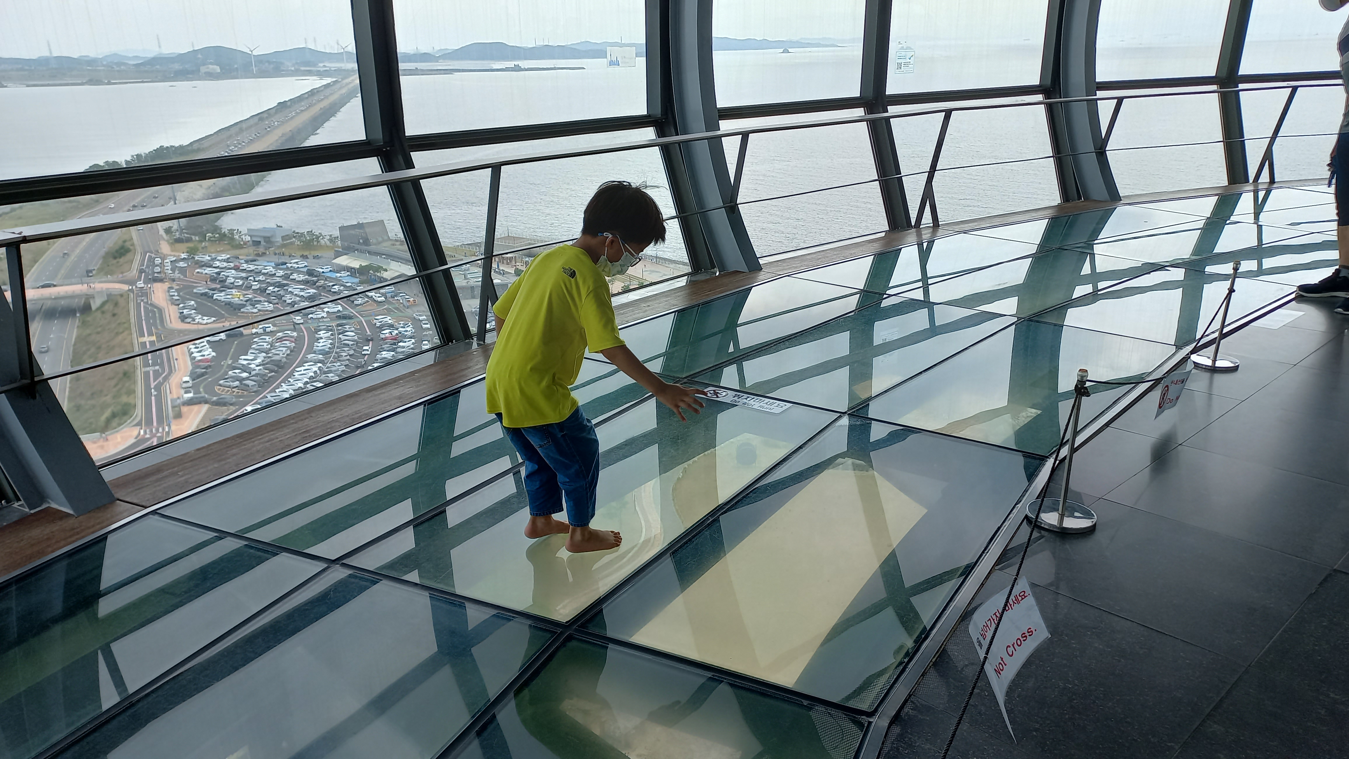 시화달전망대는 360도 파노라마 뷰가 가능하고, 투명 유리바닥에서는 아찔한 전망을 감상할 수 있습니다.