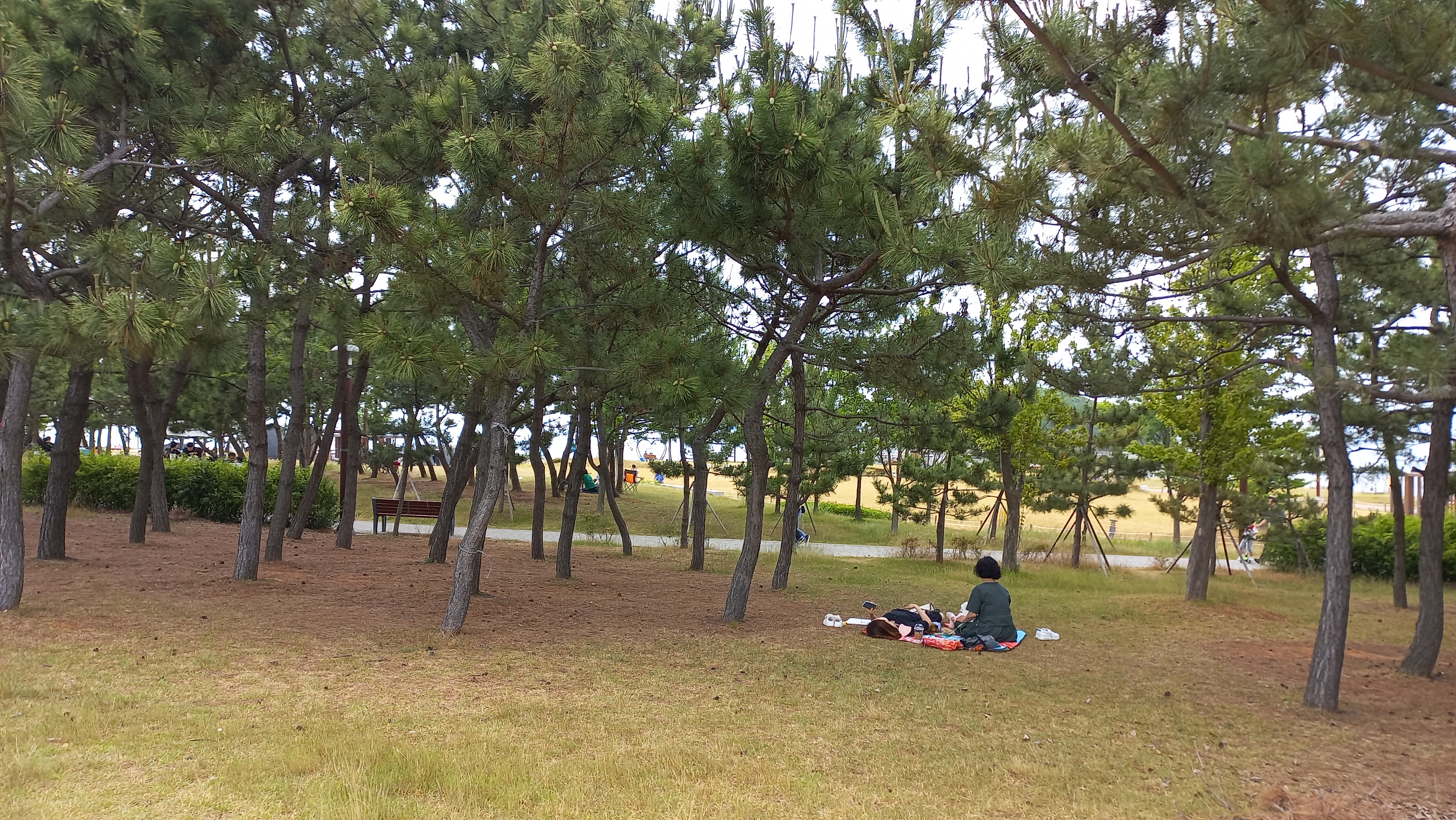 소나무 아래에는 가족단위의 나들이객들의 쉼터가 되고 있네요.