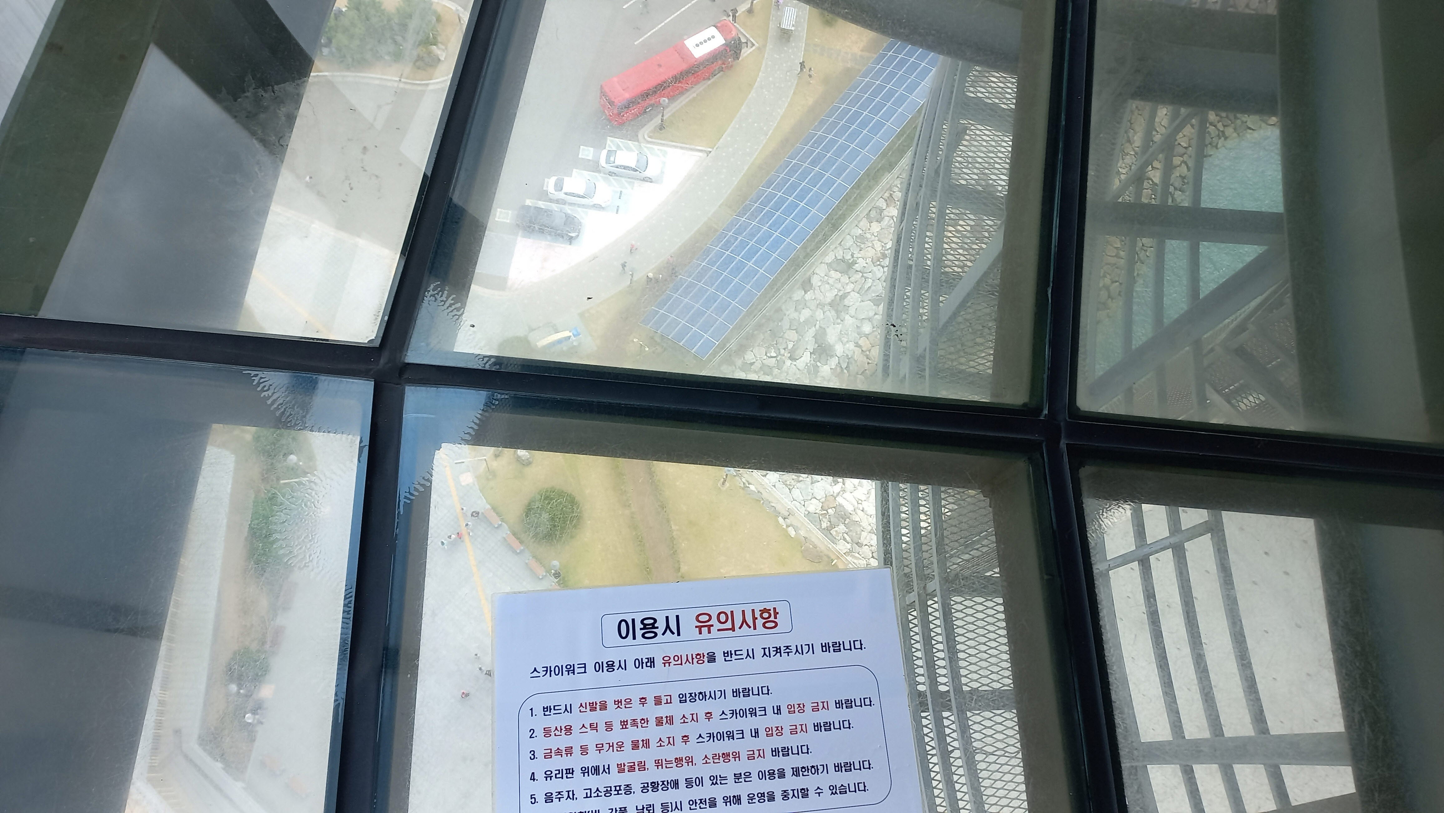 유리바닥은 신발을 벗고 올라가야 합니다.