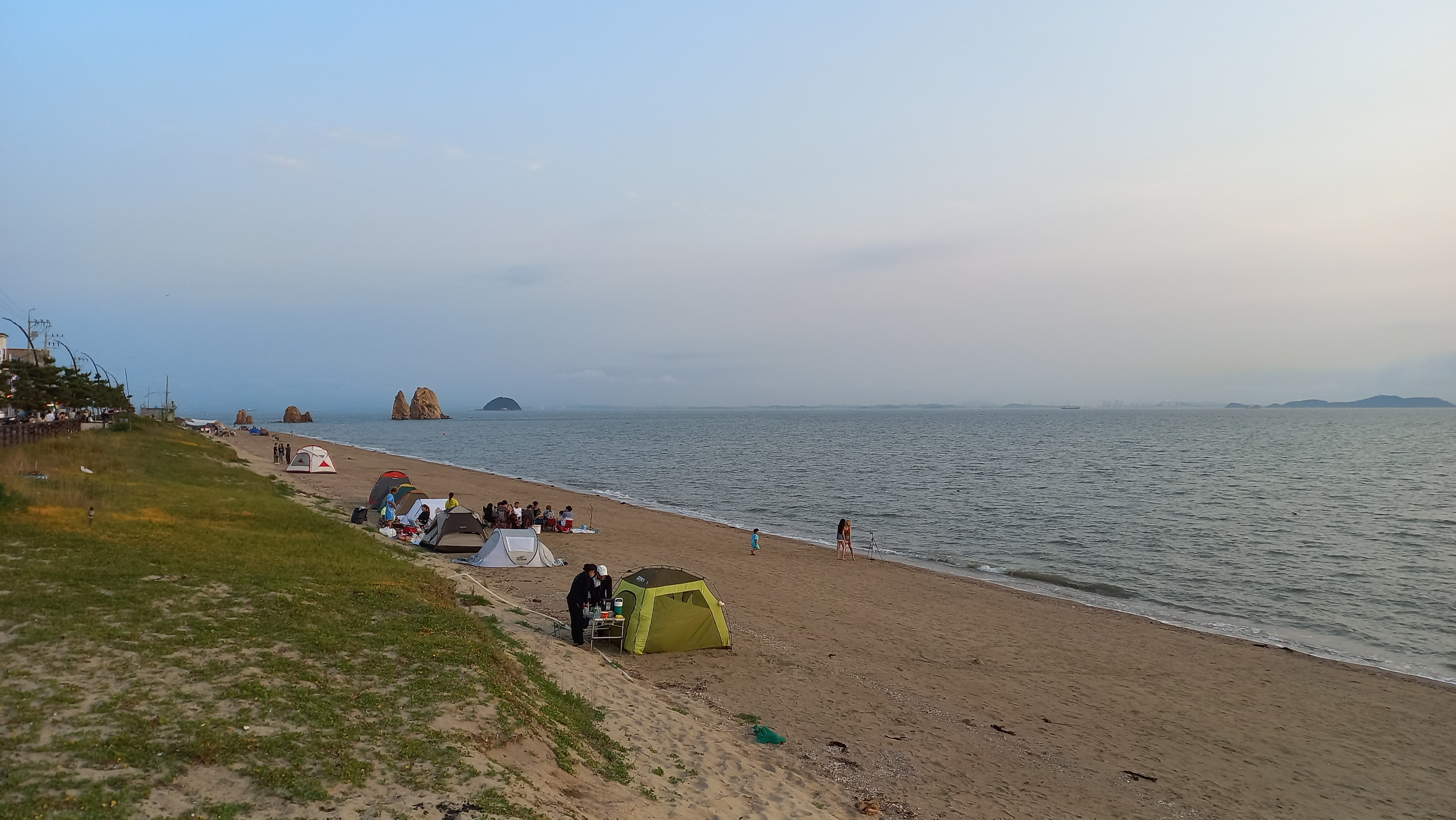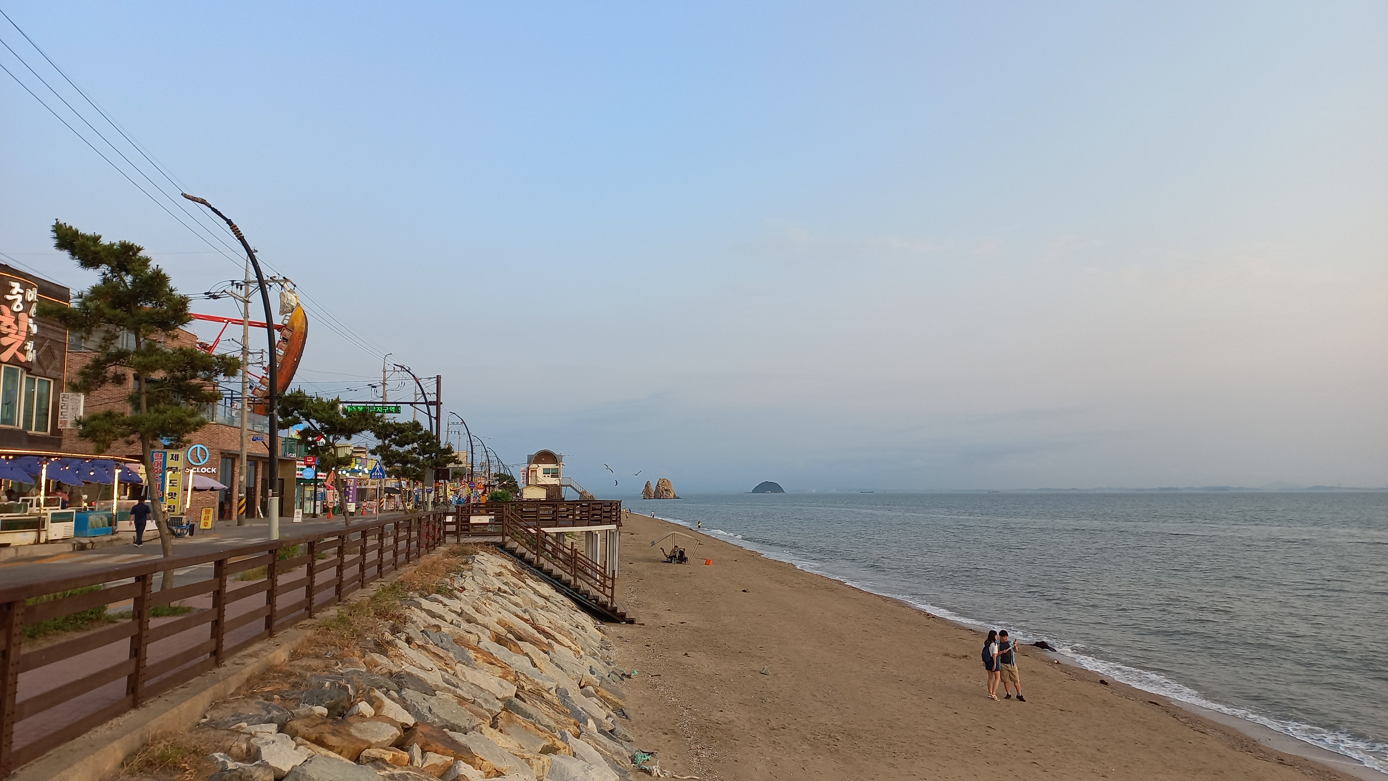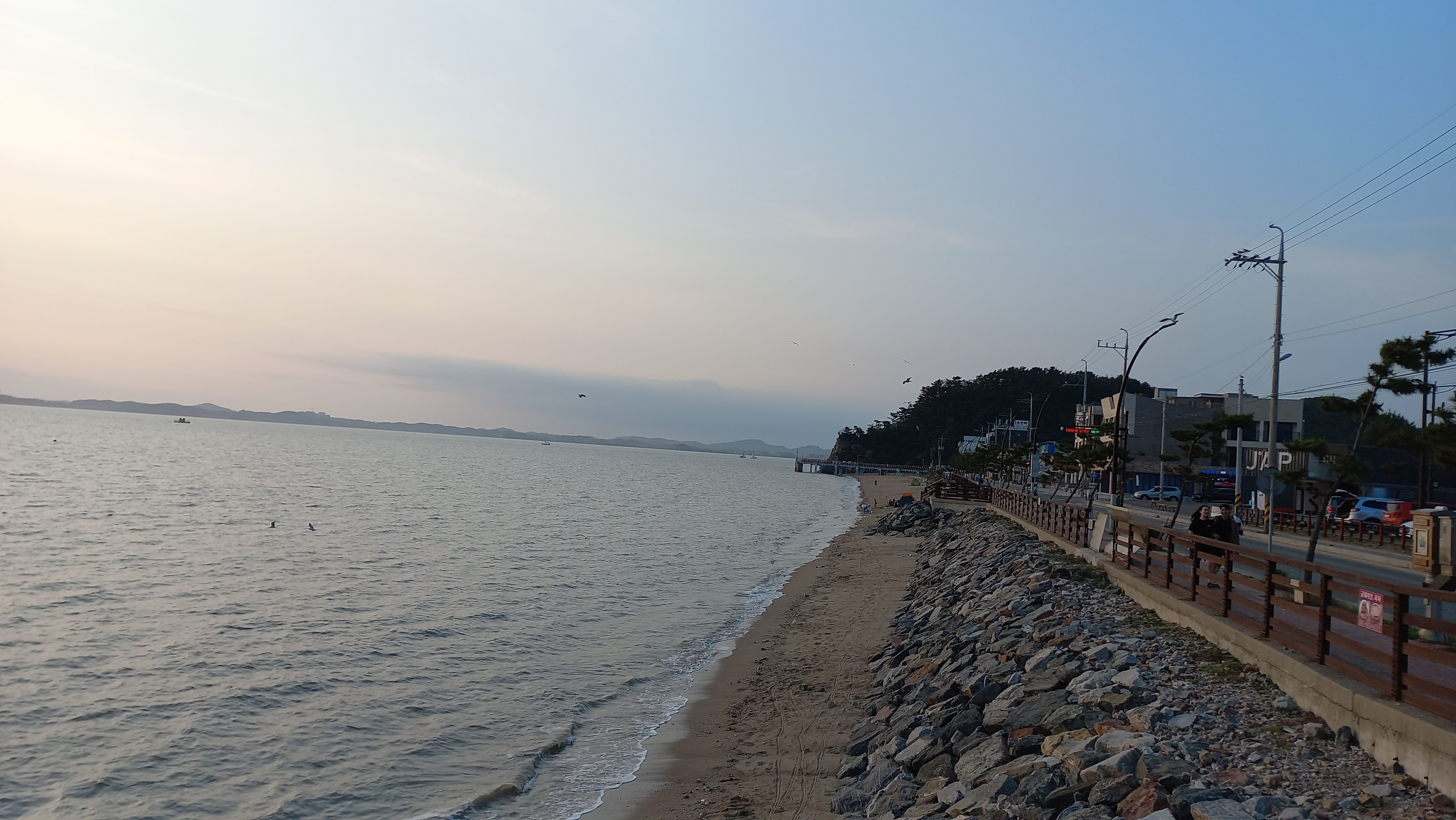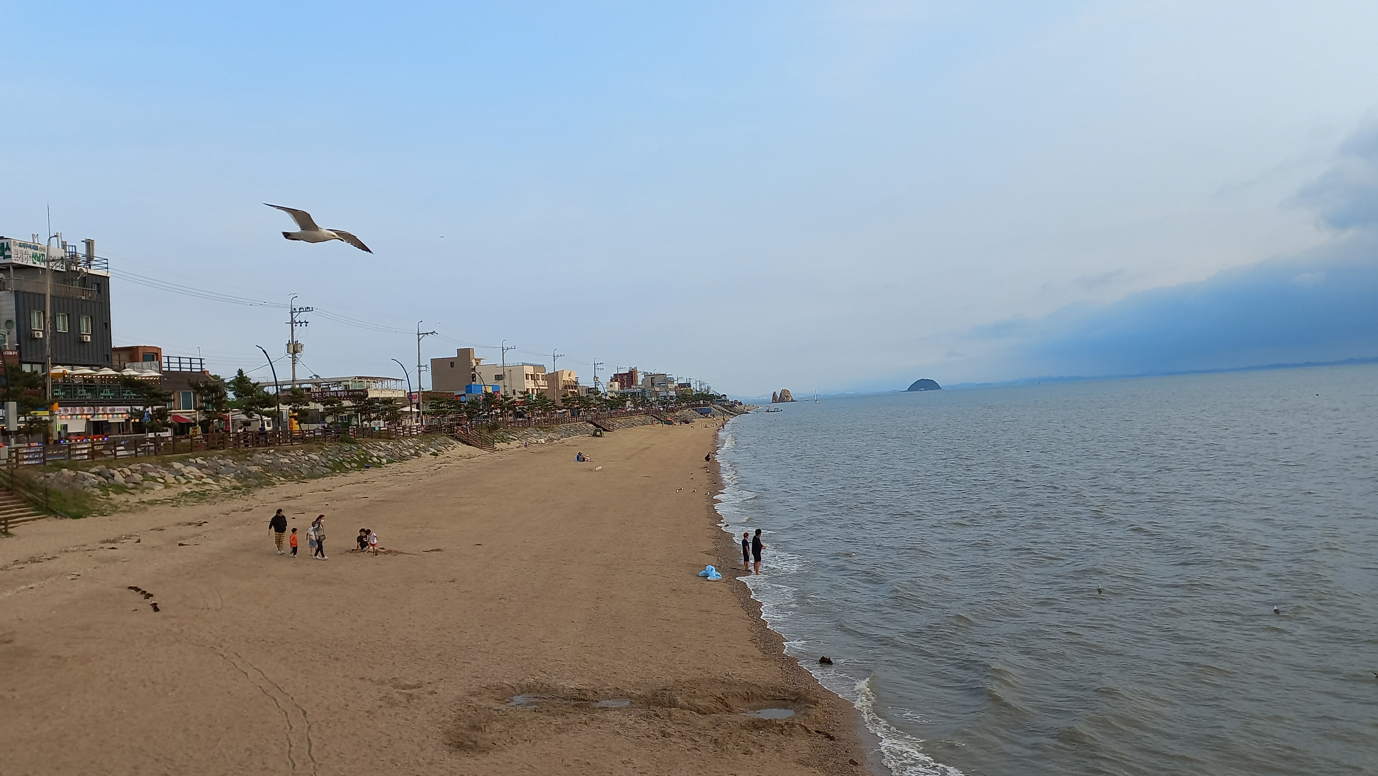 만조시간이라 갯발이 물에 덮여 있고, 해수욕장 백사장이 조금만 남아 있는 상태입니다.