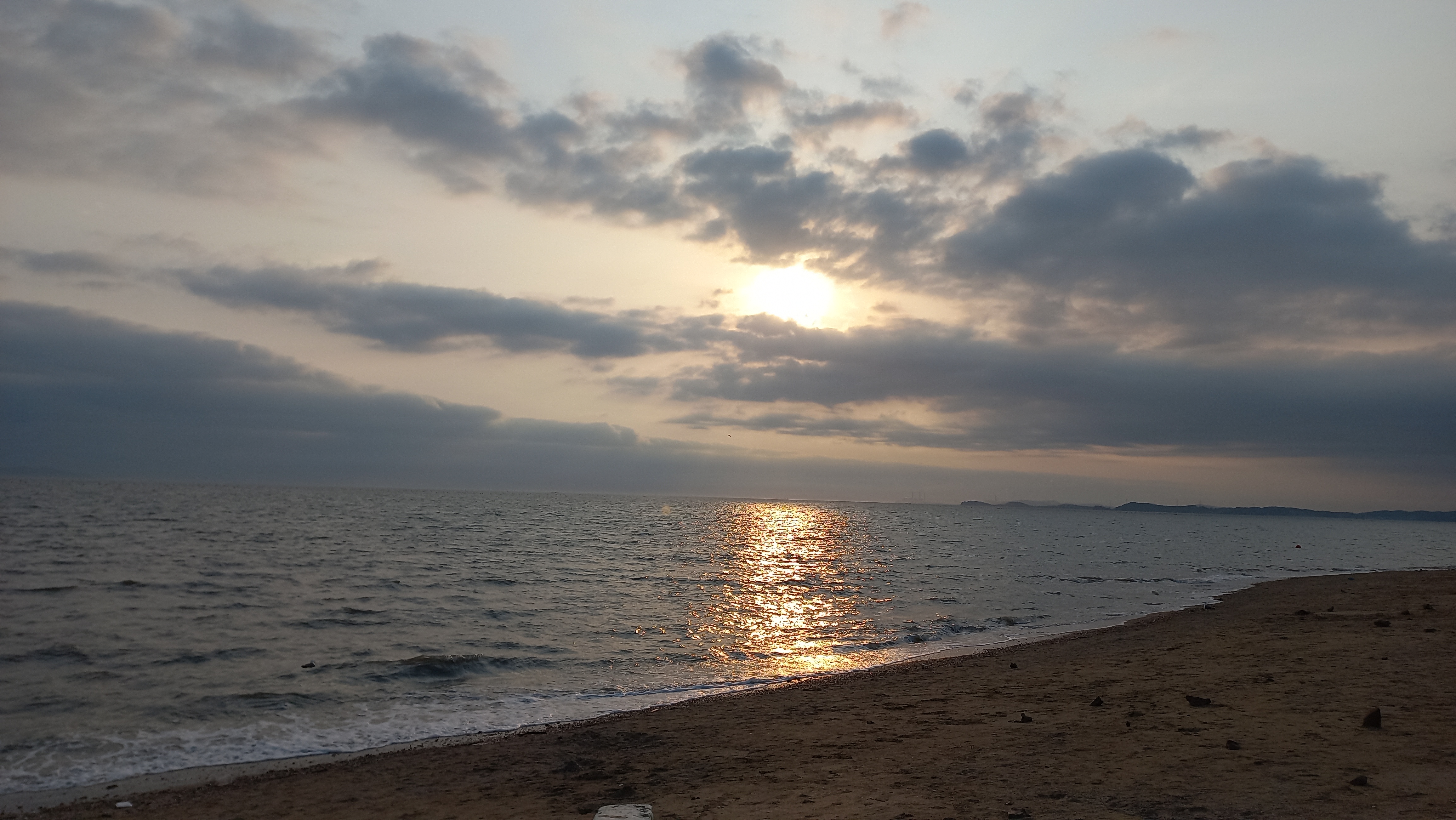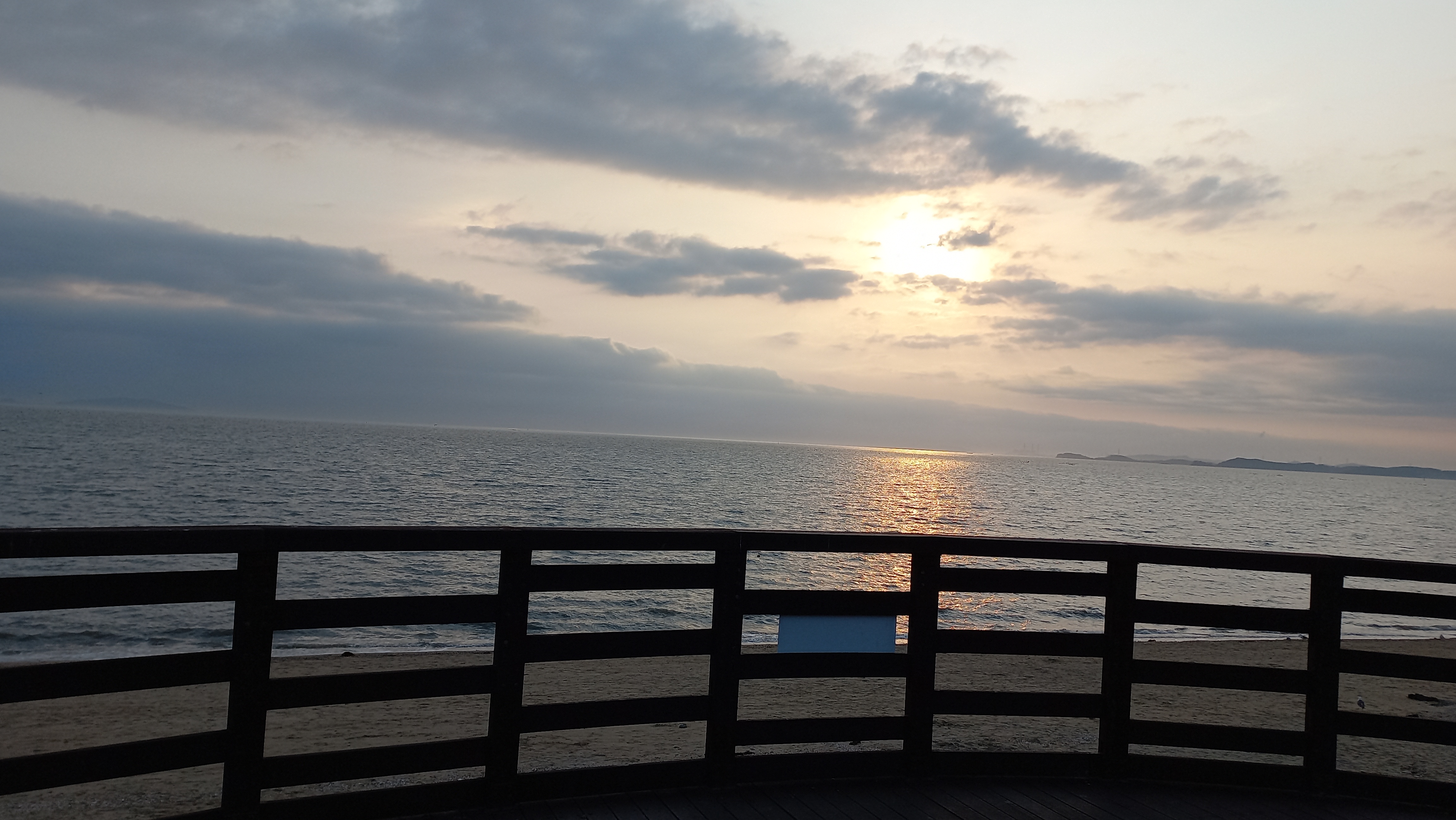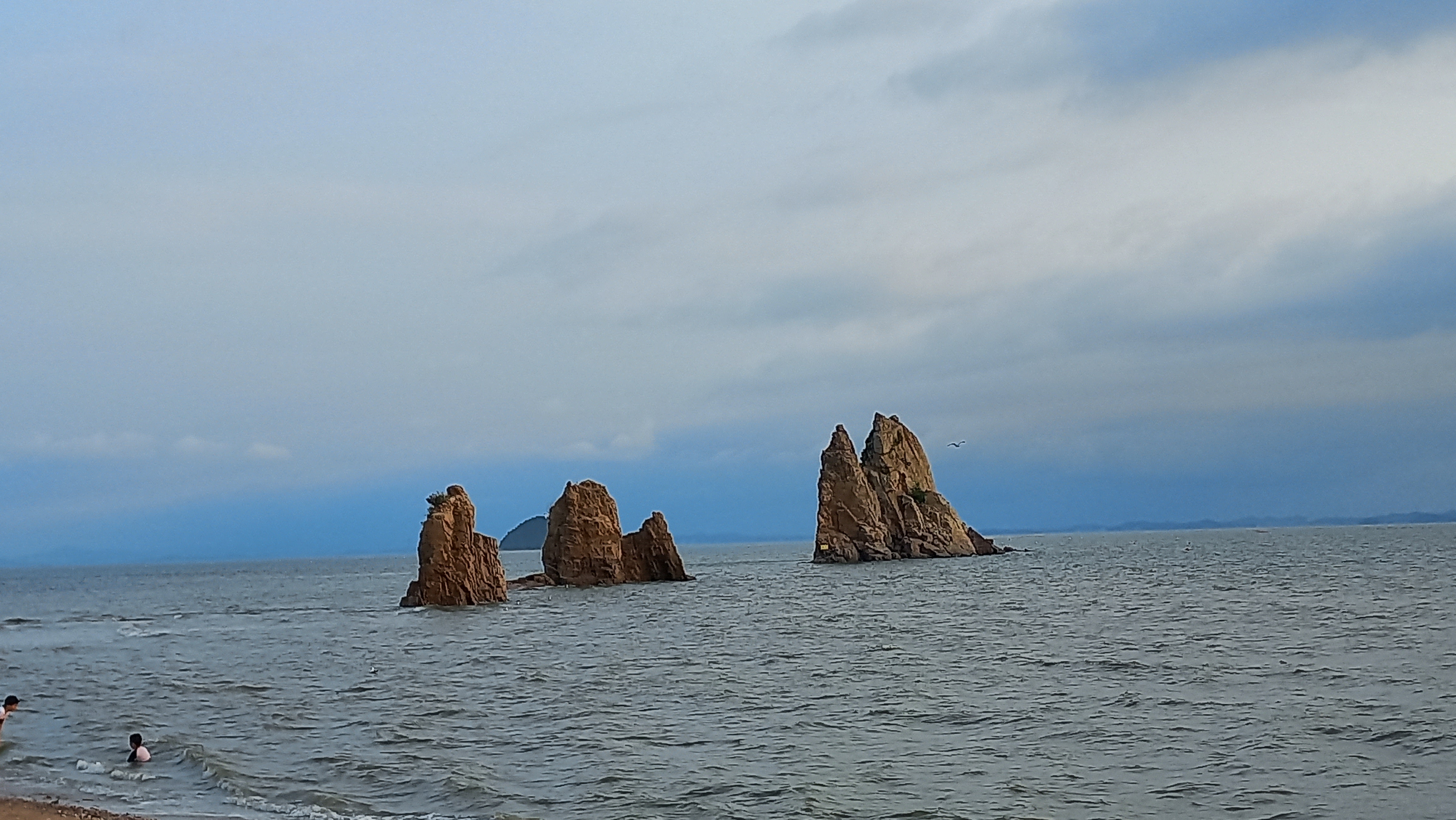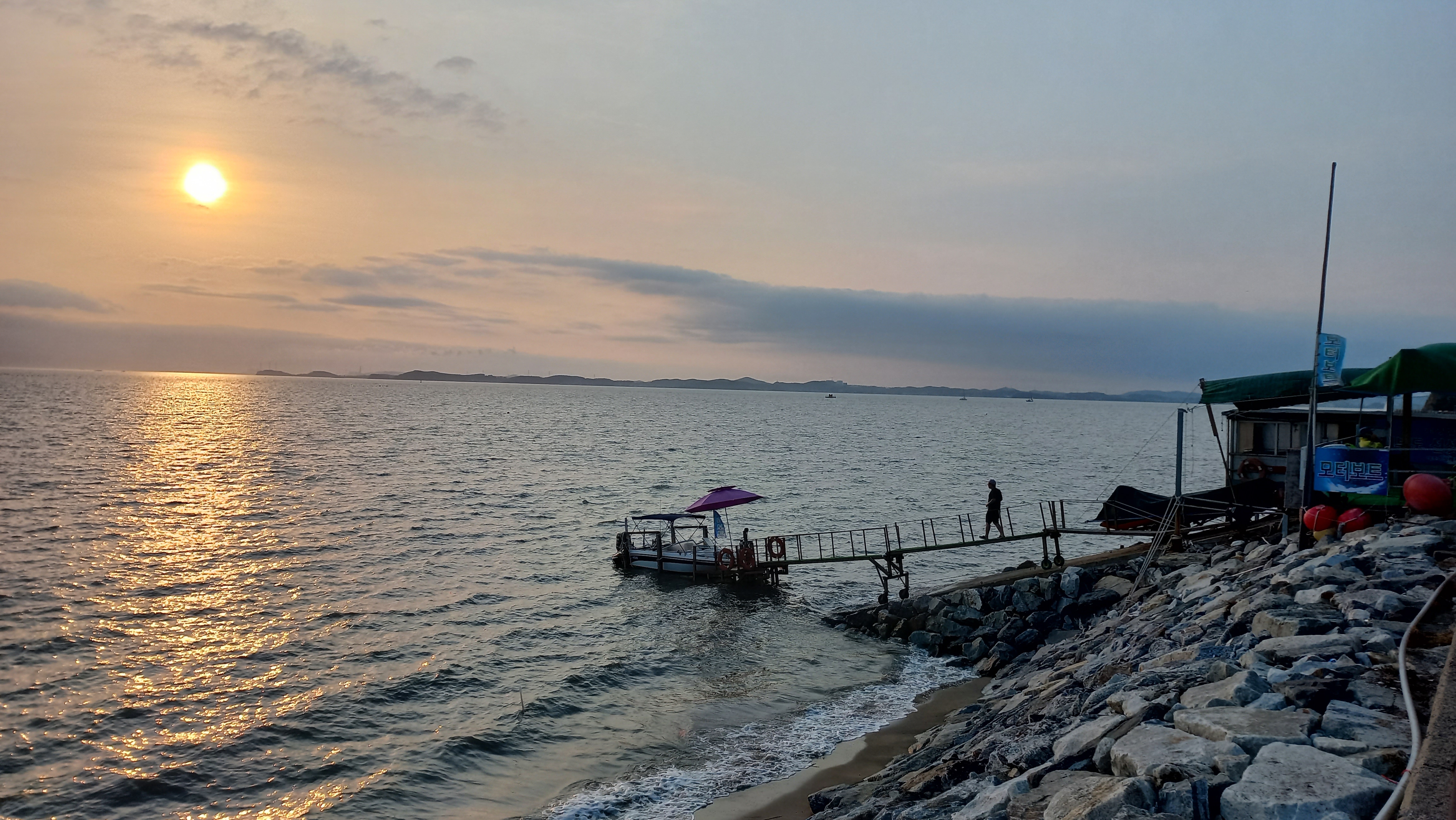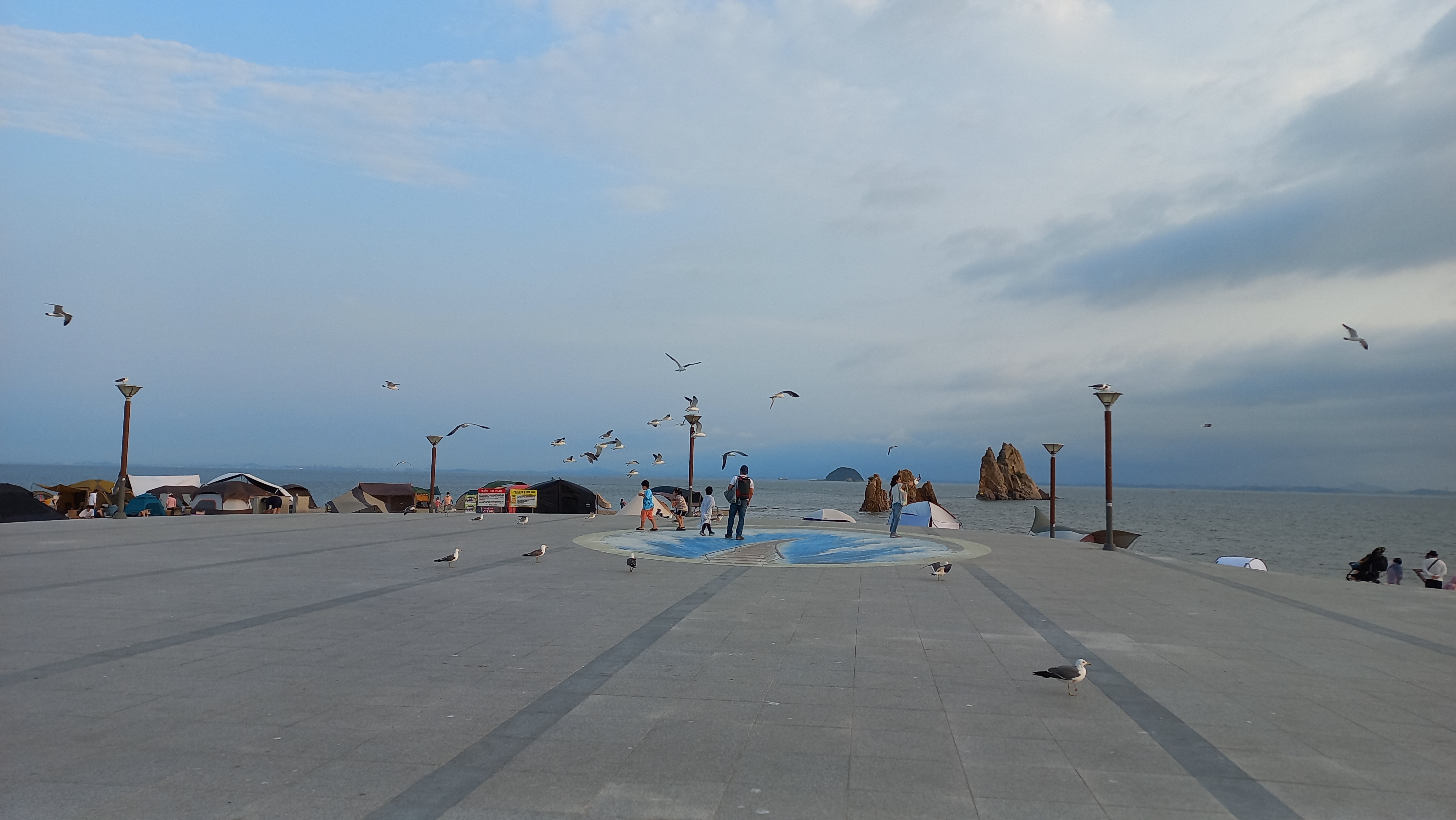 만조시간이라 갯발이 물에 덮여 있고, 해수욕장 백사장이 조금만 남아 있는 상태입니다.