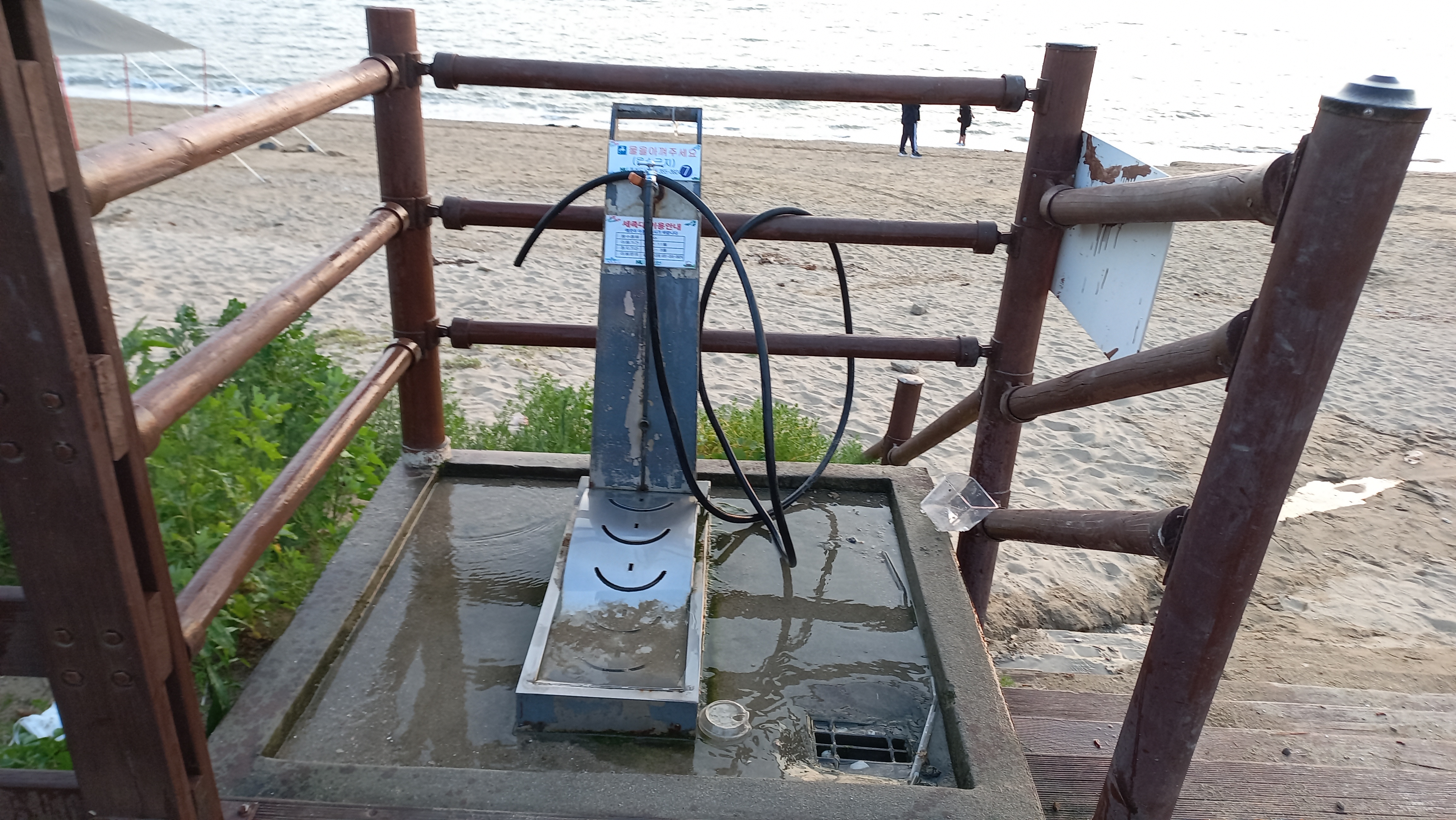 중간중간 설치된 발 씻는 물