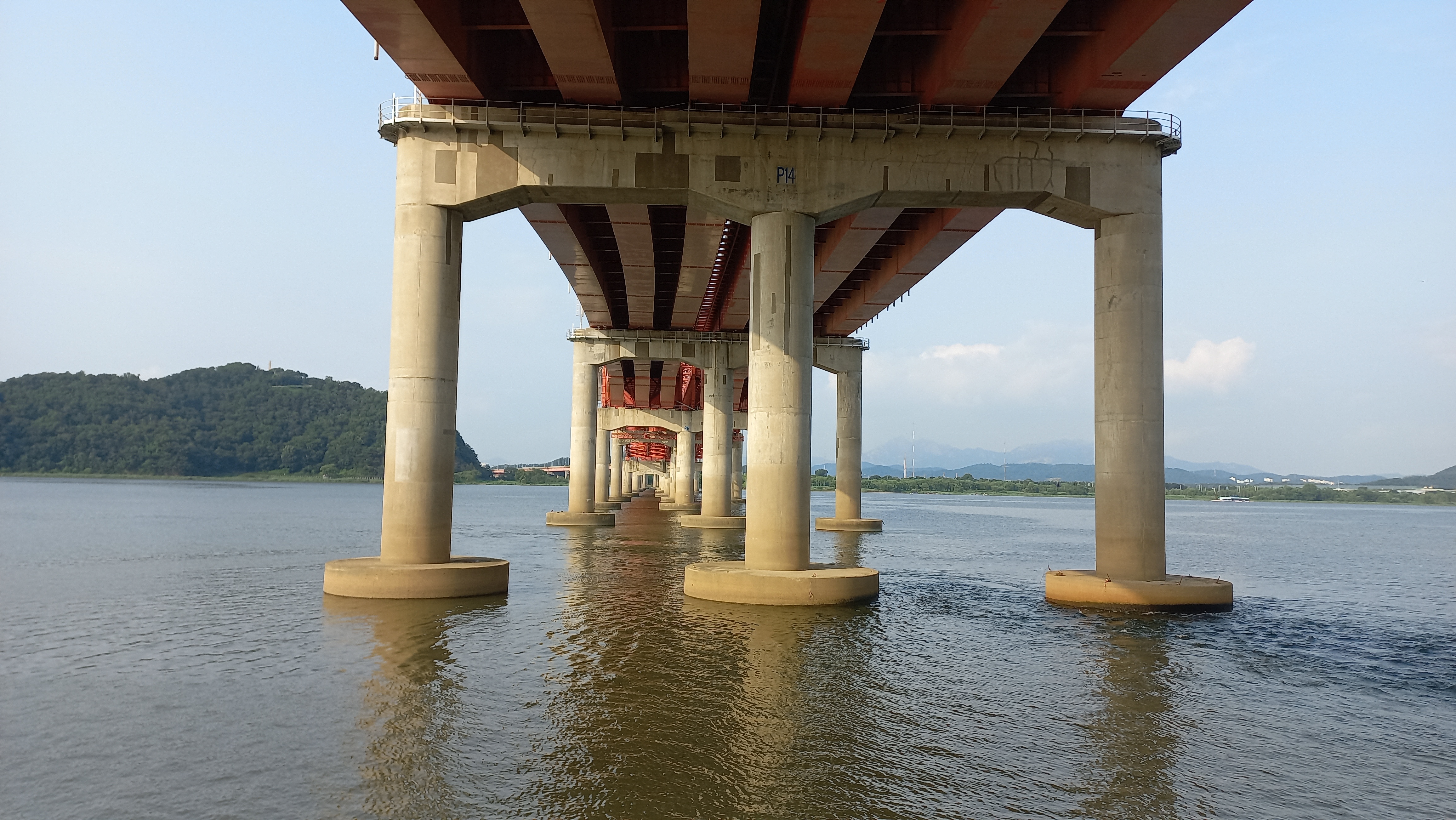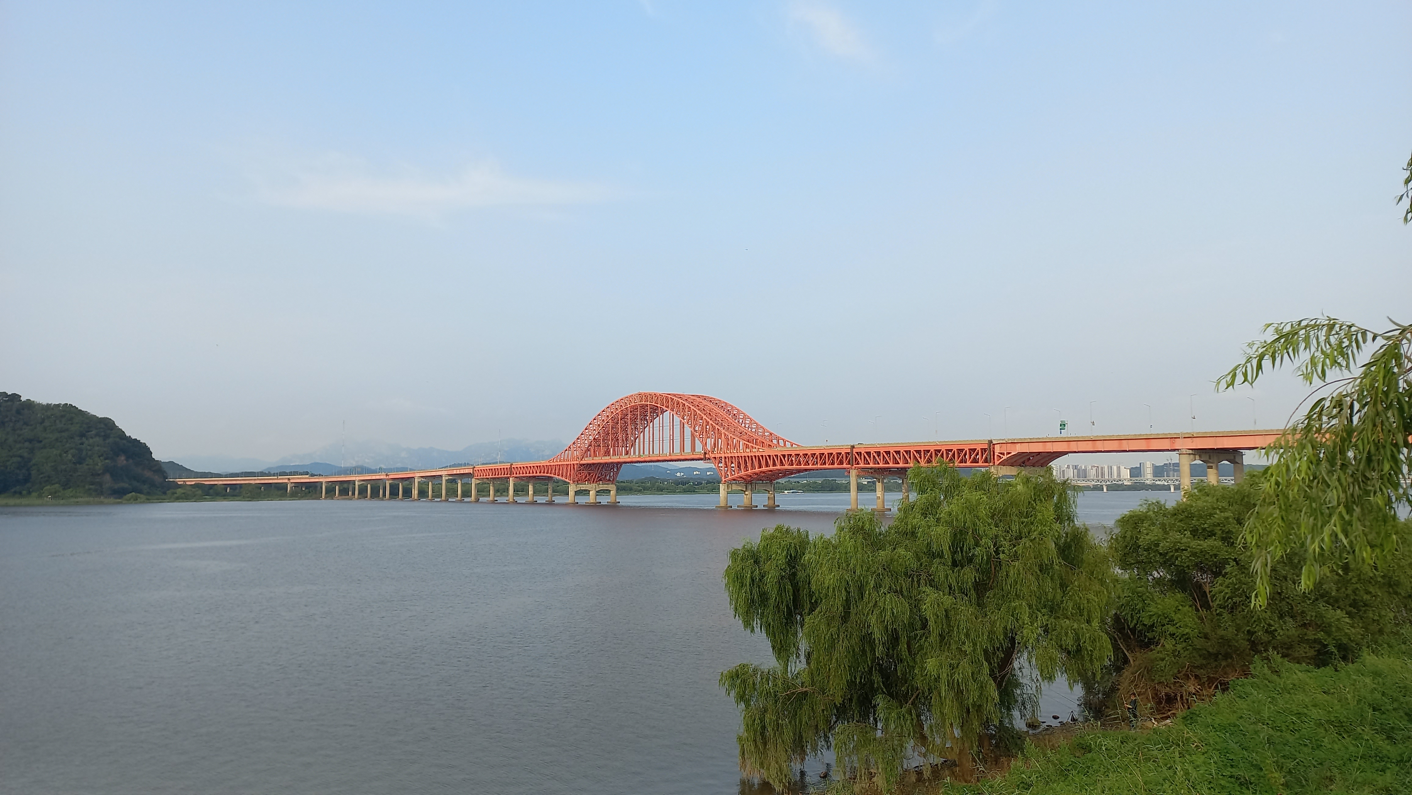 중앙부 540m의 아치트러스(arch truss)교는 비행기의 이착륙을 형상화한 디자인으로 미관이 뛰어나서 남쪽의 개화산과 북쪽의 행주산성 등 주변 경관과 조화를 이루고 있답니다.