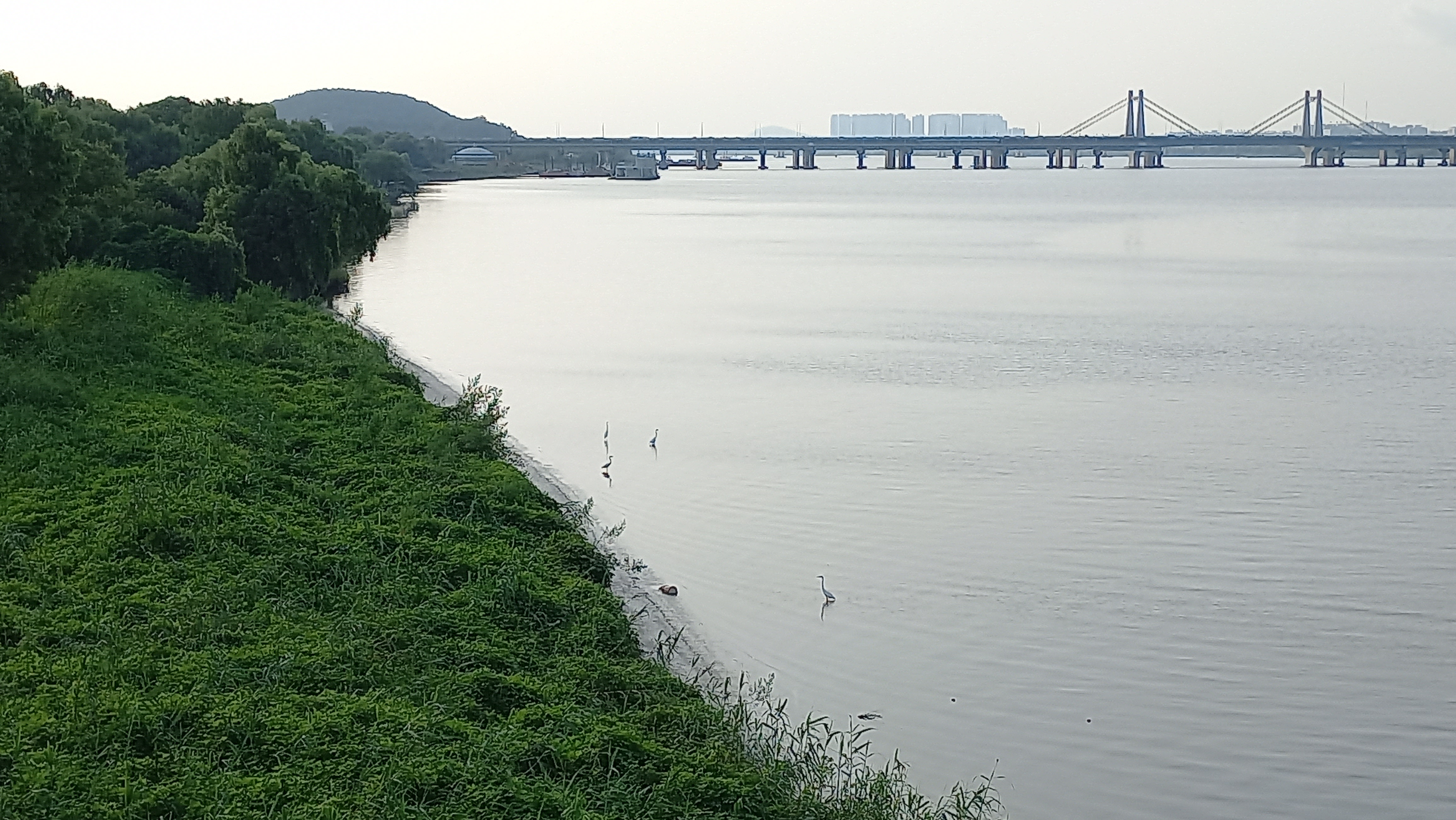 최근 강우량이 많아서 한강 갯벌은 모두 잠겨서 철새들이 많이 보이지 않고 백로로 보이는 세 마리만 있습니다.