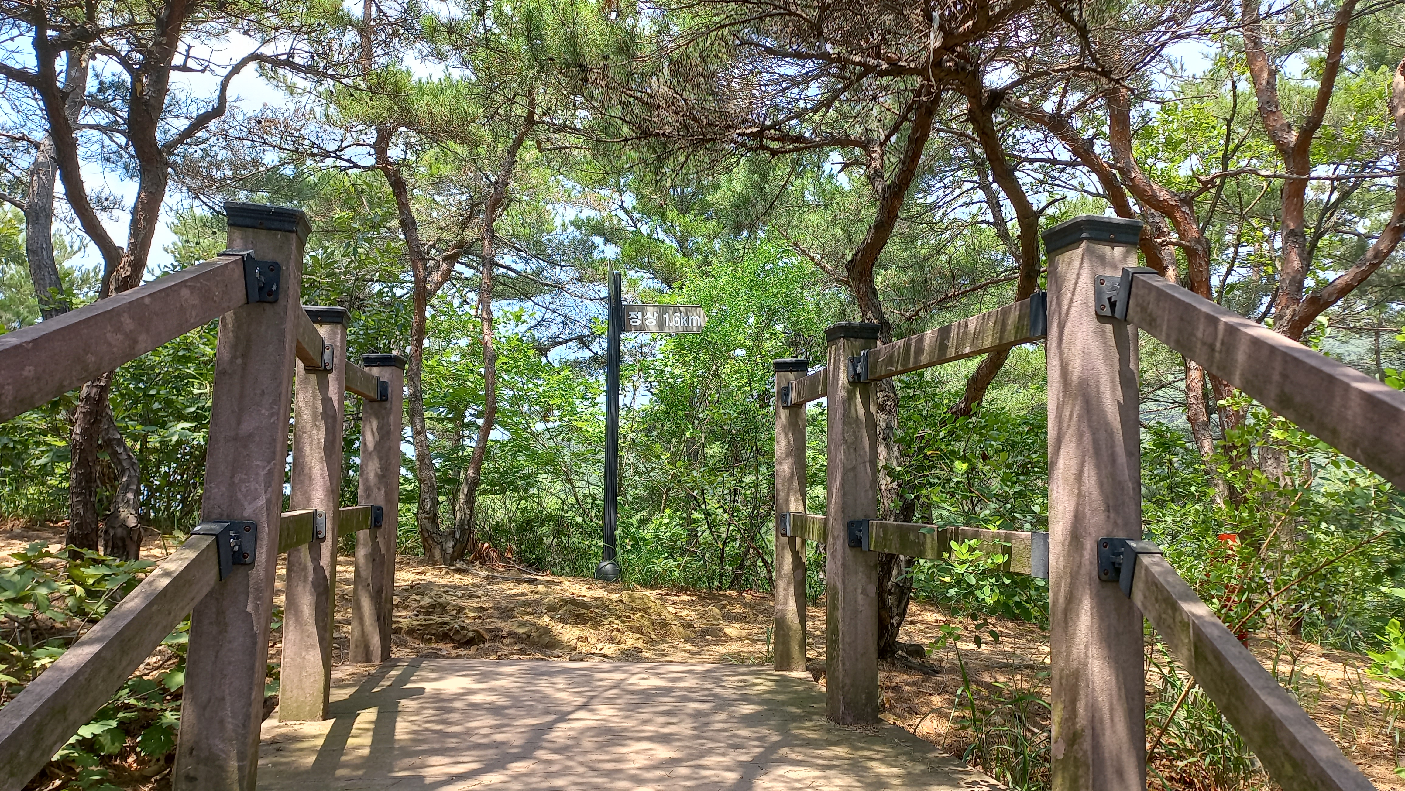 정자 있는 곳에서 버스정류장 쪽으로 내려가면 성동검문소로 내려가는 평화누리 2코스로 연결되는 구간입니다.