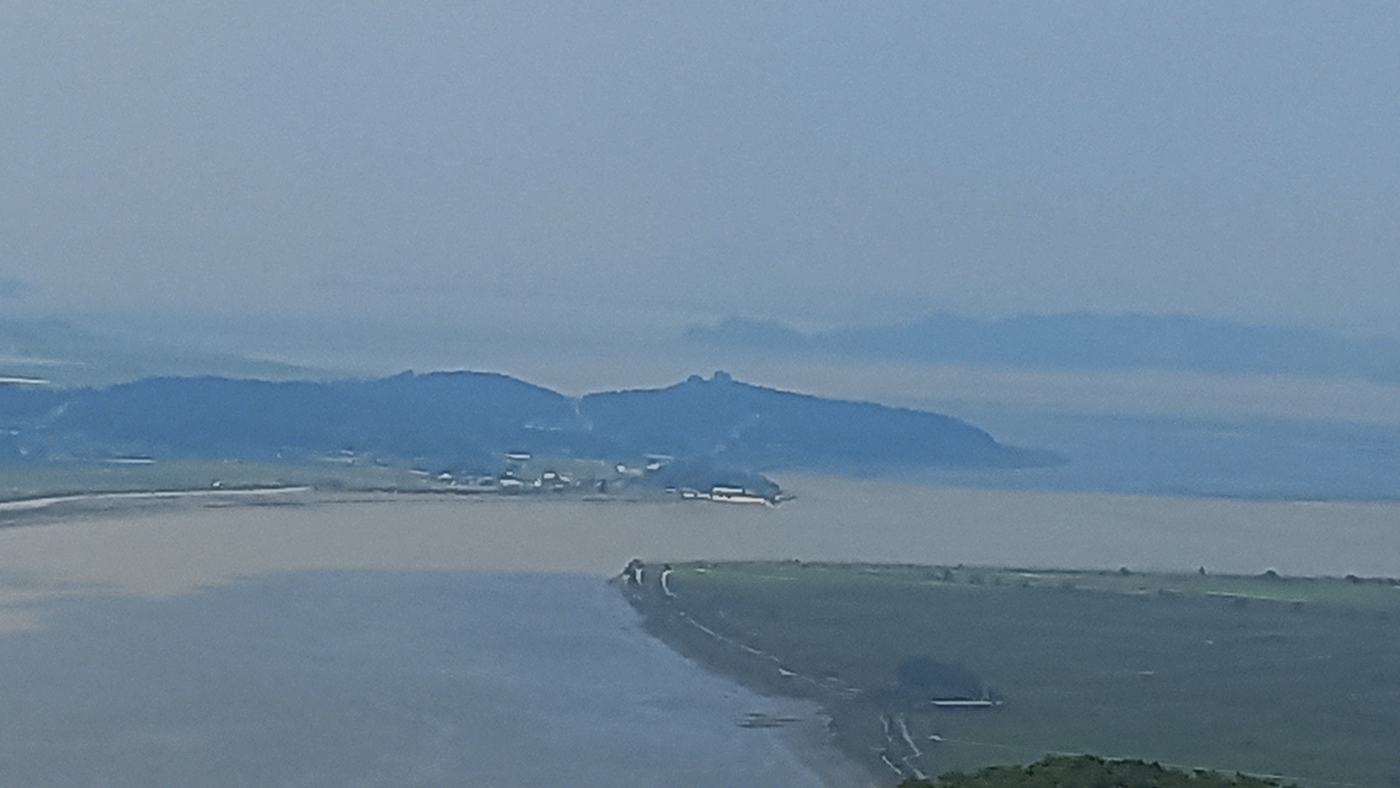 저 멀리 강화평화전망대가 보이고, 그 너머가 강화만이며 모두 북한지역입니다.