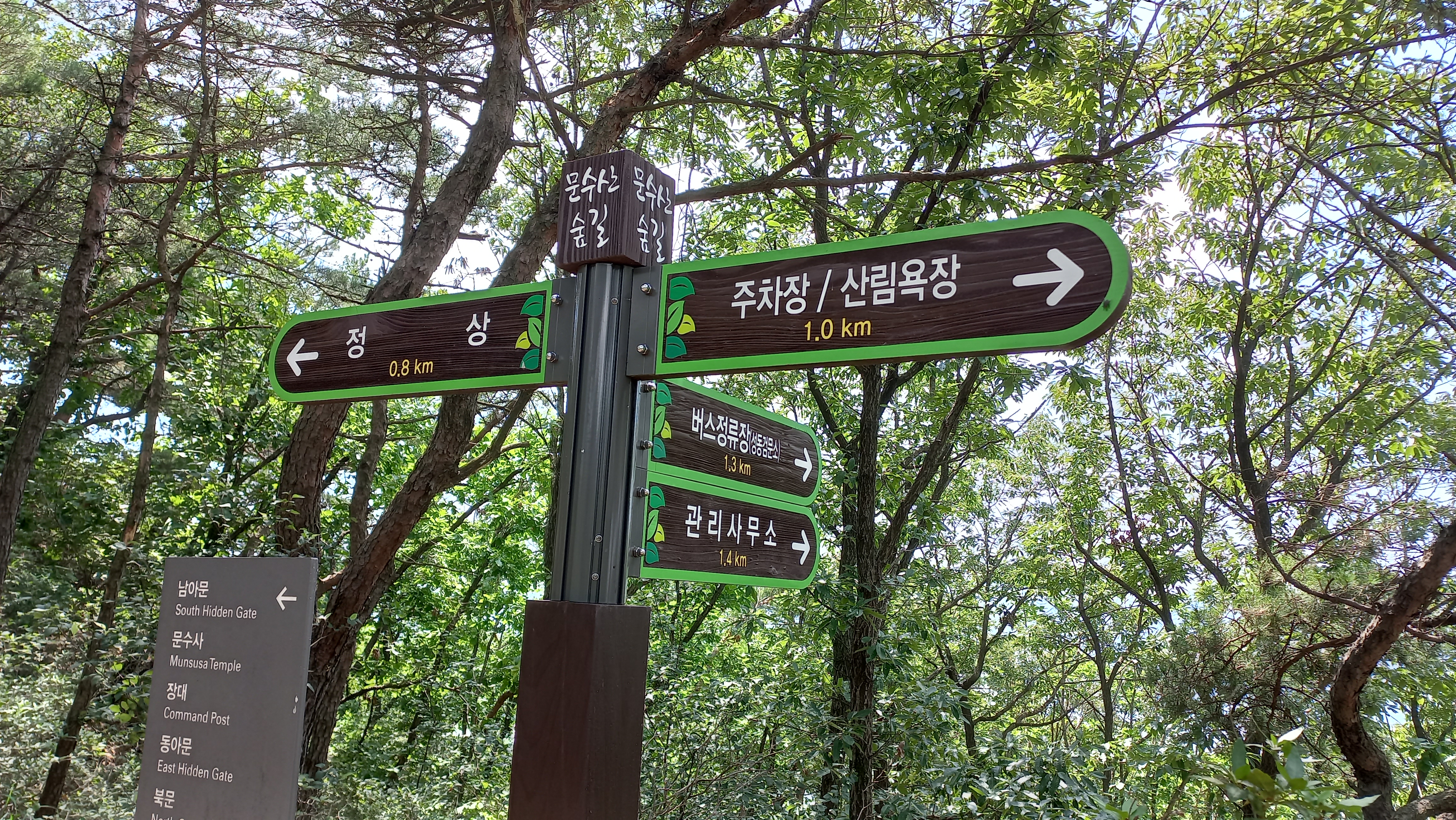 문수산 산림욕장에서 정상까지 갔다가 내려오는 길은 문수사와 문수산성 북문으로 내려오는 길입니다.