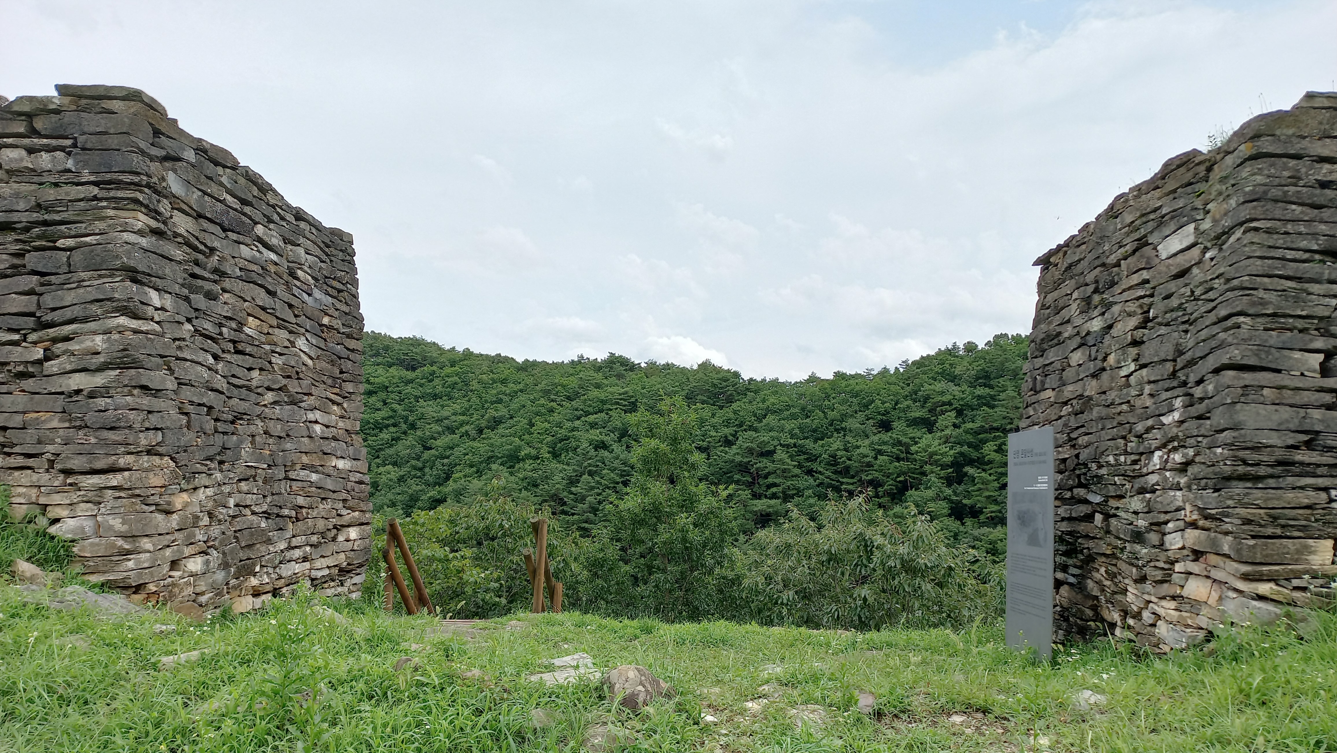 온달산성 북문 쪽은 성문을 복원하고 있는 것 같습니다.