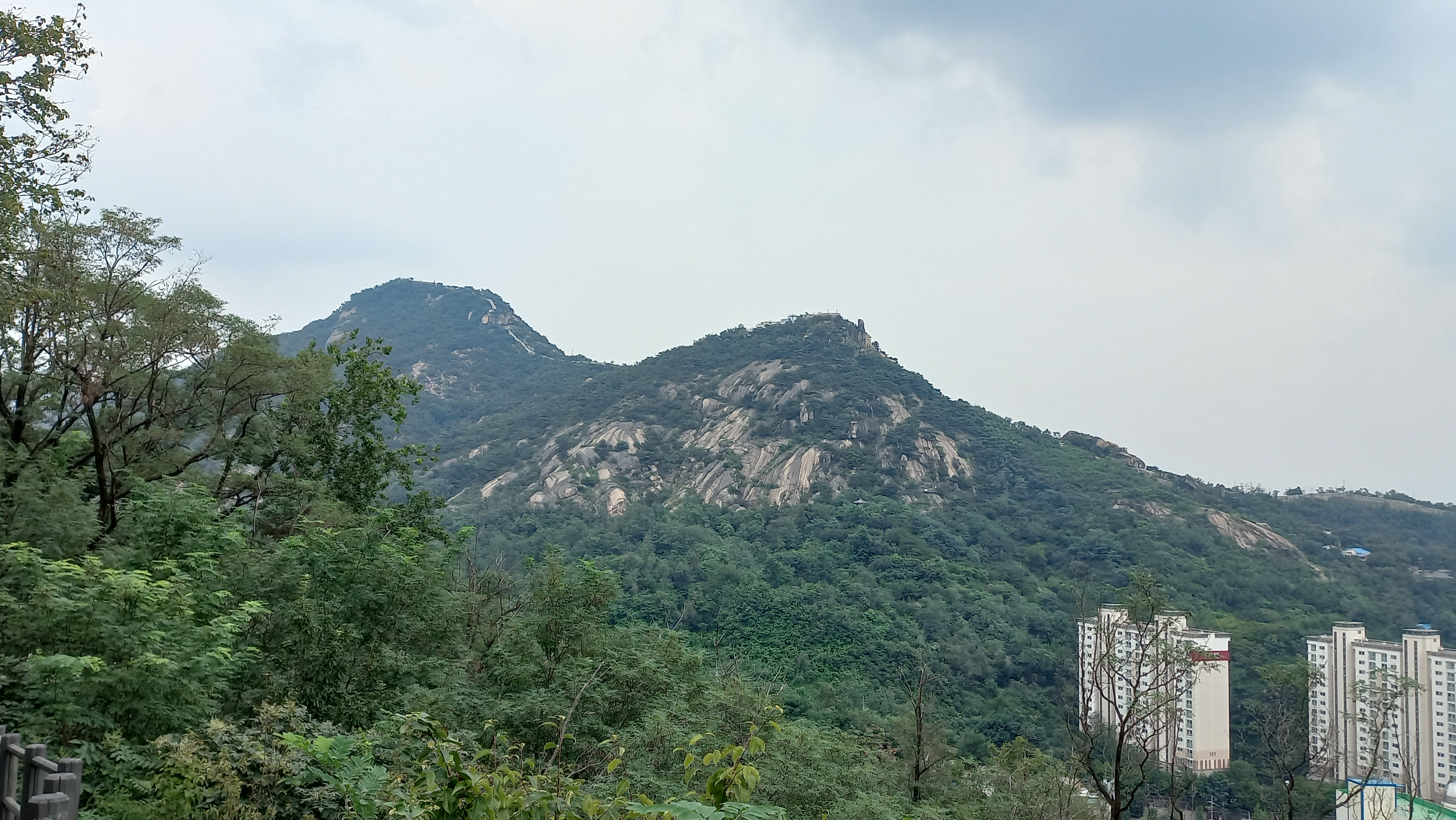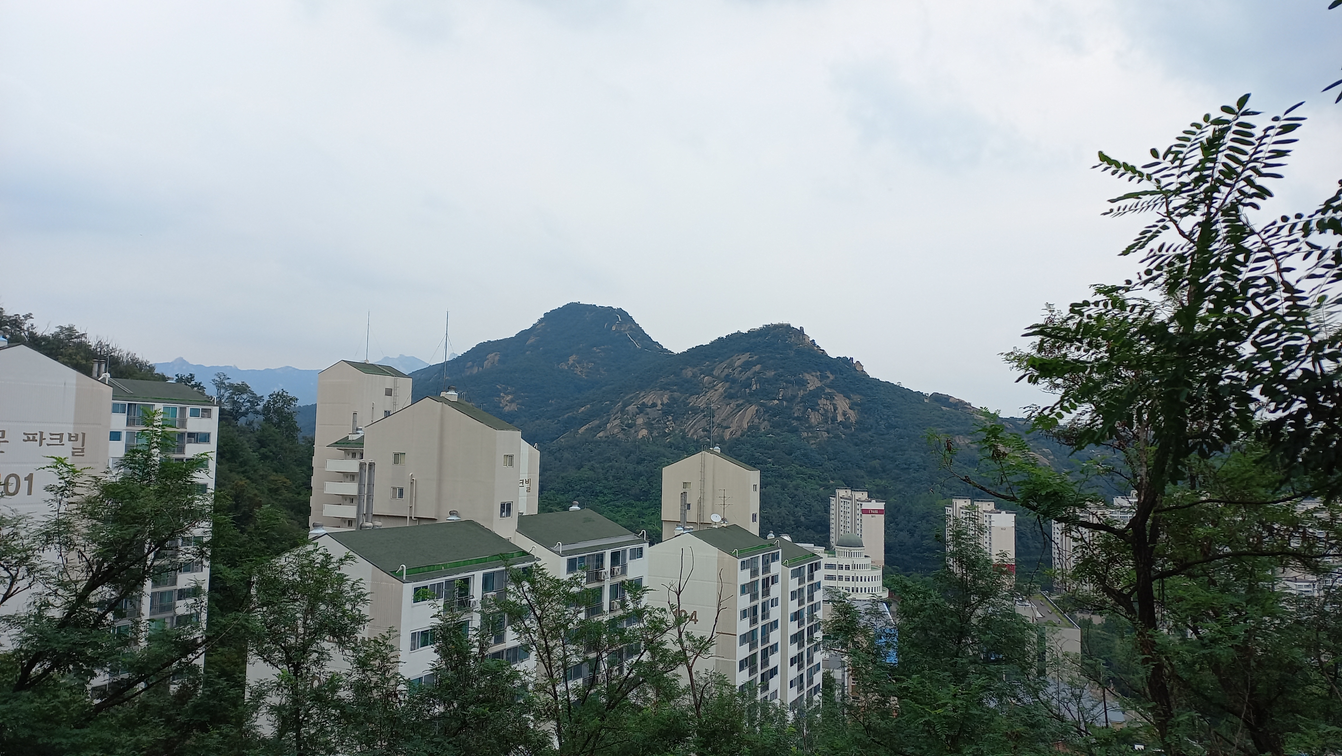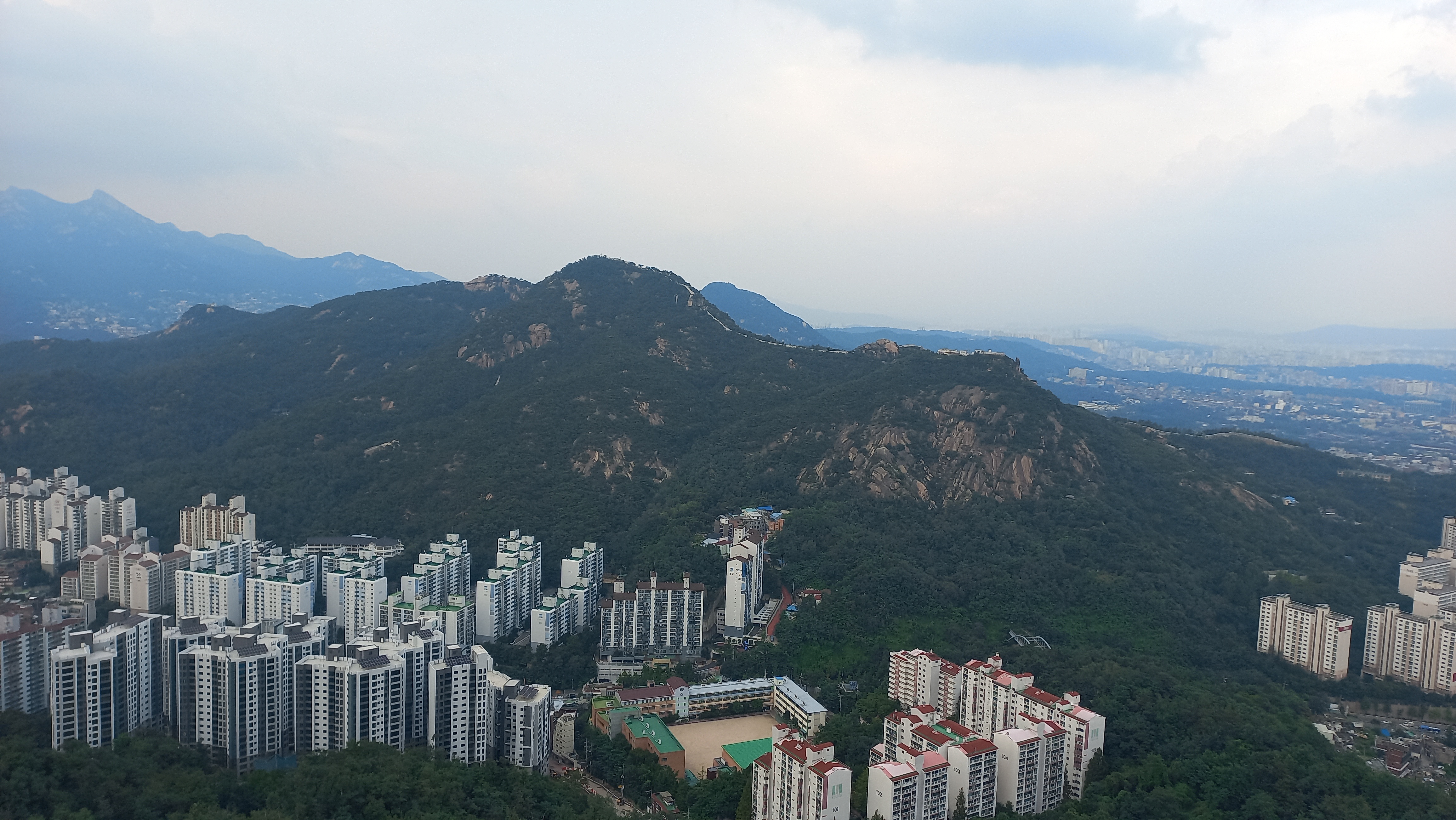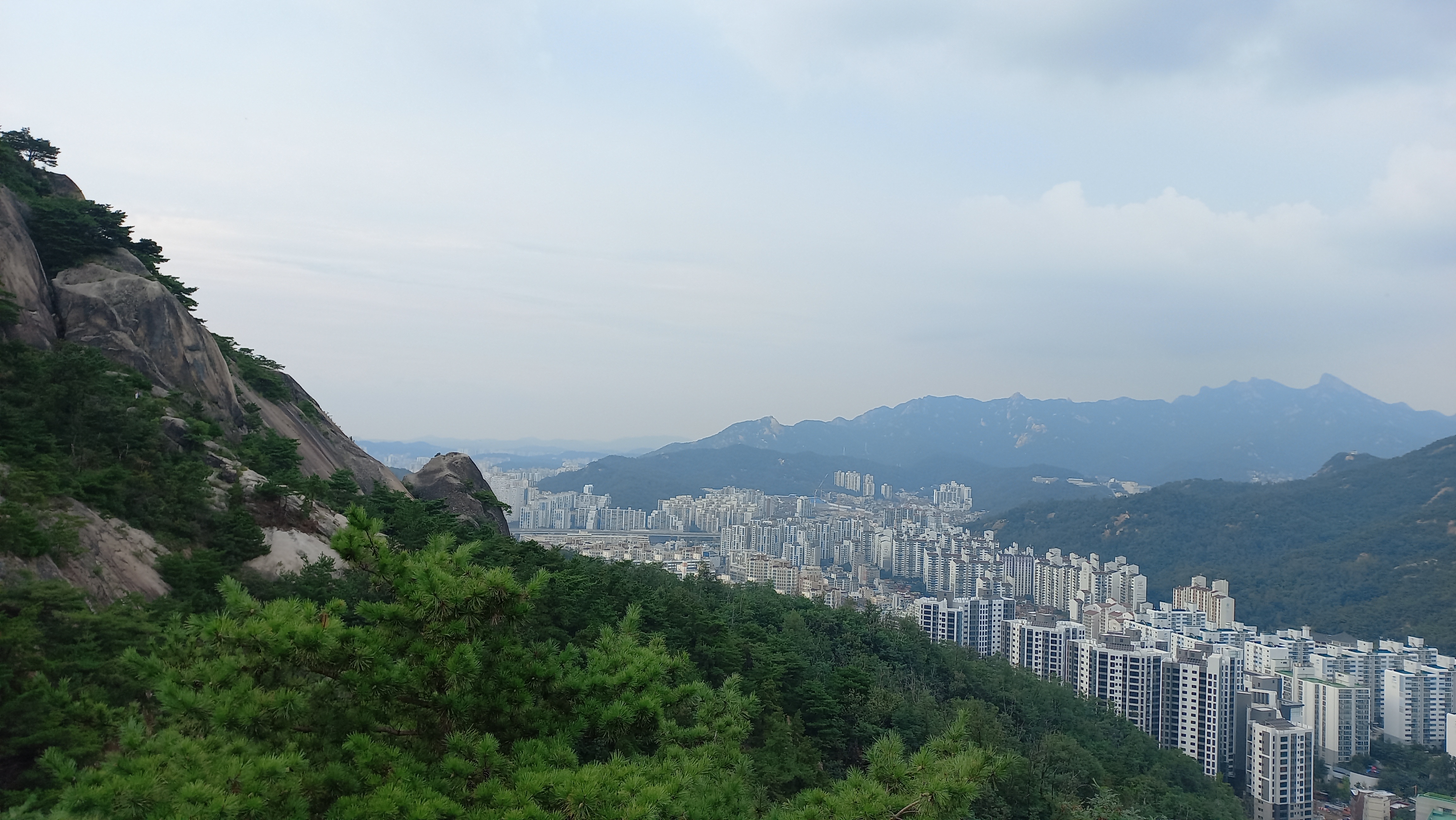 계단 50여개 올랐을 뿐인데 아파트와 서울 인왕산이 한눈에 들어오는 풍경이 나옵니다.