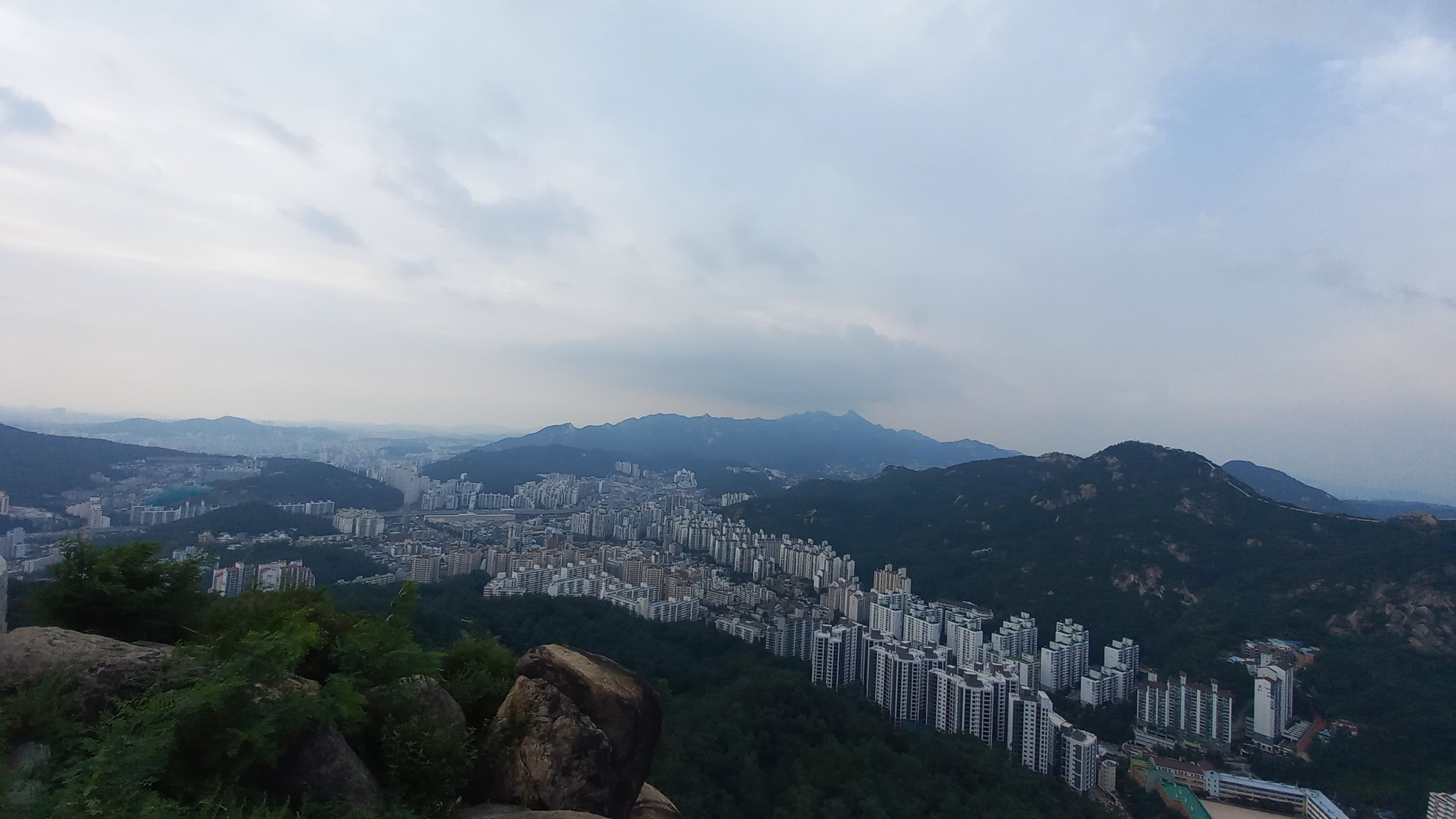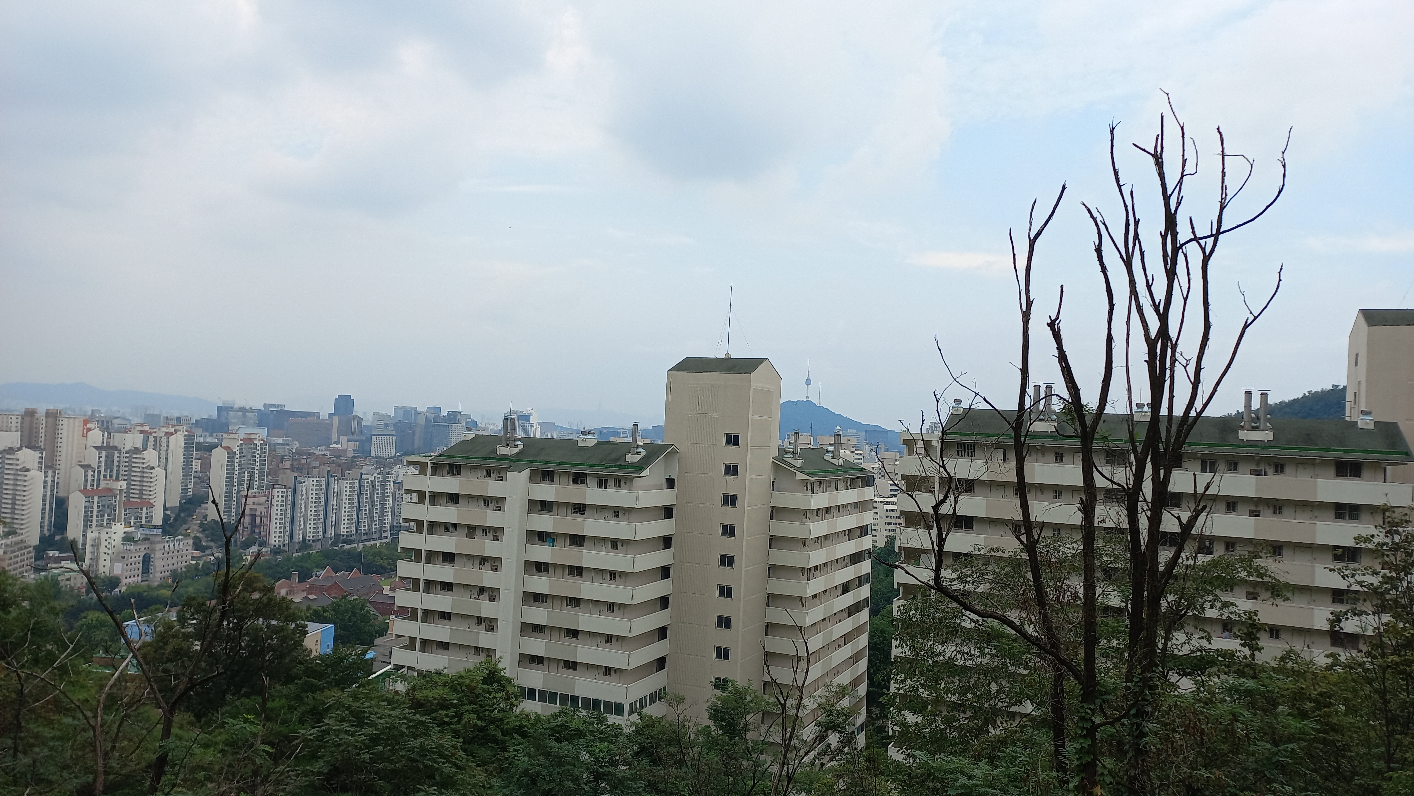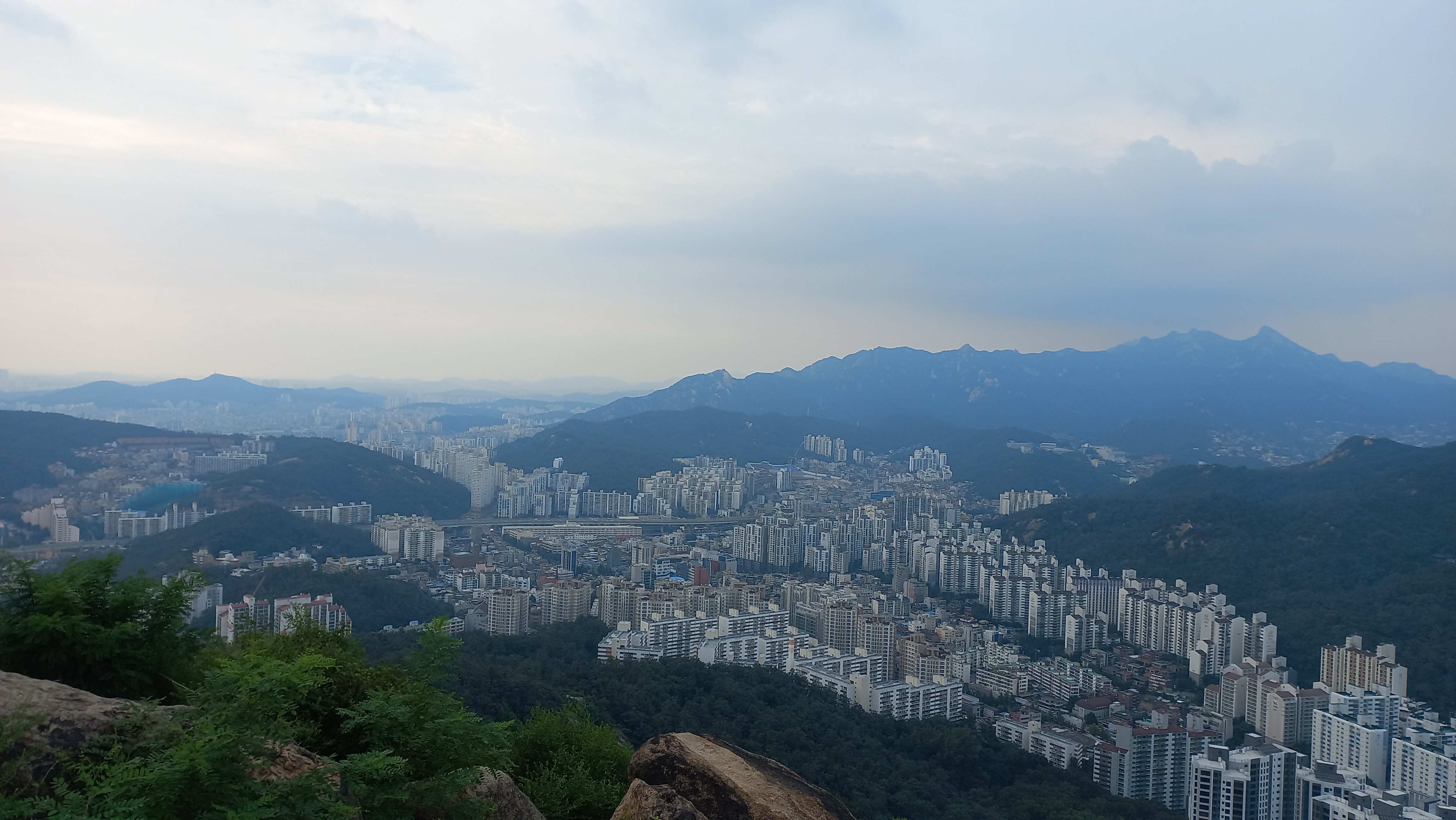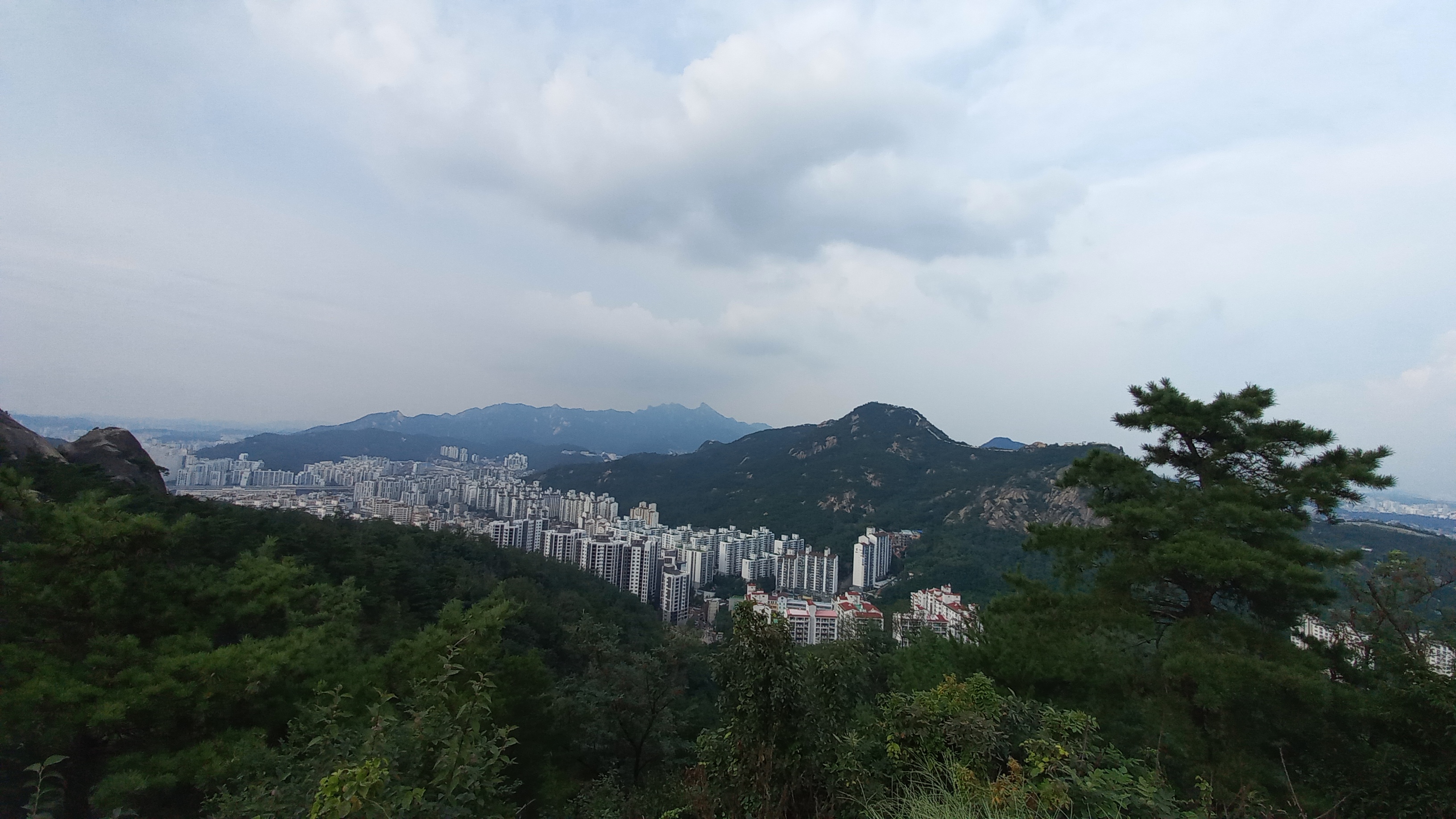 계단 50여개 올랐을 뿐인데 아파트와 서울 인왕산이 한눈에 들어오는 풍경이 나옵니다.