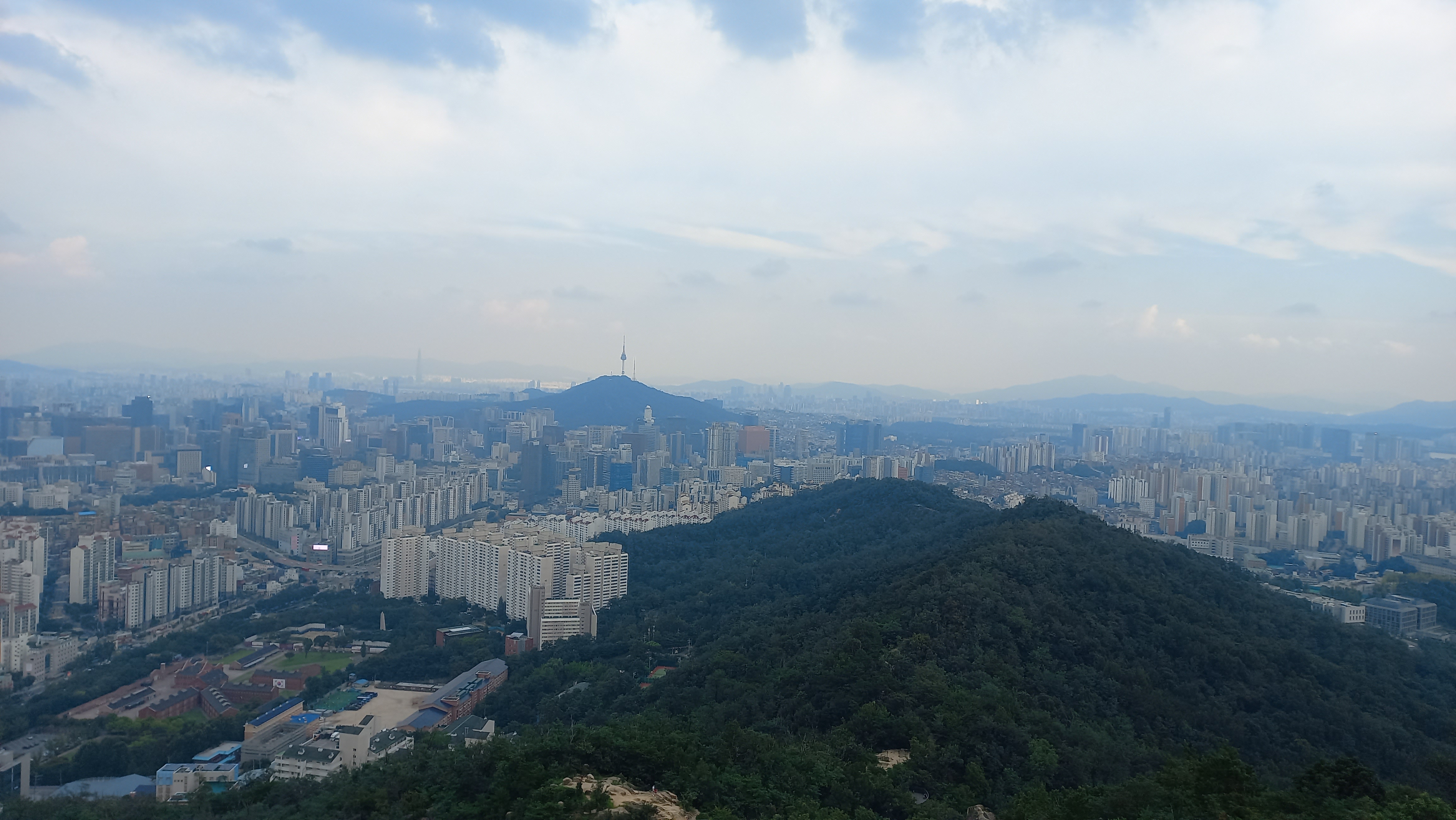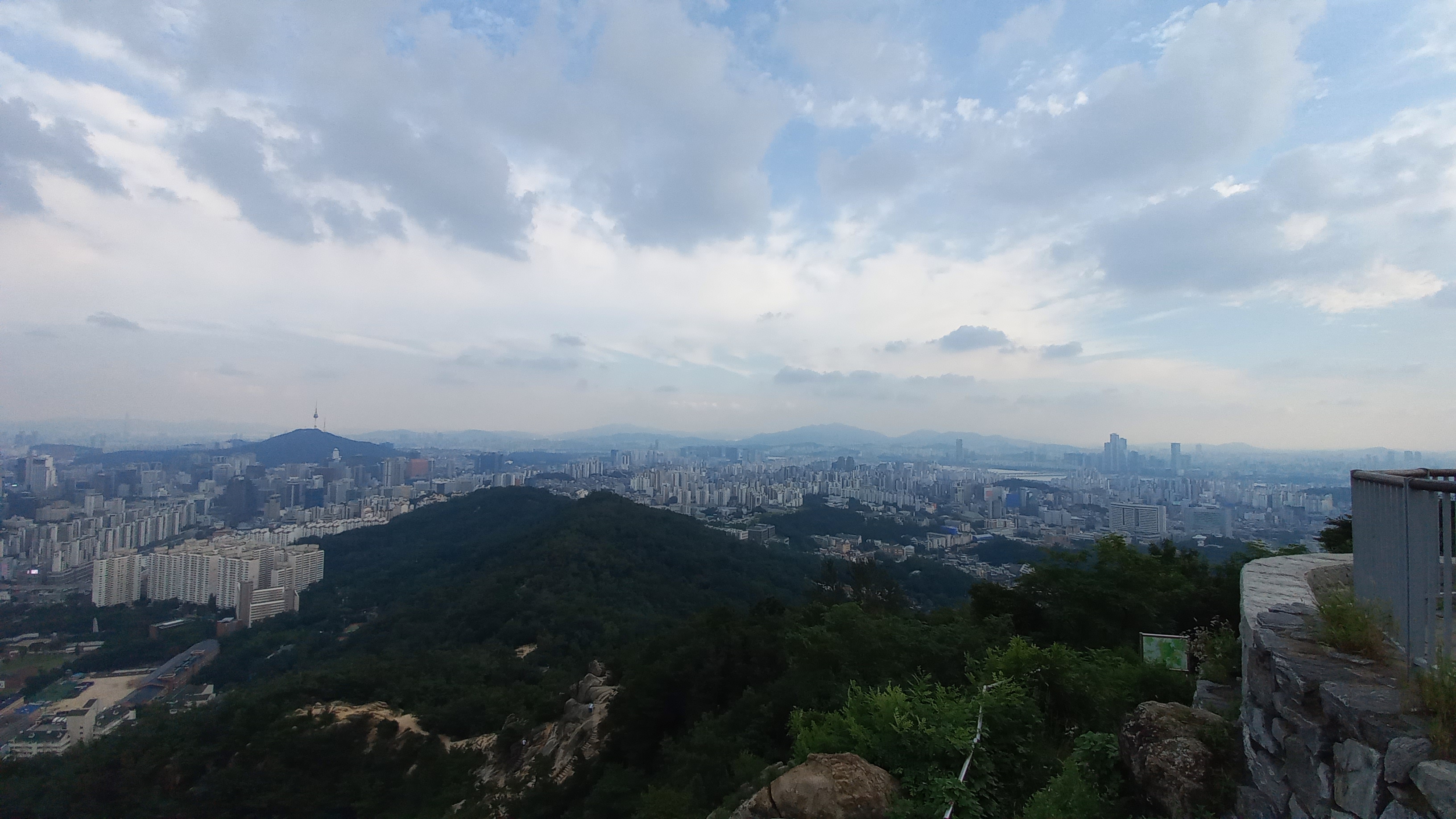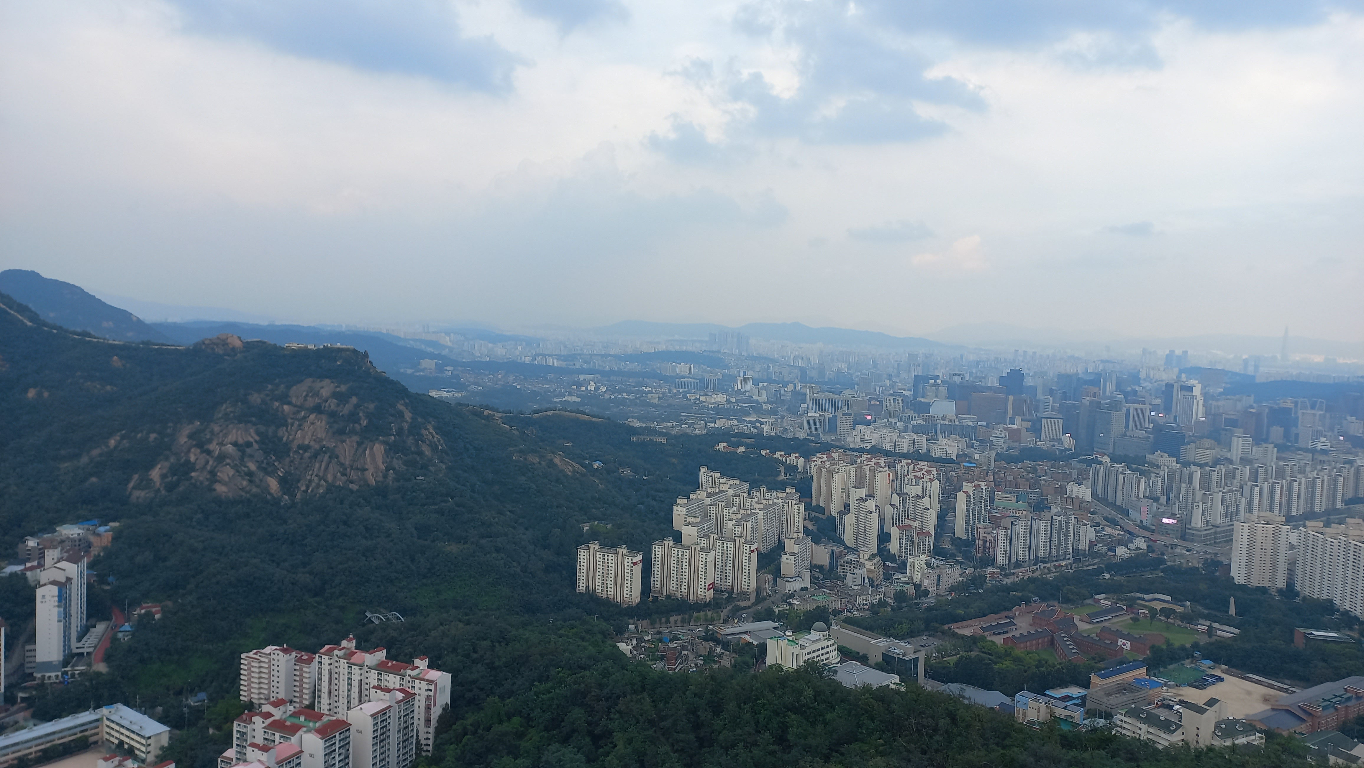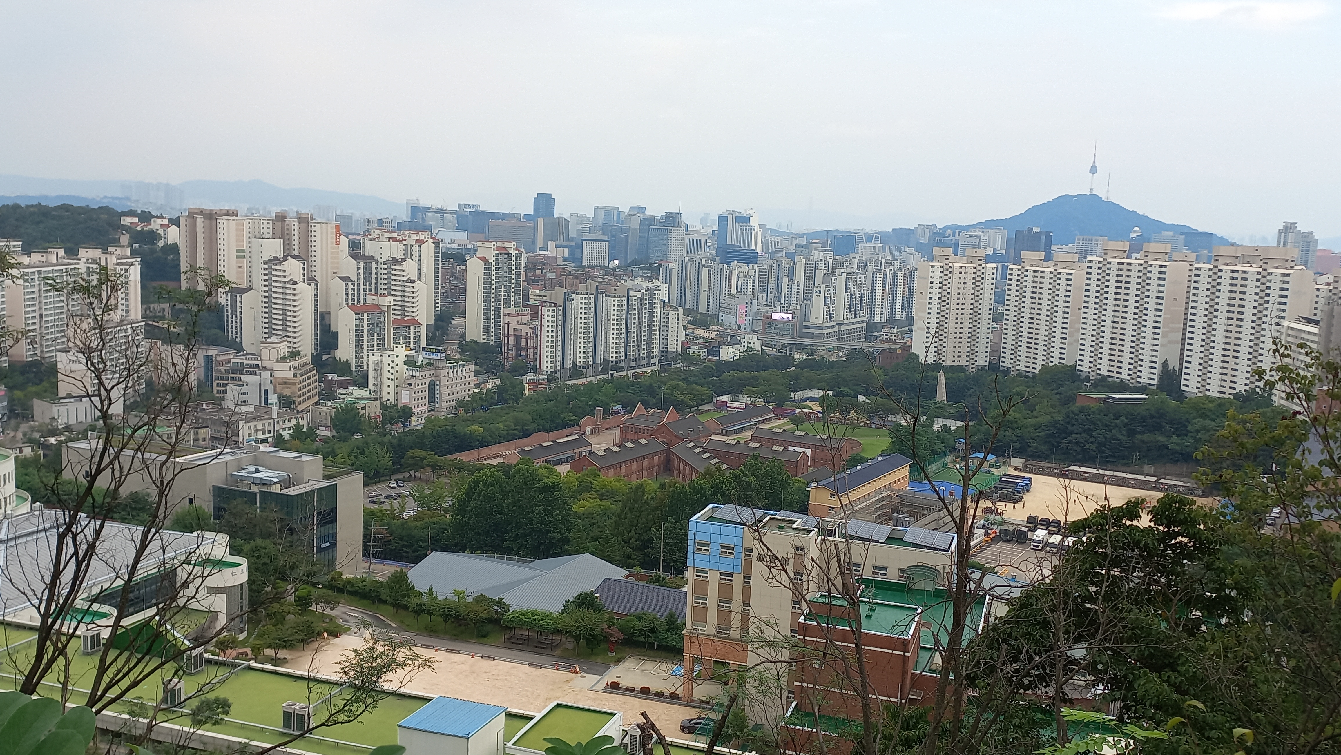 계단 50여개 올랐을 뿐인데 아파트와 서울 인왕산이 한눈에 들어오는 풍경이 나옵니다.