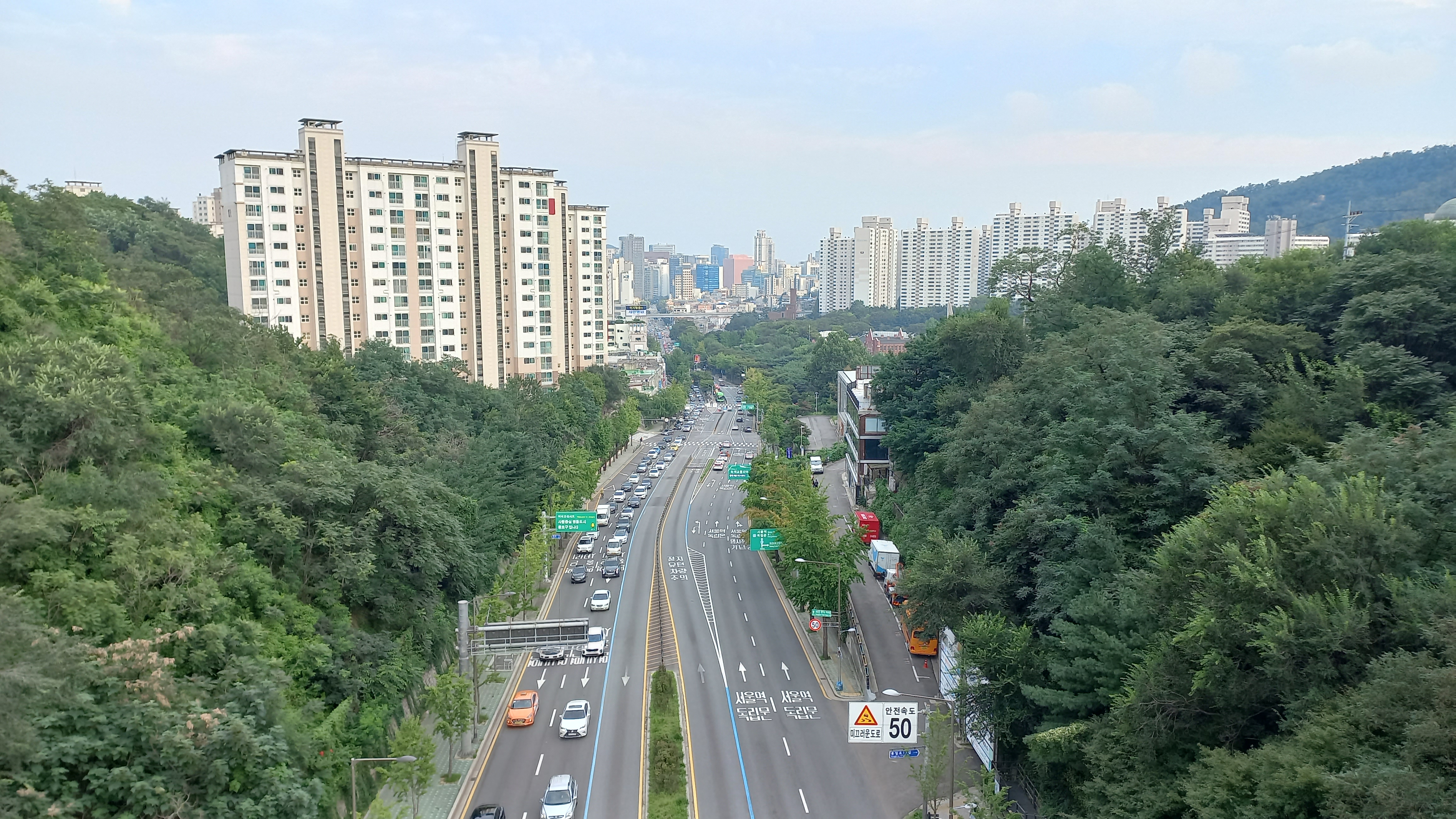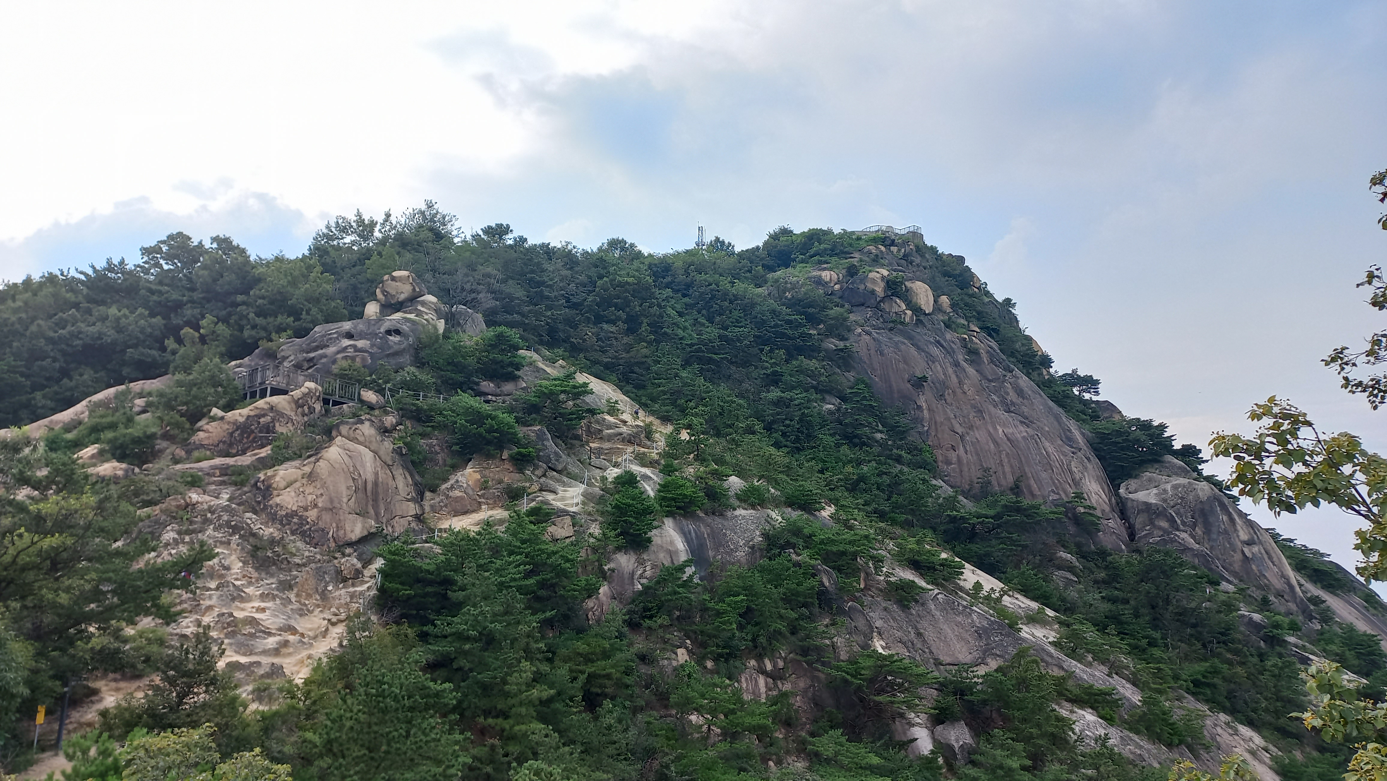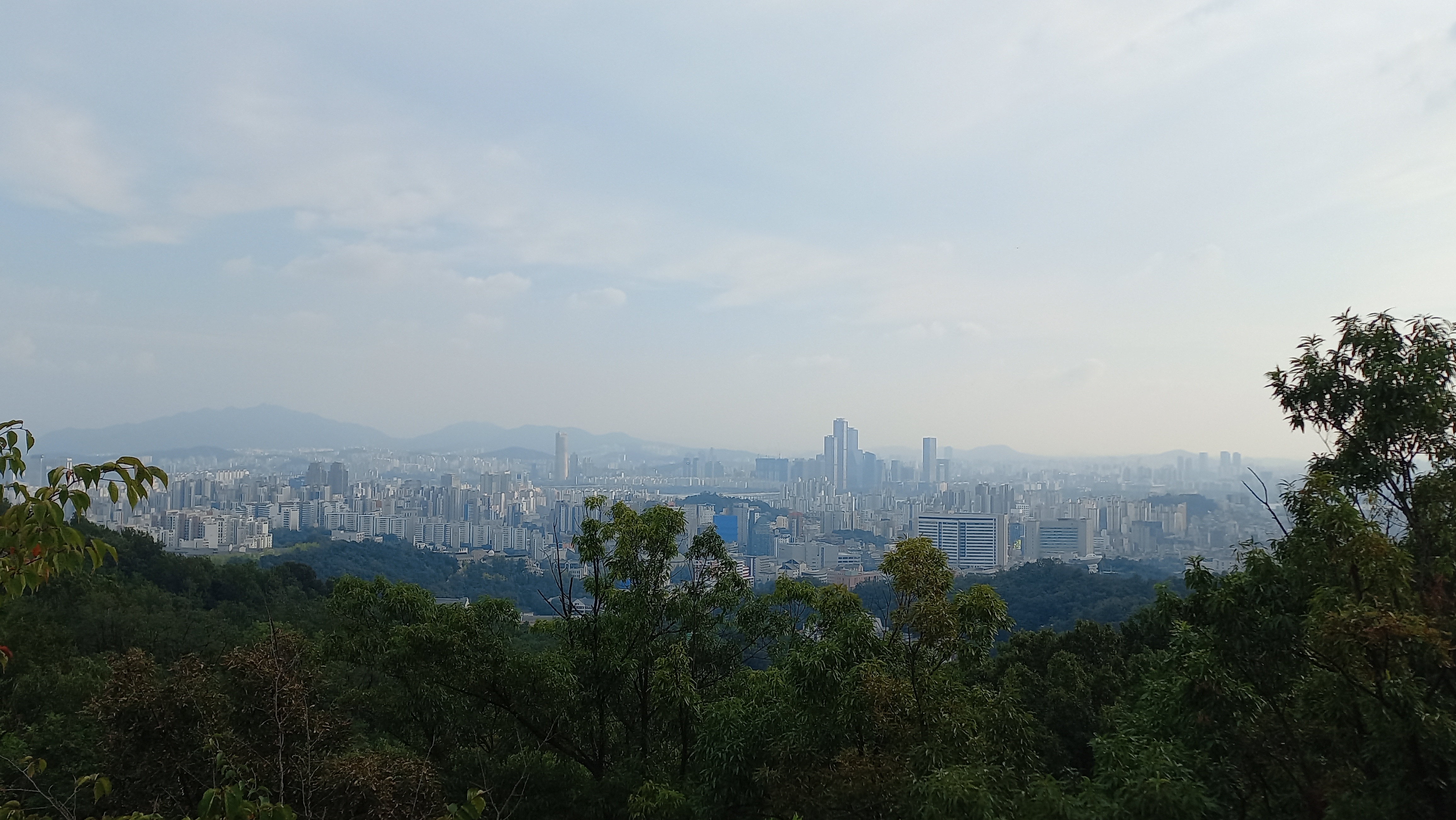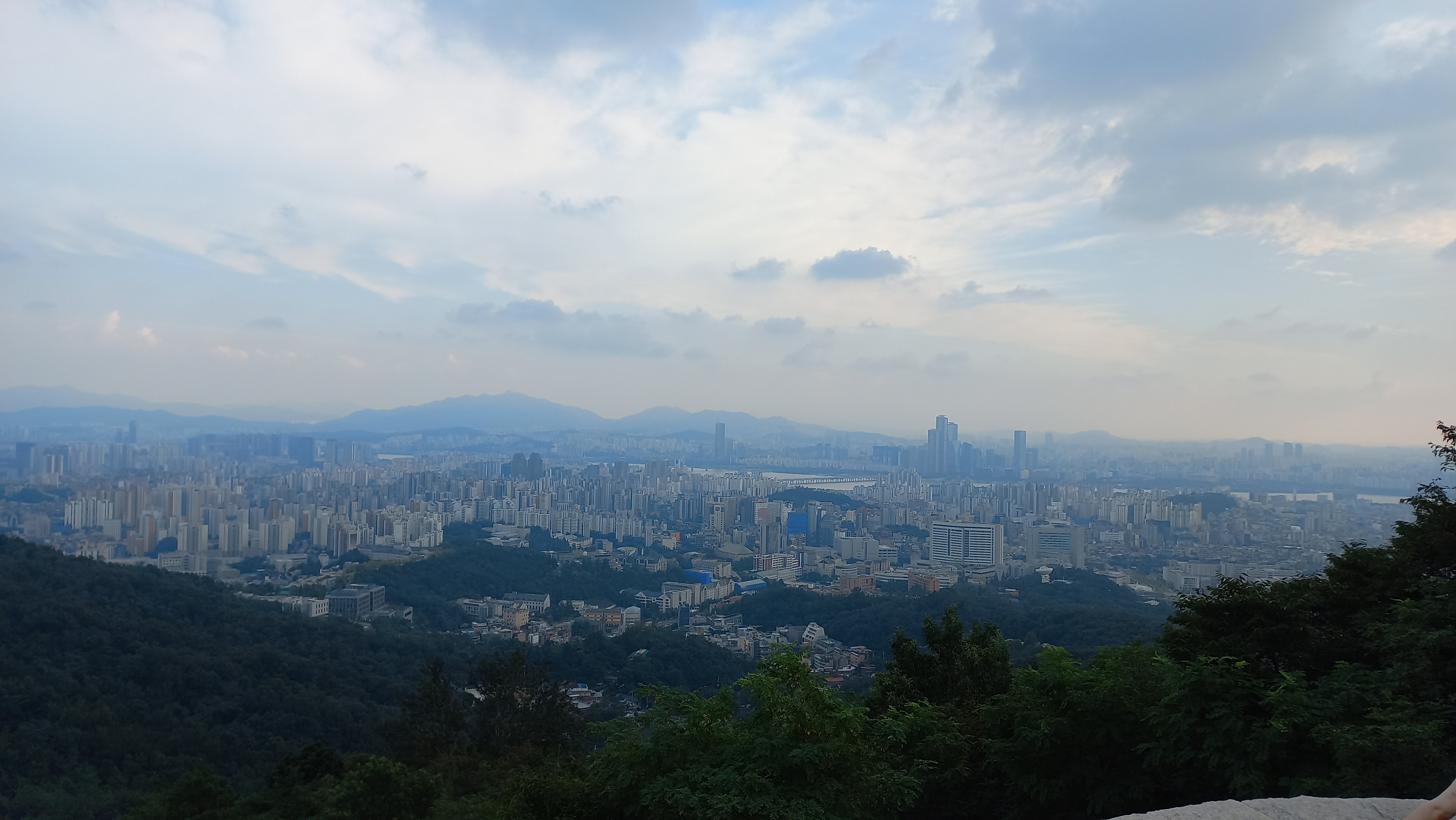 계단 50여개 올랐을 뿐인데 아파트와 서울 인왕산이 한눈에 들어오는 풍경이 나옵니다.