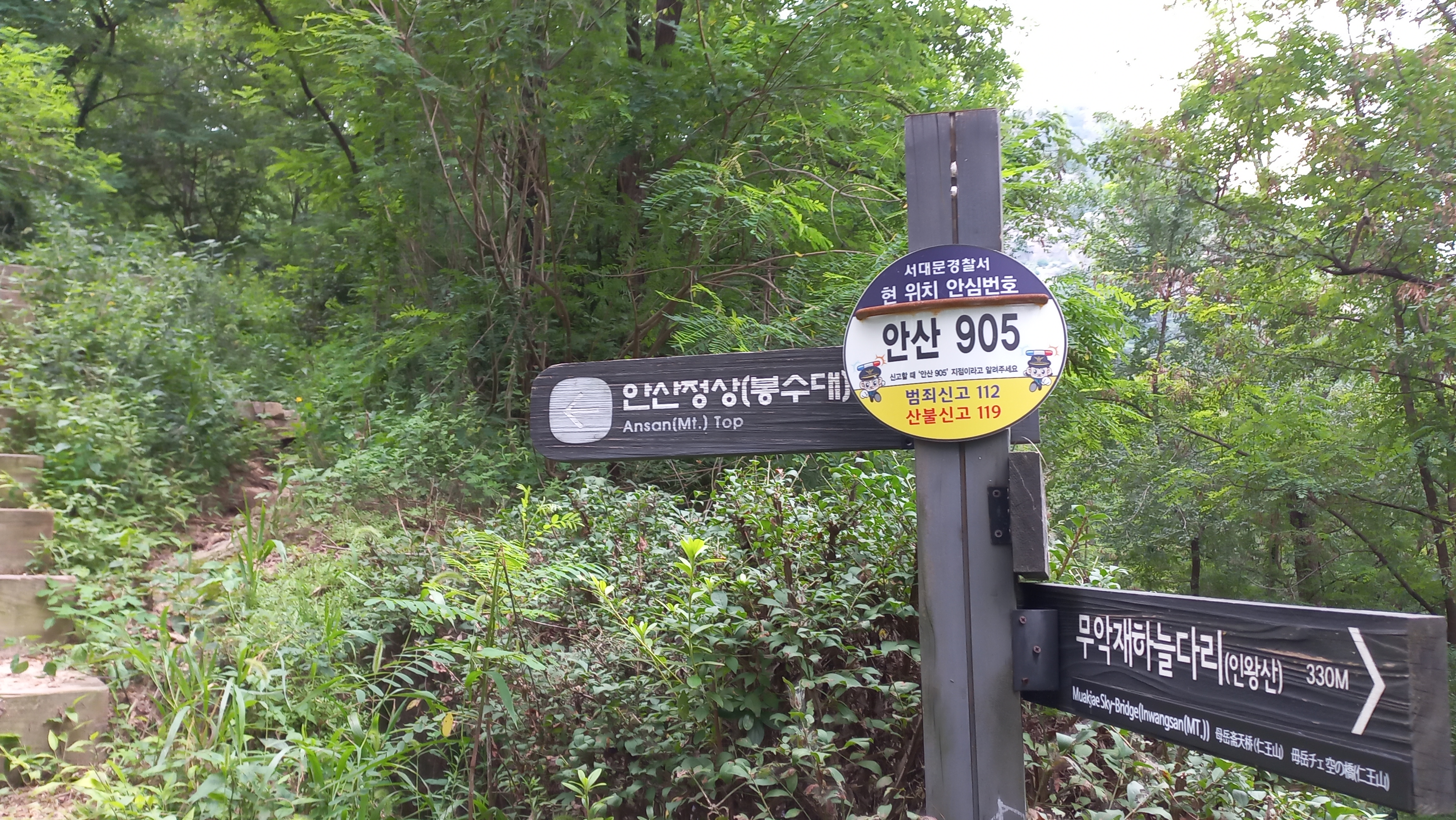 이곳에서 안산자락길은 대략 7km, 정상인 안산 봉수대까지는 1.3km 거리입니다.