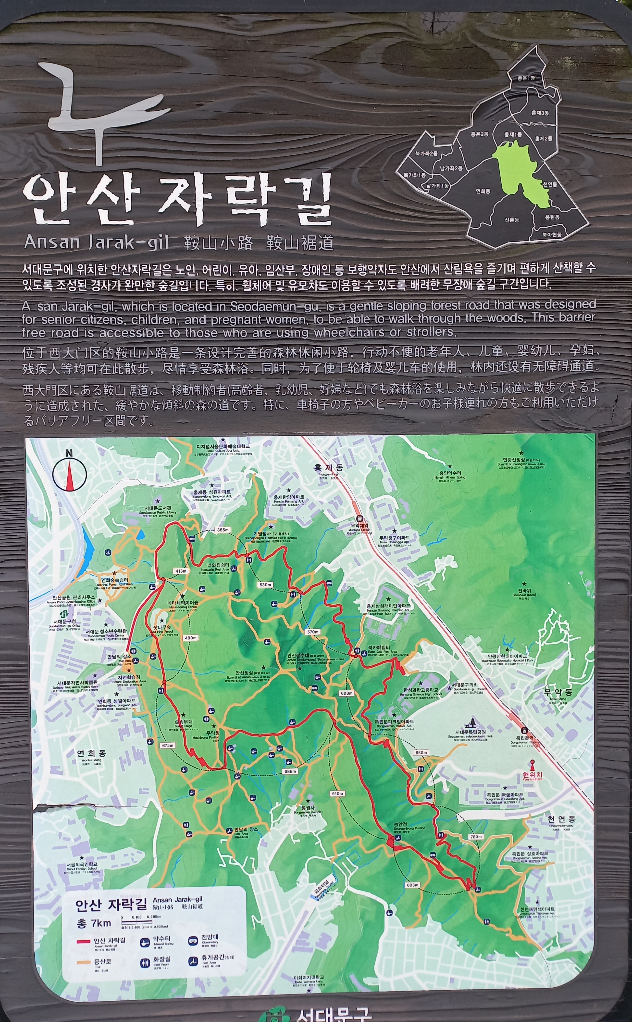 서울 도심의 사방에 있는 낙산, 인왕산, 남산, 북악산 등은 모두 다녀왔는데 이곳 서울 안산은 매번 자동차로 바라보는 동경의 대상이 되었다가 이번 서대문 나들이를 간 김에 안산자락길을 걷고 안산 정상까지 등산을 다녀왔습니다.