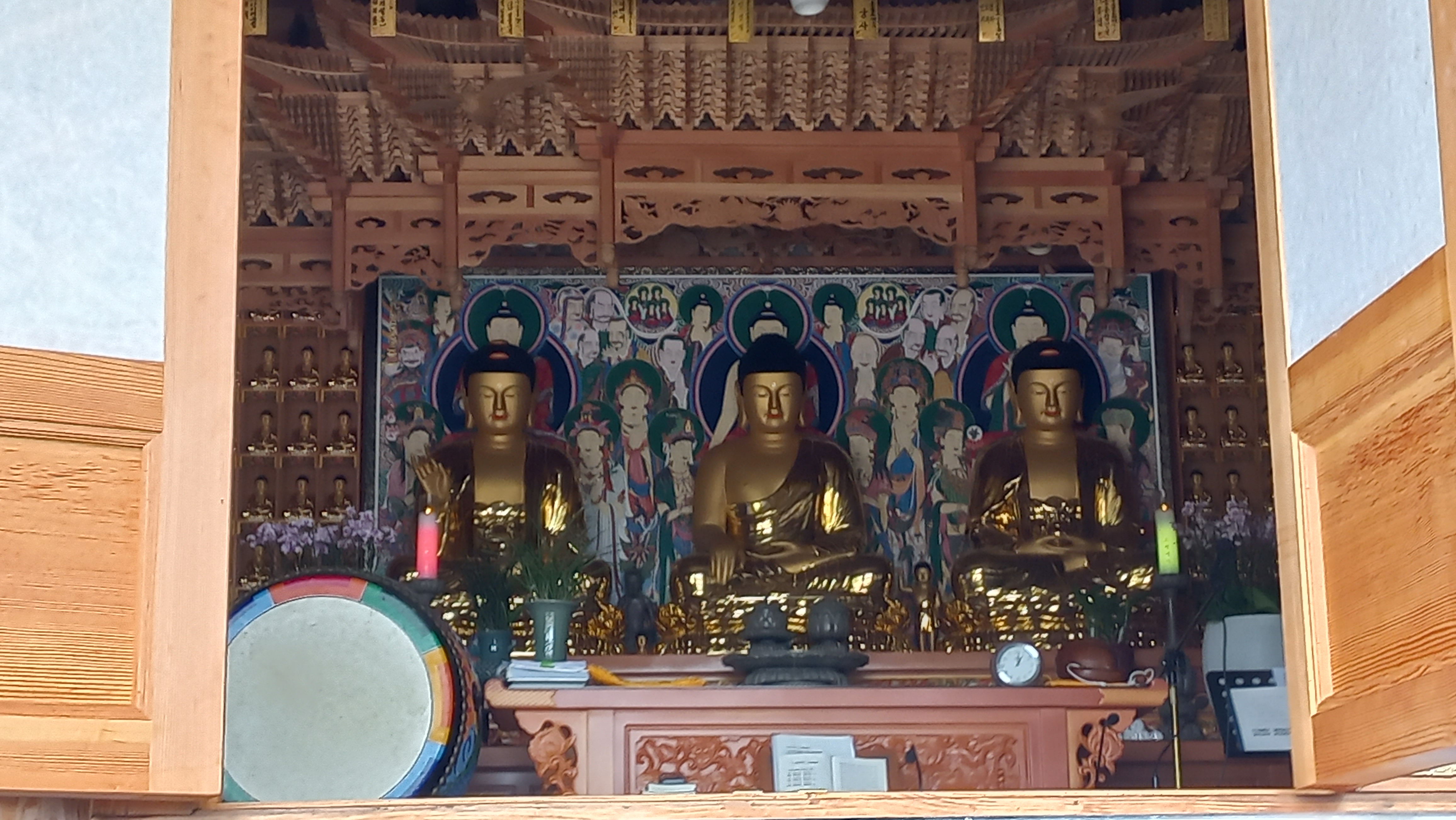 영종도 유일의 전통 사찰인데도 일주문과 천왕문도 없이 10년 불사 끝에 지난 10월에 낙성된 법당 대웅보전이 맨살로 서 있는 사찰입니다.