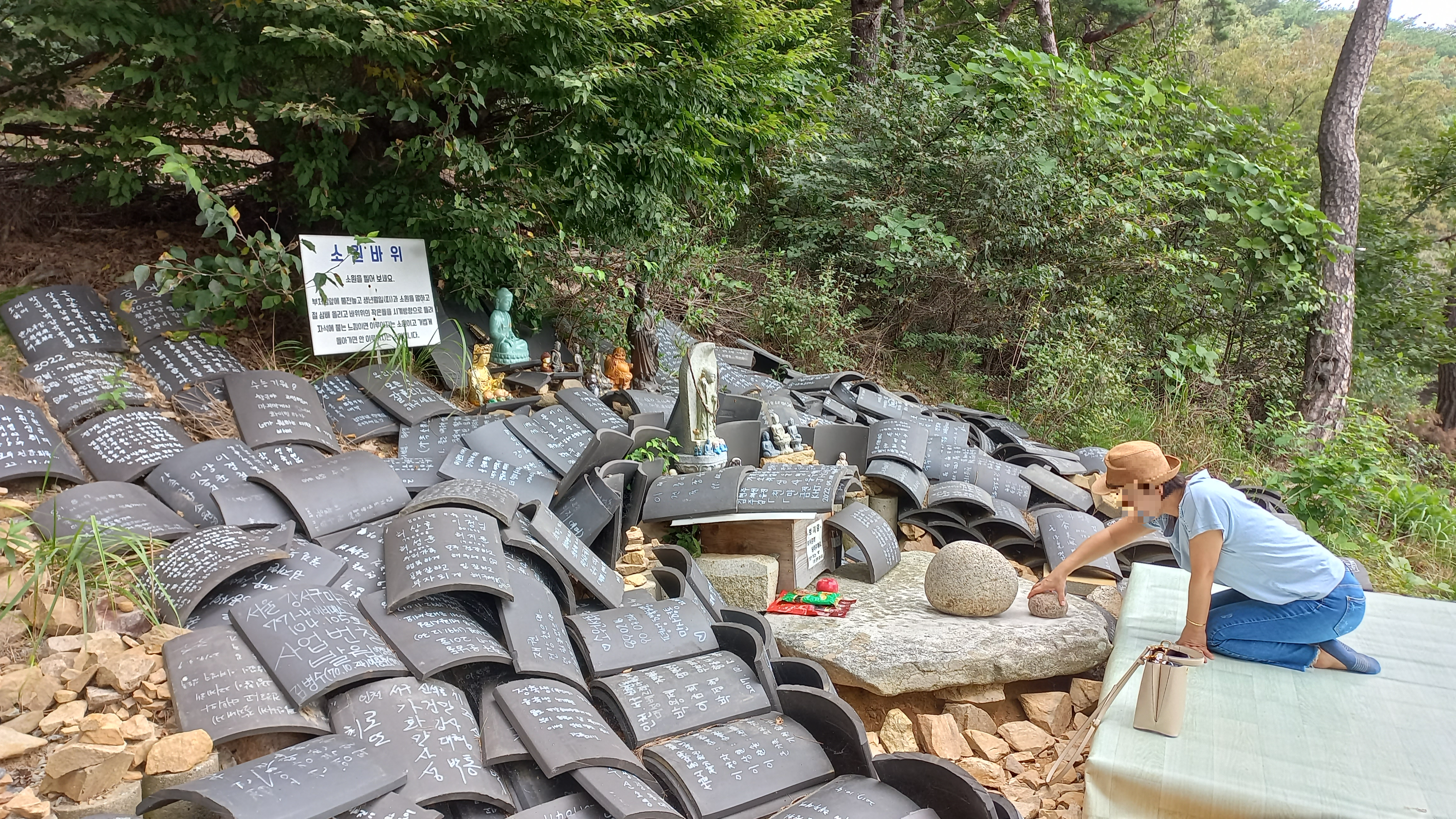 소원바위에서 생년월일과 소원을 말하고 삼배를 올린 후 바위 위의 작은 돌을 시계방향으로 돌려 자석에 붙는 느낌이 들면 소원이 이루어지고, 가볍게 돌아가는 느낌이라면 소원이 이루어지지 않는다고 합니다.