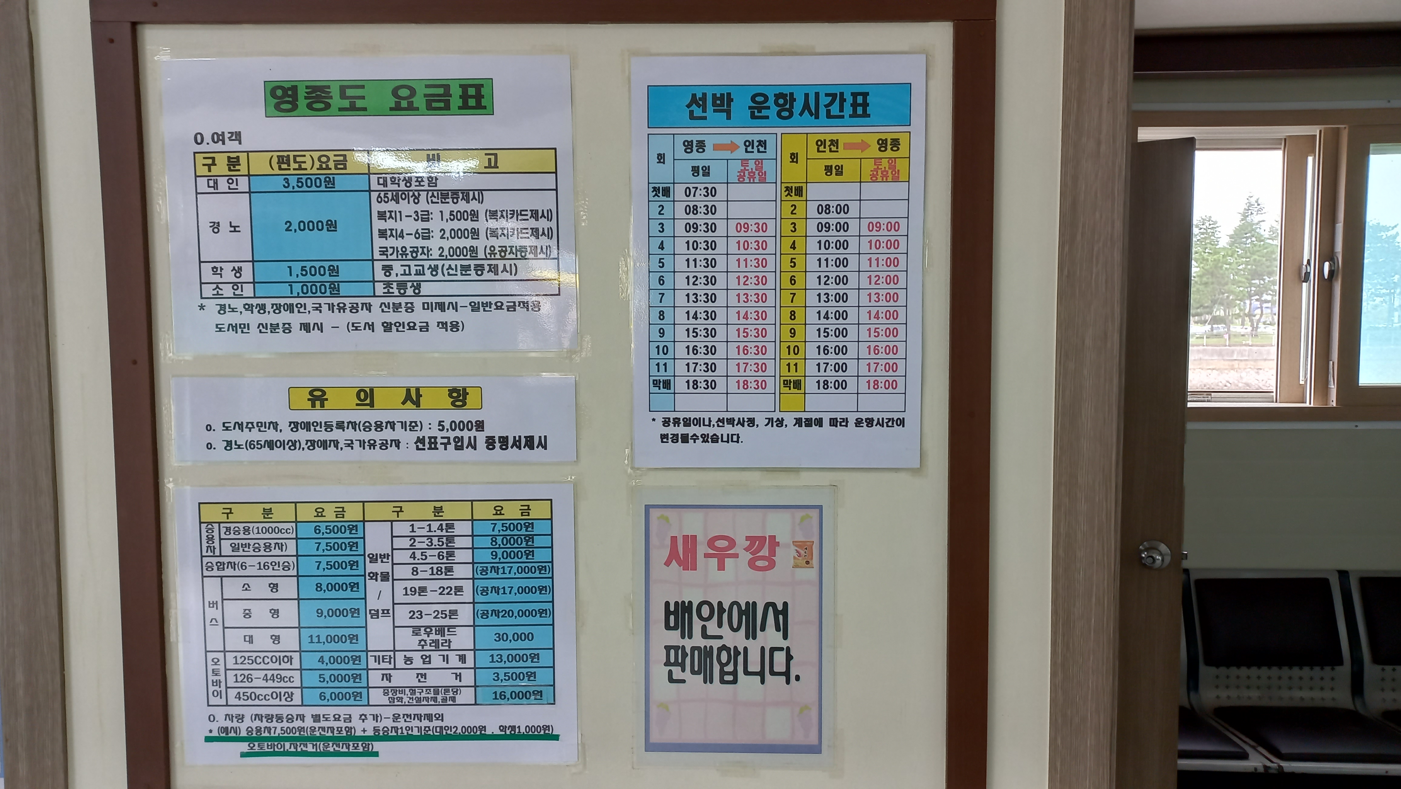 영종도 구읍뱃터 풍경과 월미도행 여객터미널 시간표