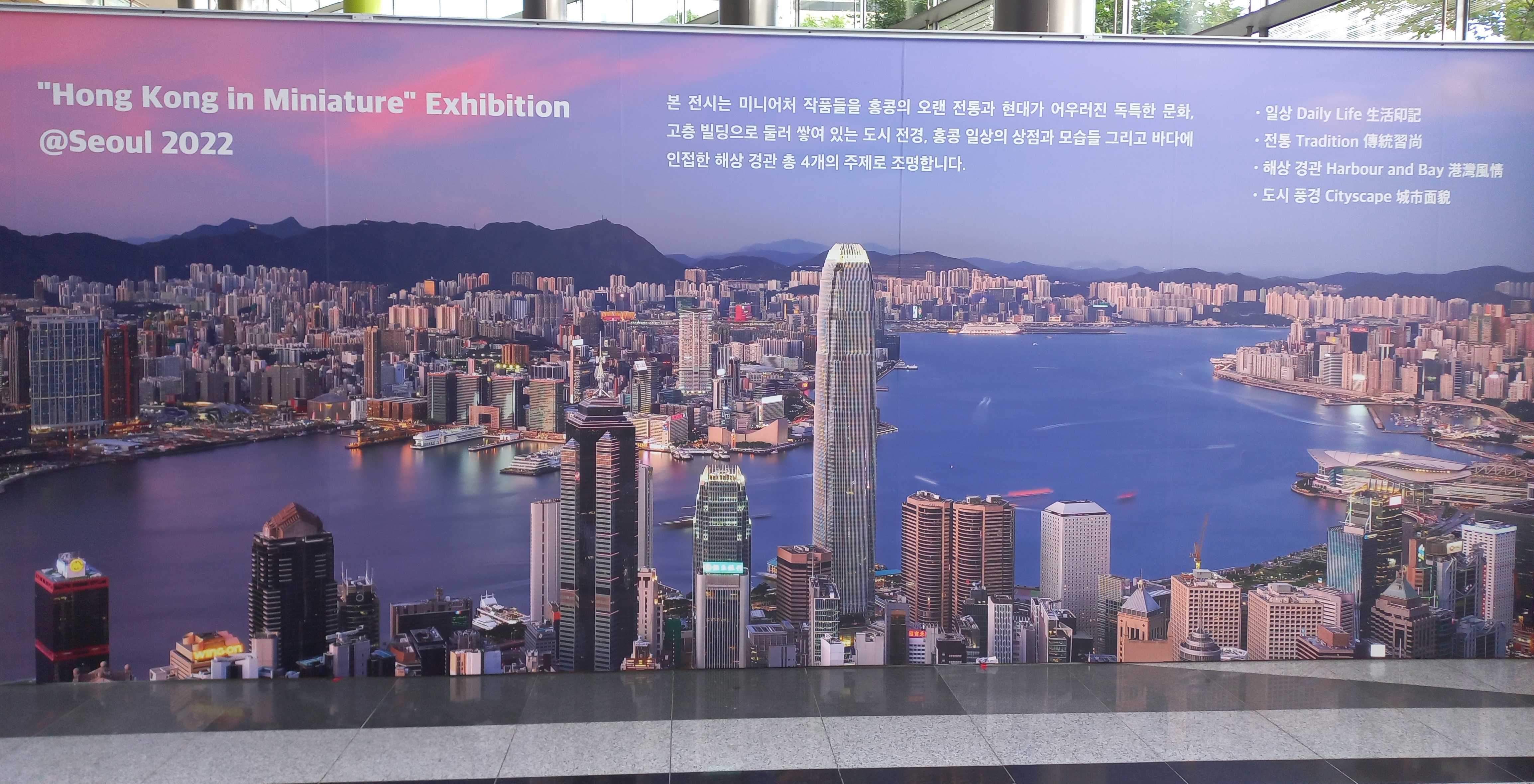 홍콩 미니어처 전시회는 '일상(Daily Life)', '전통(Tradition)', '도시 풍경(Cityscape)', '해상 경관(Harbour and Bay)' 4가지 주제로 전 세계적으로 활동하는 미니어처 작가들이 참여해서 약 40여개의 작품으로 구성되어 있습니다.