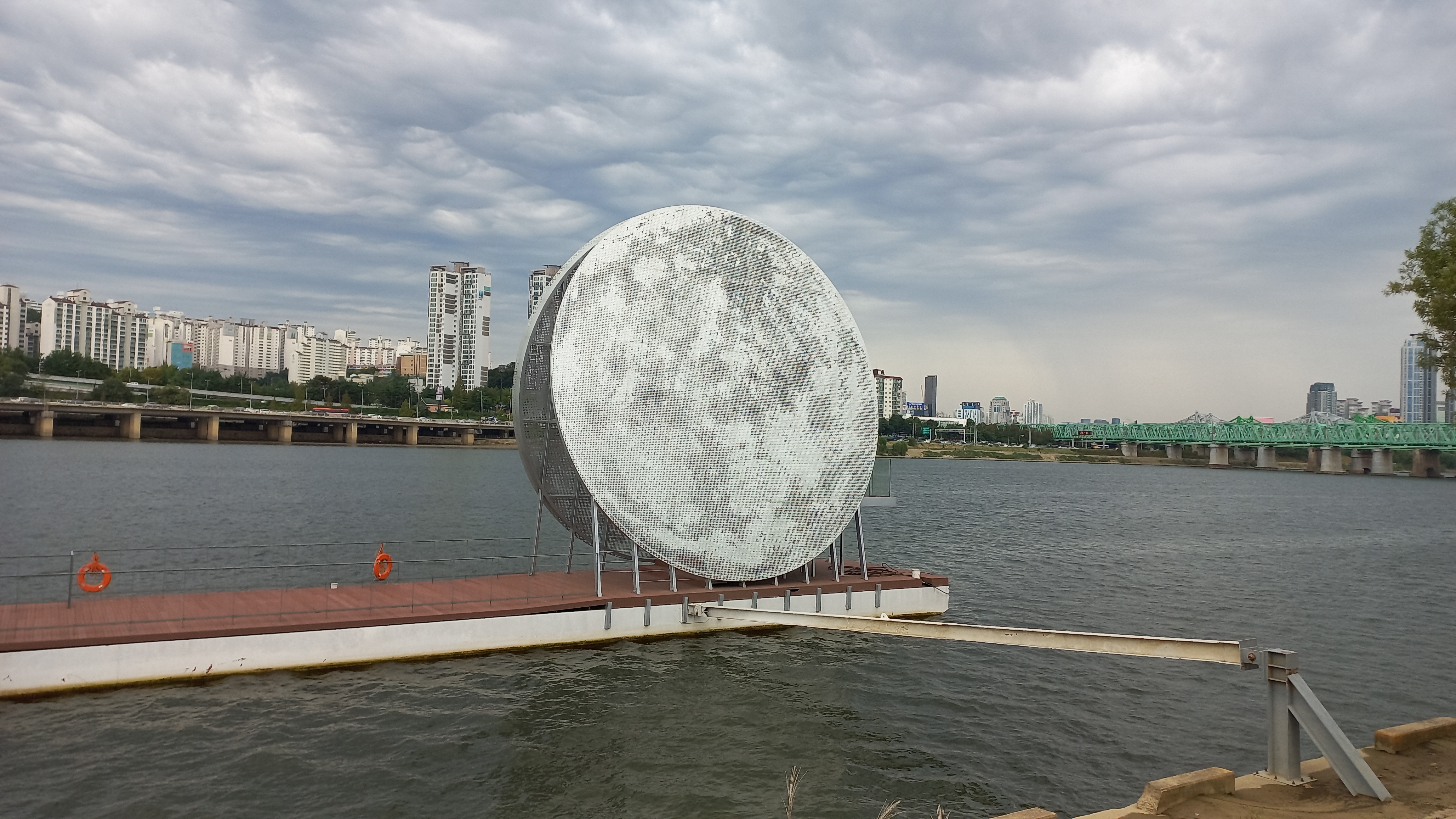여의도에서 바라봤을 때 보이는 달 조형물인 달빛노들
