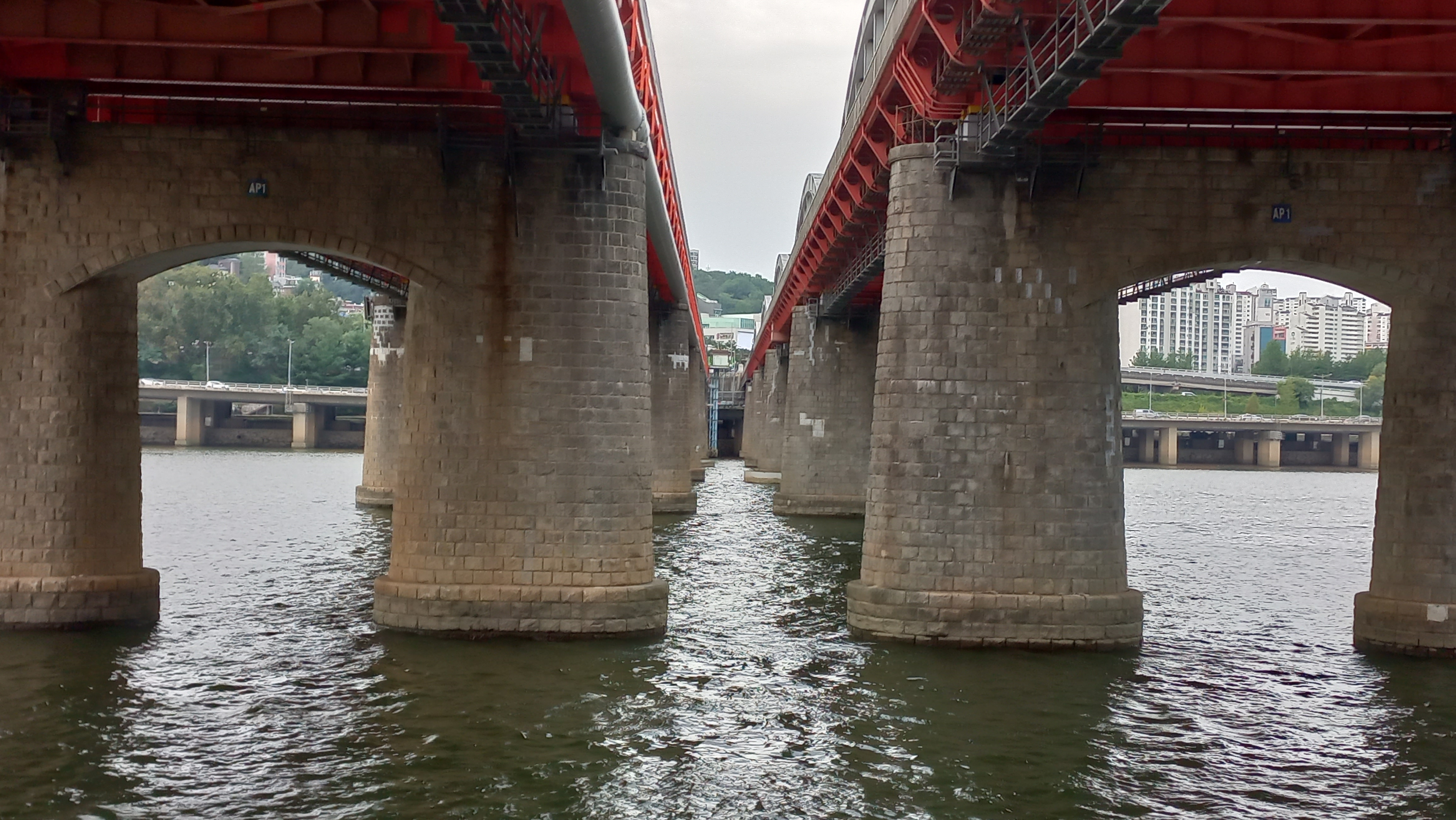 한강대교 남단은 아치형 조형물이 있는 반면 북단은 밋밋한 다리로 설계되어 있고요.