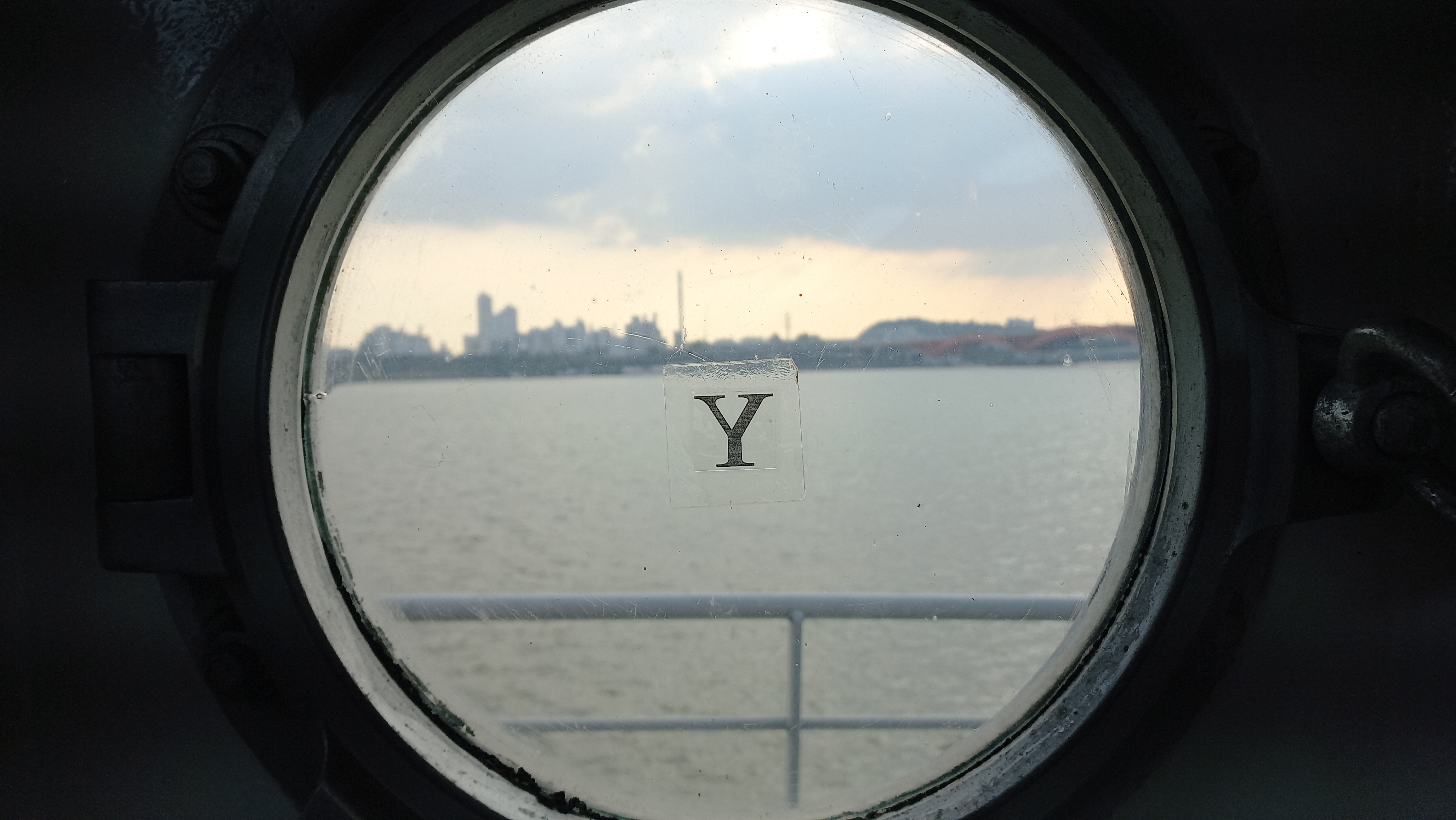 작은 원형의 창문을 통해 바깥 풍경을 볼 수 있습니다.