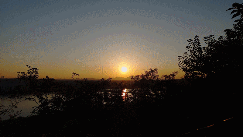 날씨가 맑아서 인천 계양산으로 떨어지는 모습을 직접 볼 수 있었습니다.