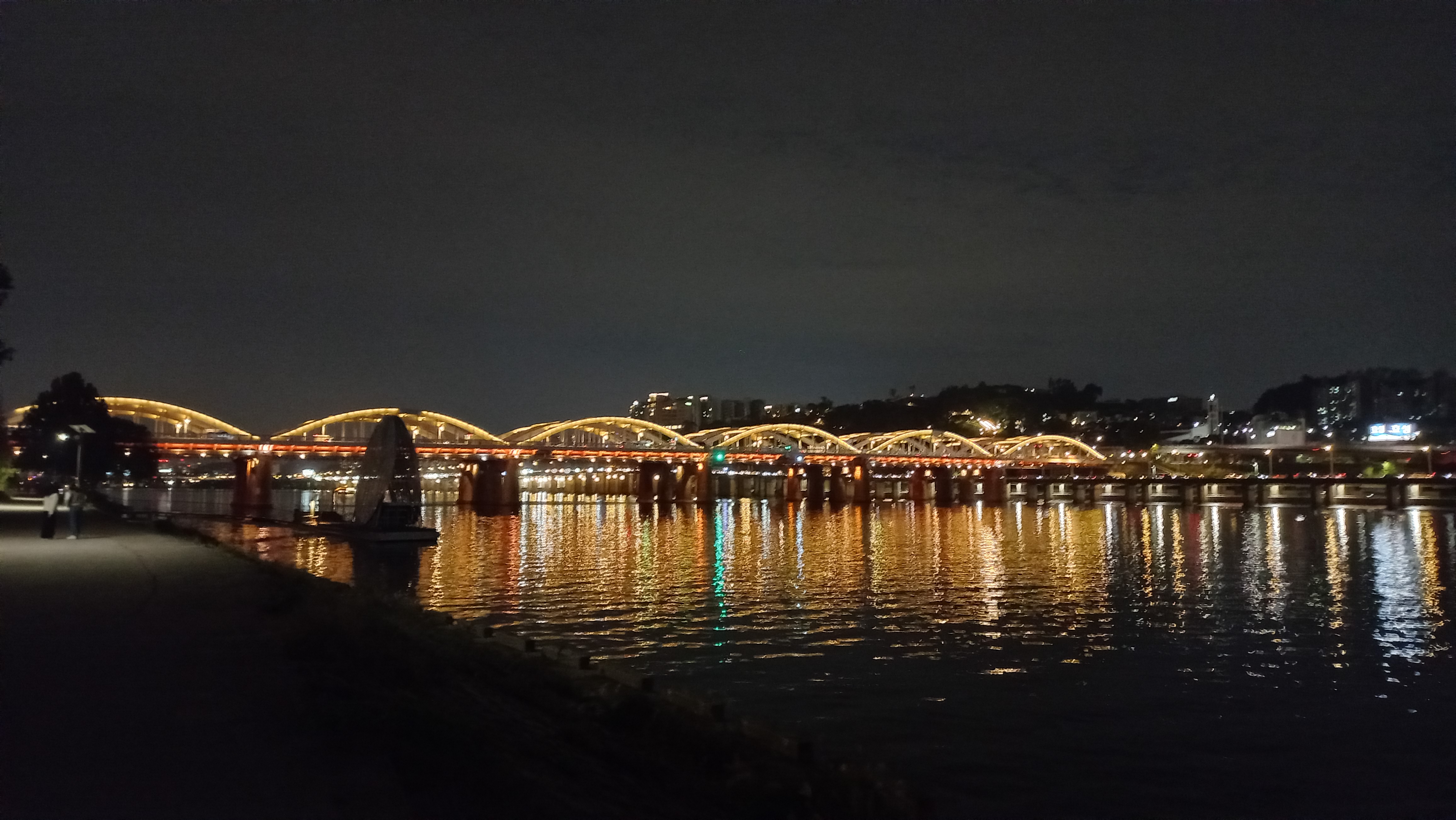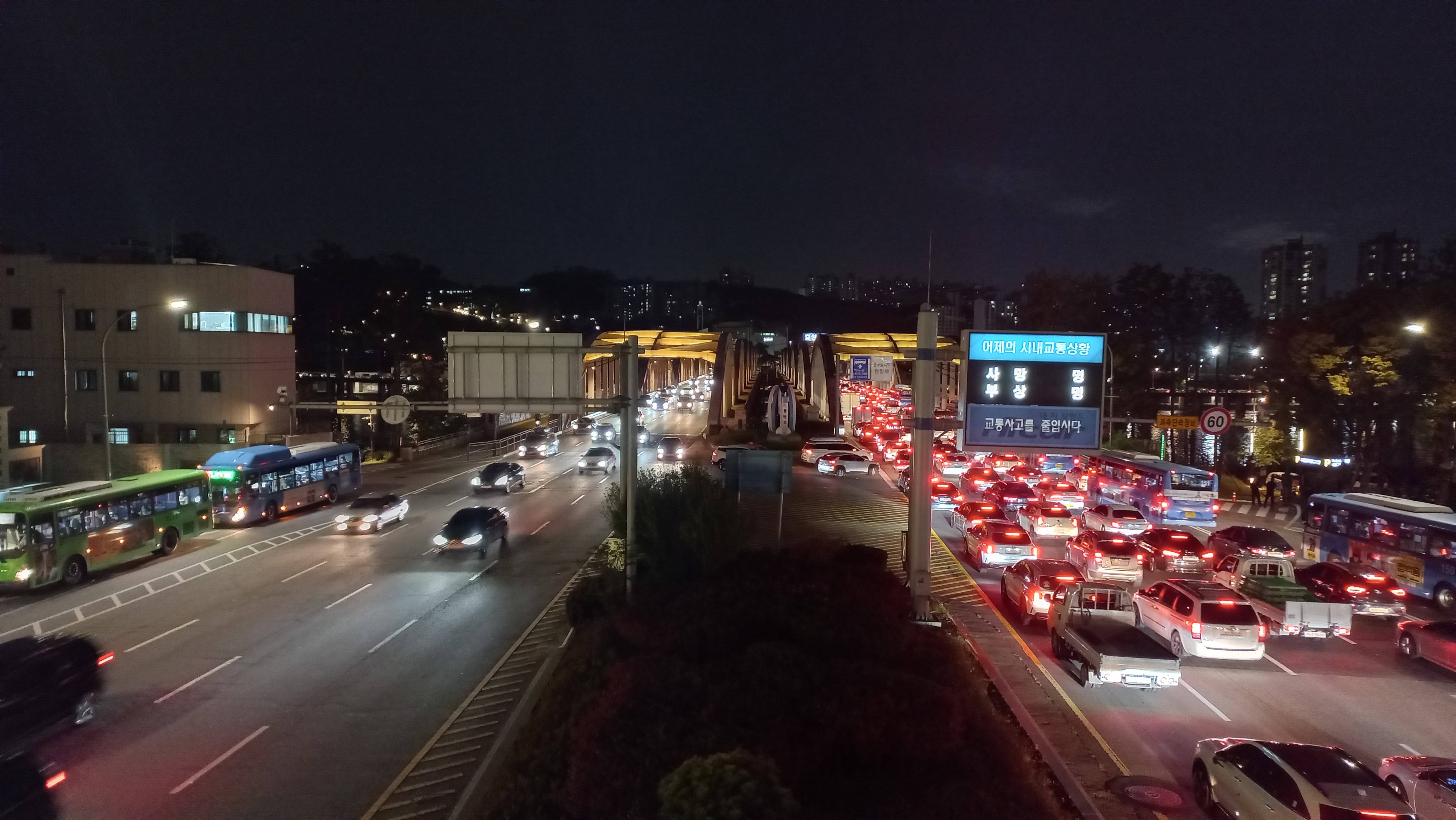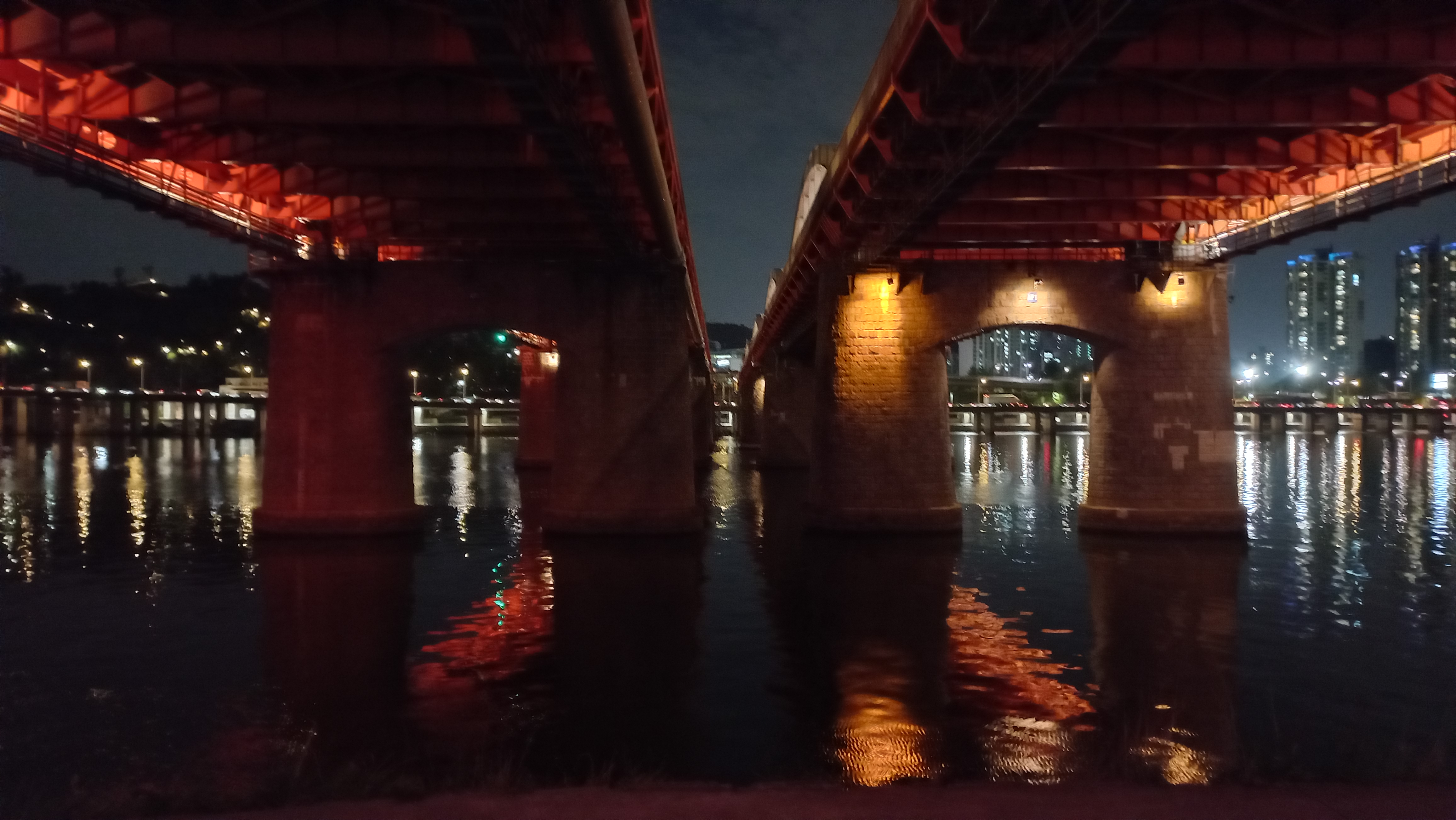 한강대교 북단은 남단의 화려한 야경과는 대비되는 모습입니다.
