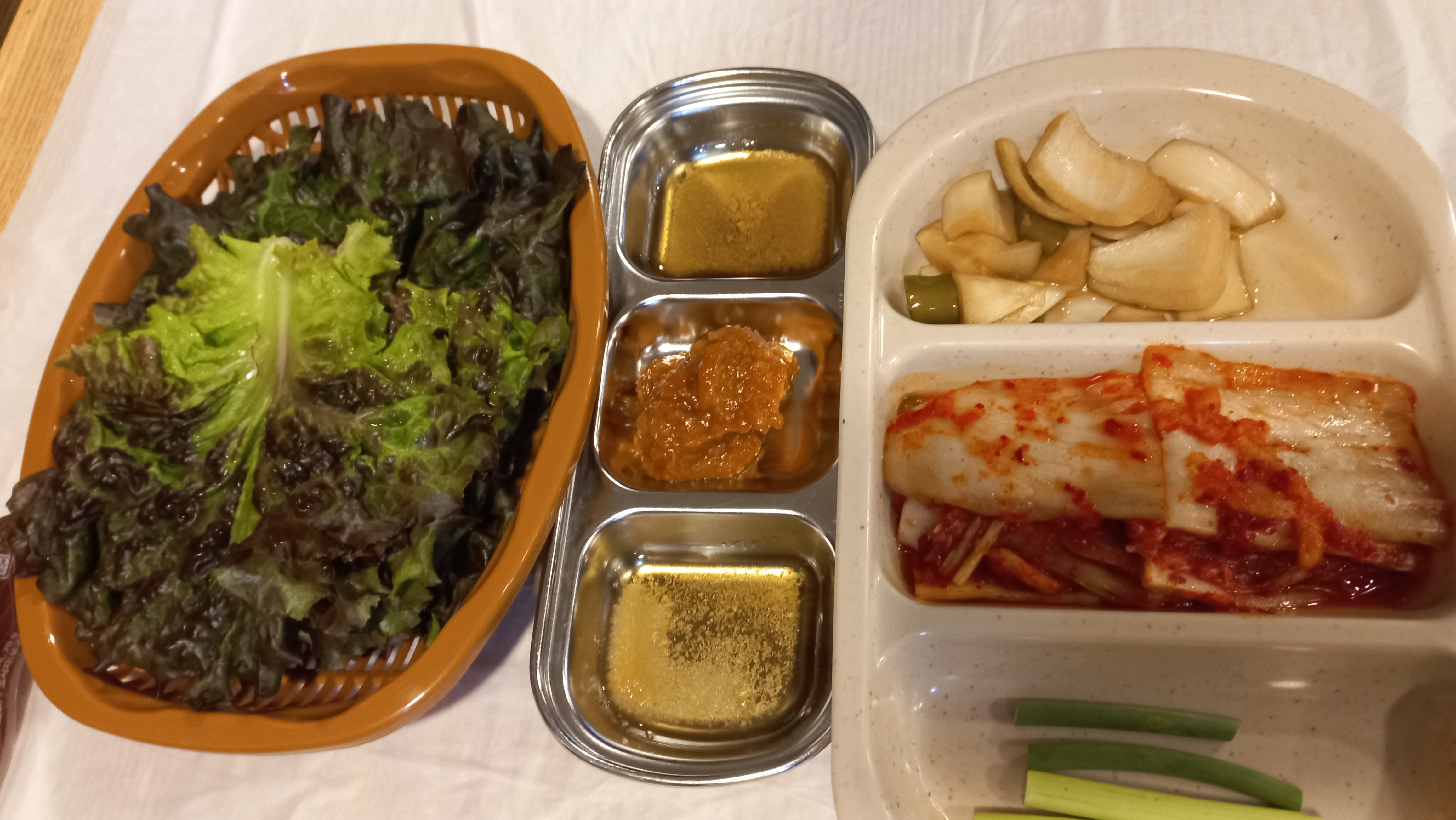 기본세팅 소금, 쌈장, 김치(김치는 리필불가)