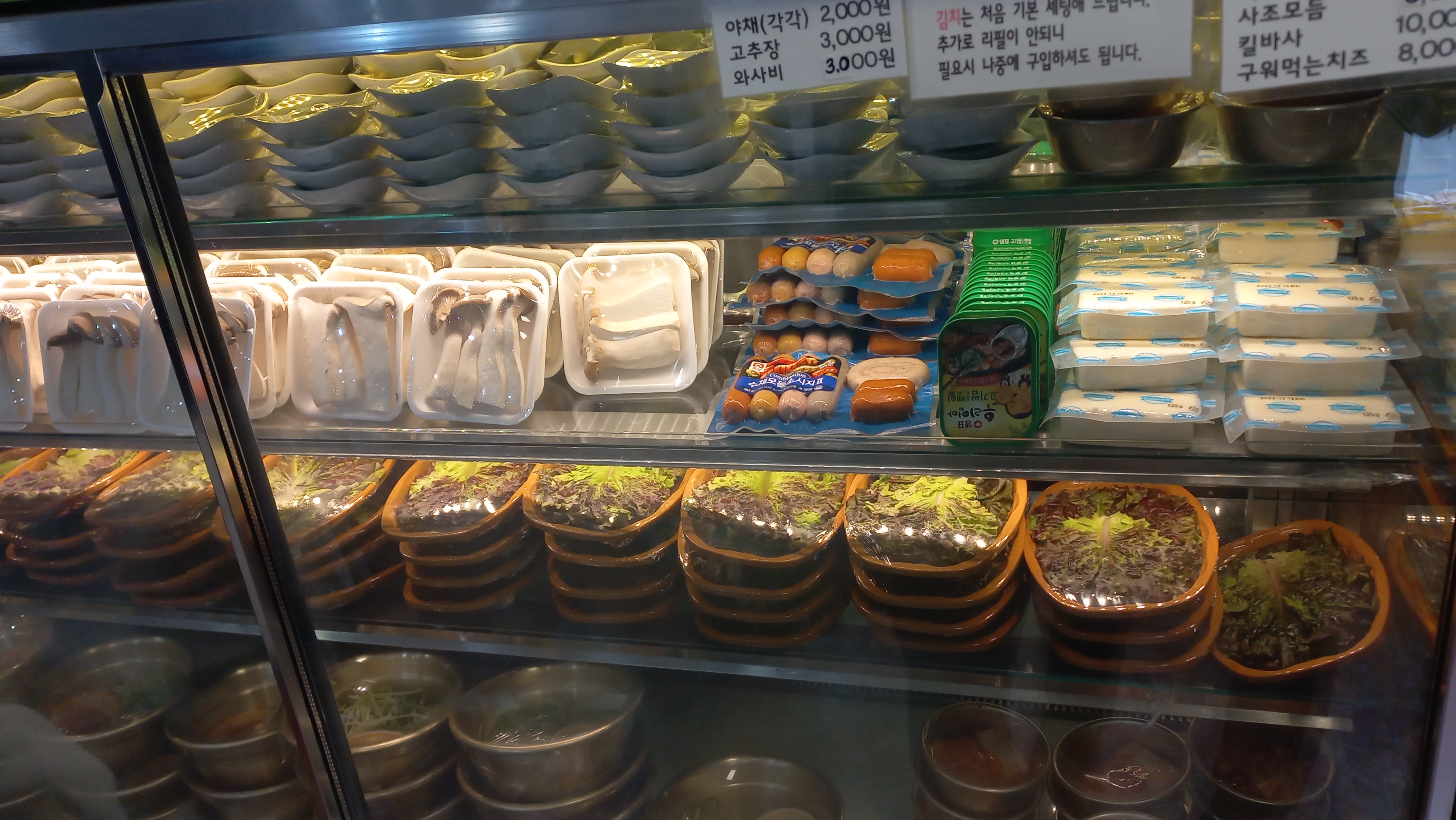 각종 야채(버섯, 쌈, 파절임 등 각각 2,000원), 고추장(3,000원, 와사비(3,000원) 등