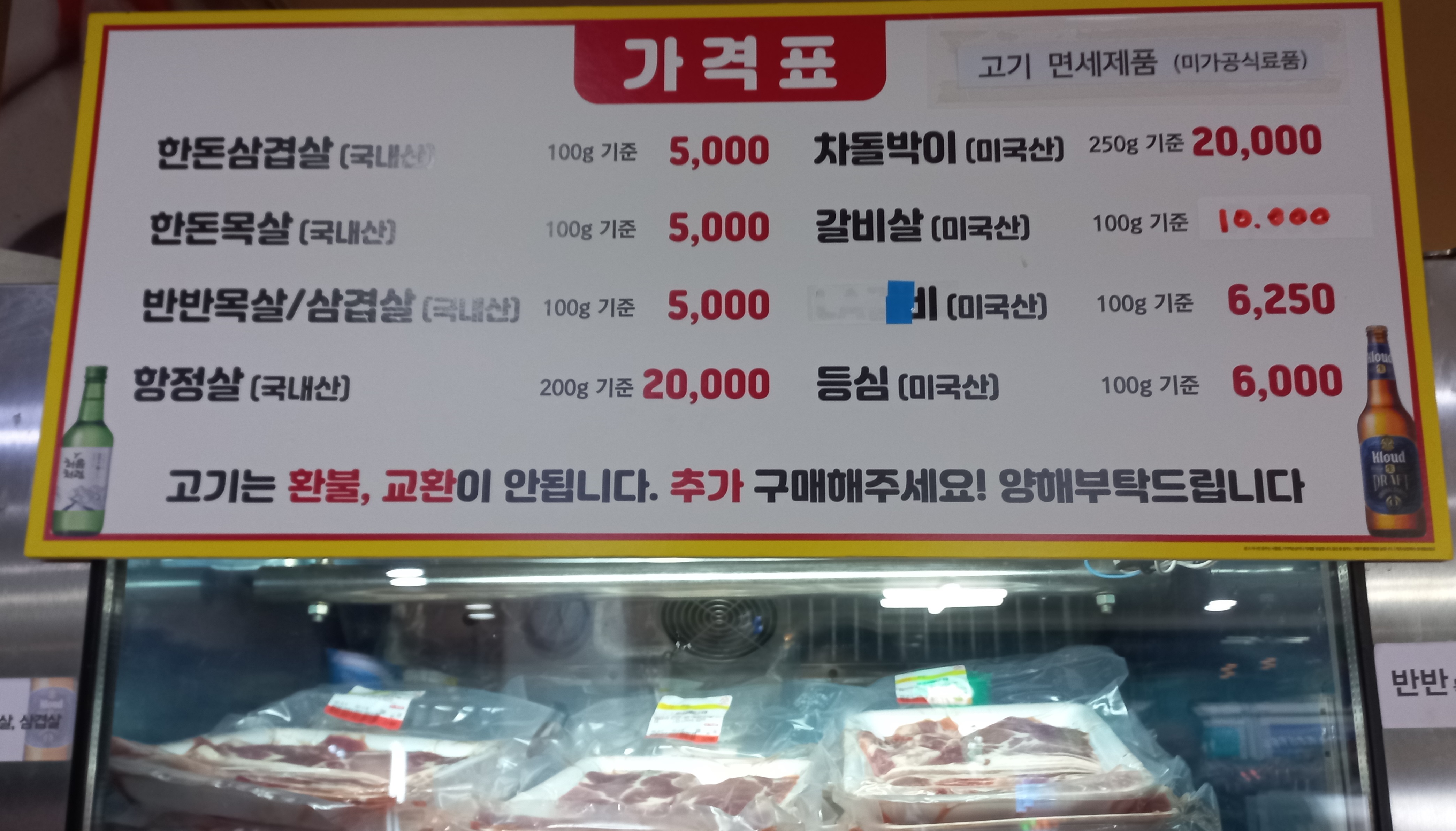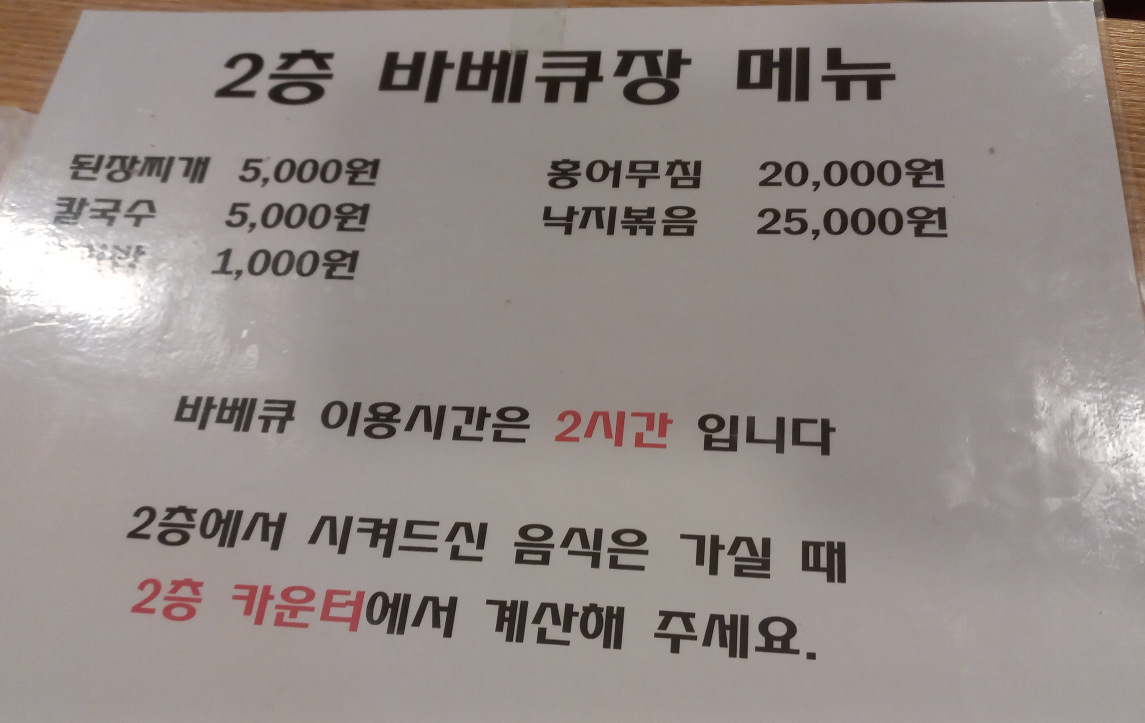 우리는 고기만 먹고 나니 배가 불러 추가로 주문이 없다 보니 결재한 내역은 없었습니다.