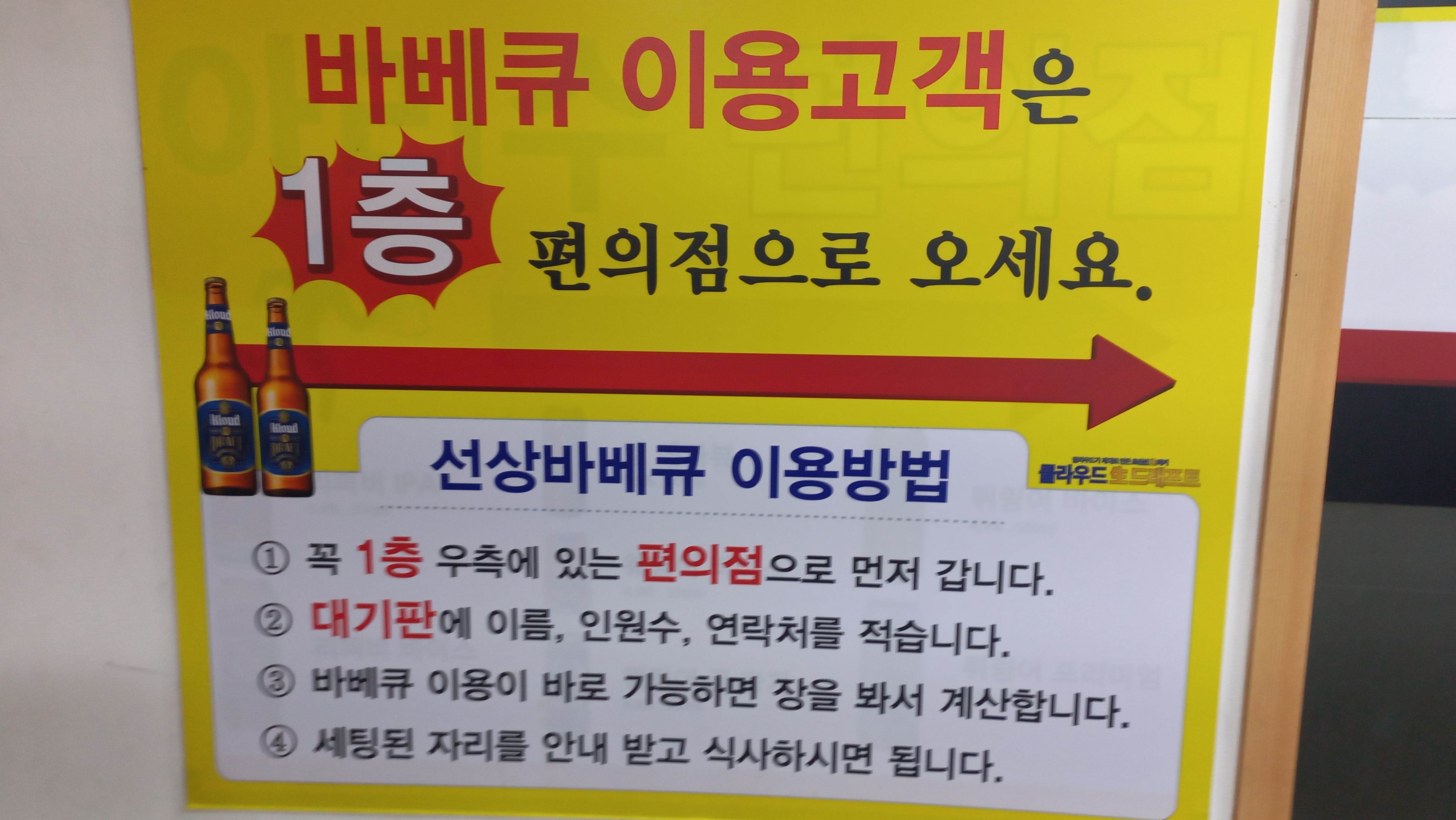 양화선착장 아리수만찬에서 바베큐를 이용하려면 1층 편의점으로 가면 됩니다.