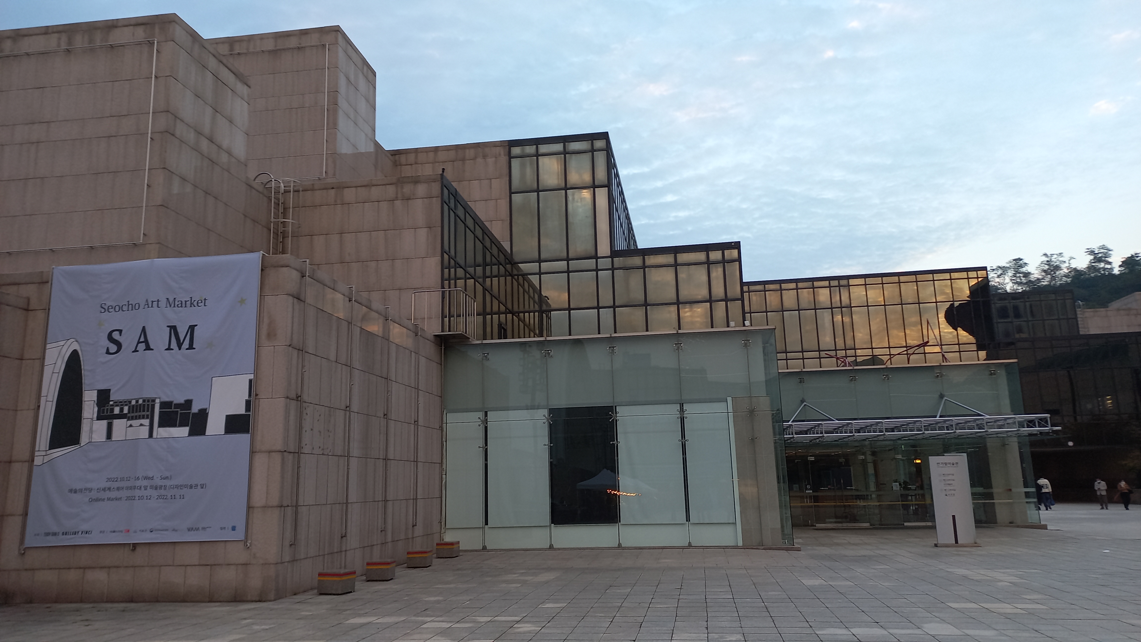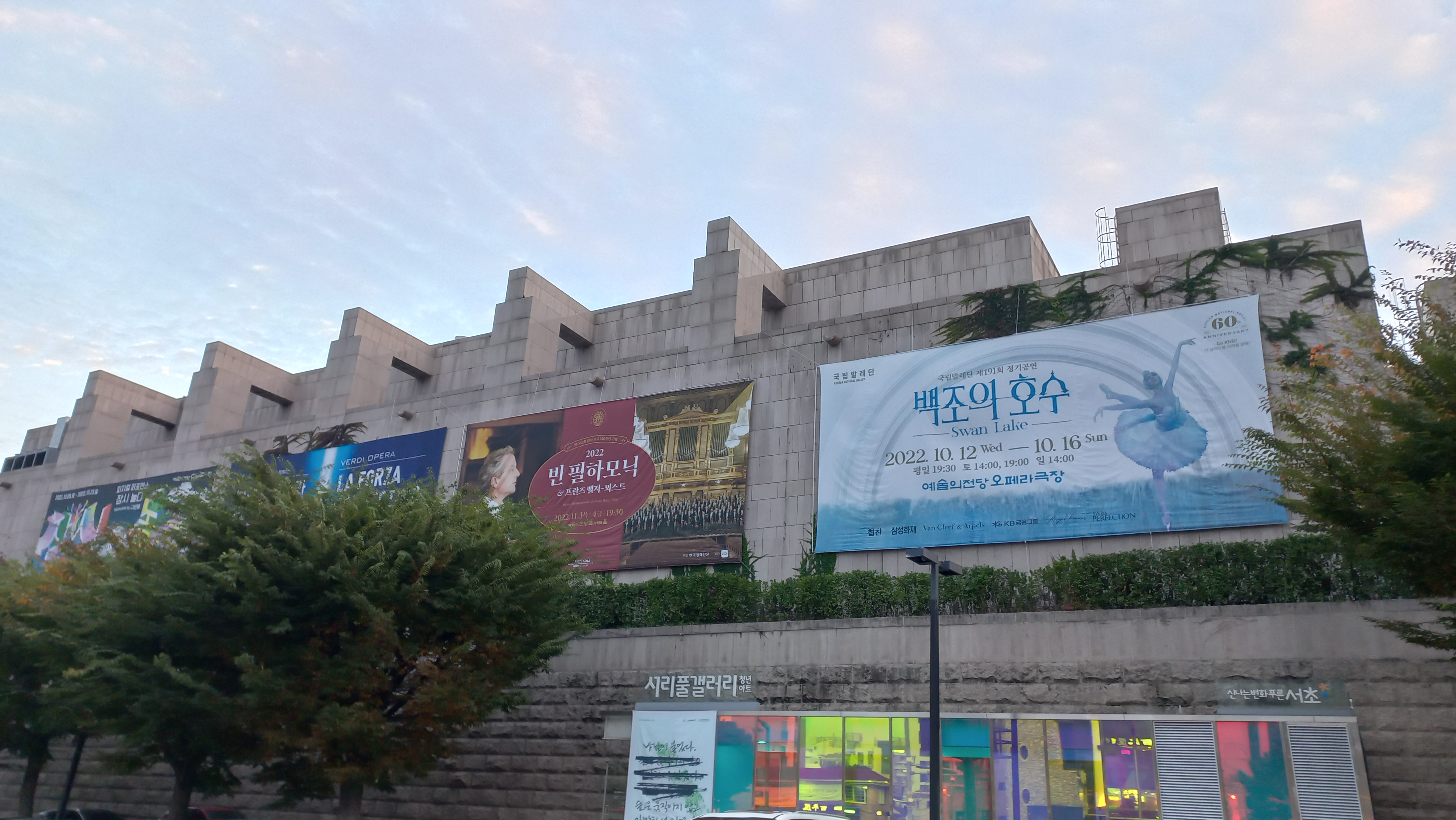 한가람미술관 벽엔 예술의전당 공연 현수막이 걸려 있습니다.