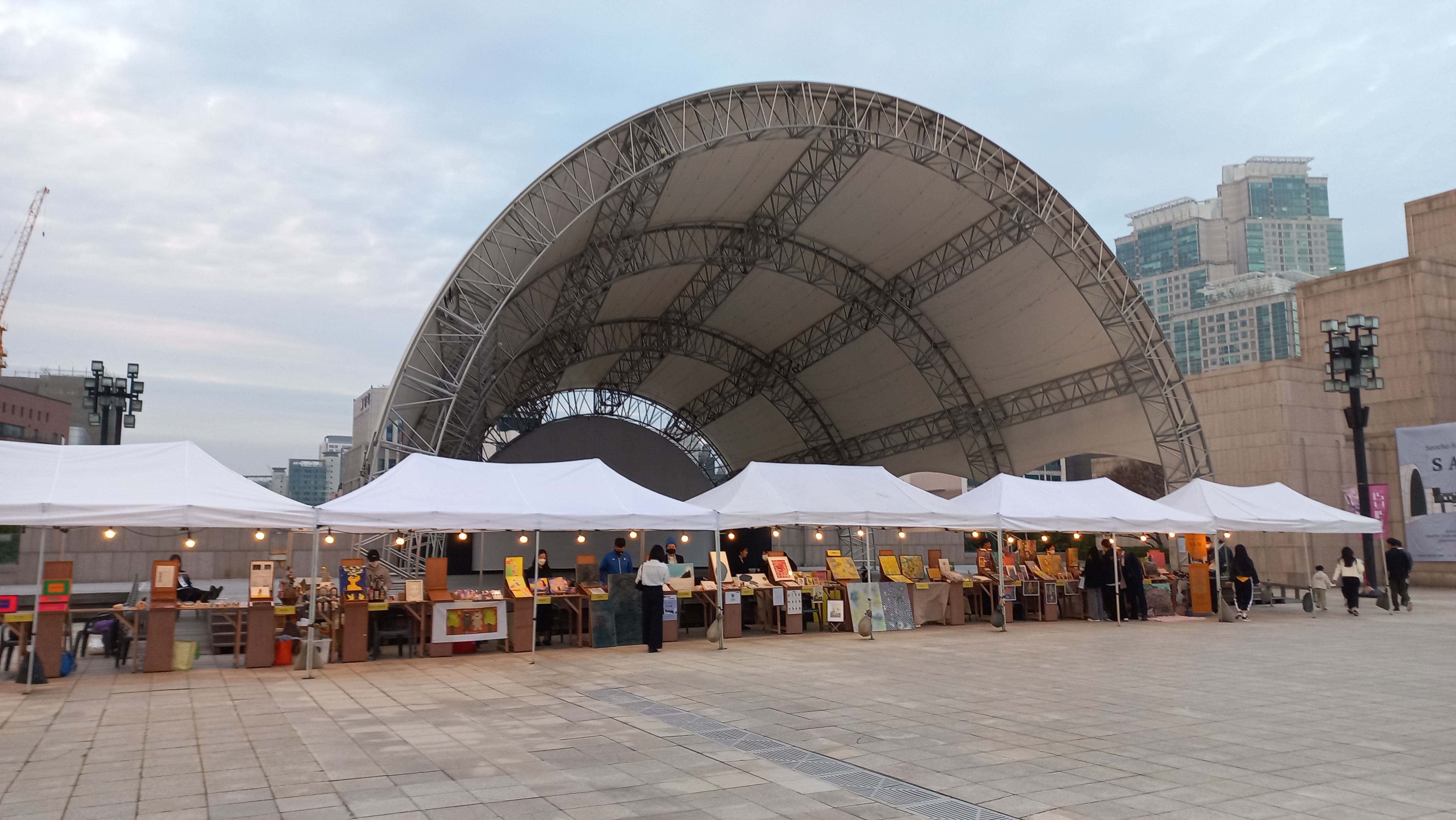 원형극장 앞에는 아트 팝업스토어 SAM이 열리고 있습니다.