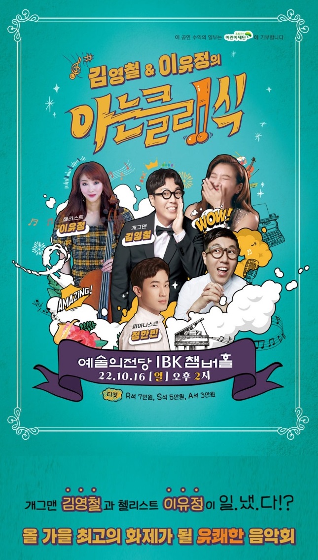 개그맨 김영철과 챌리스트 이유정, 피아니스트 정한빈의 '아는 클래식'이란 공연인데요.