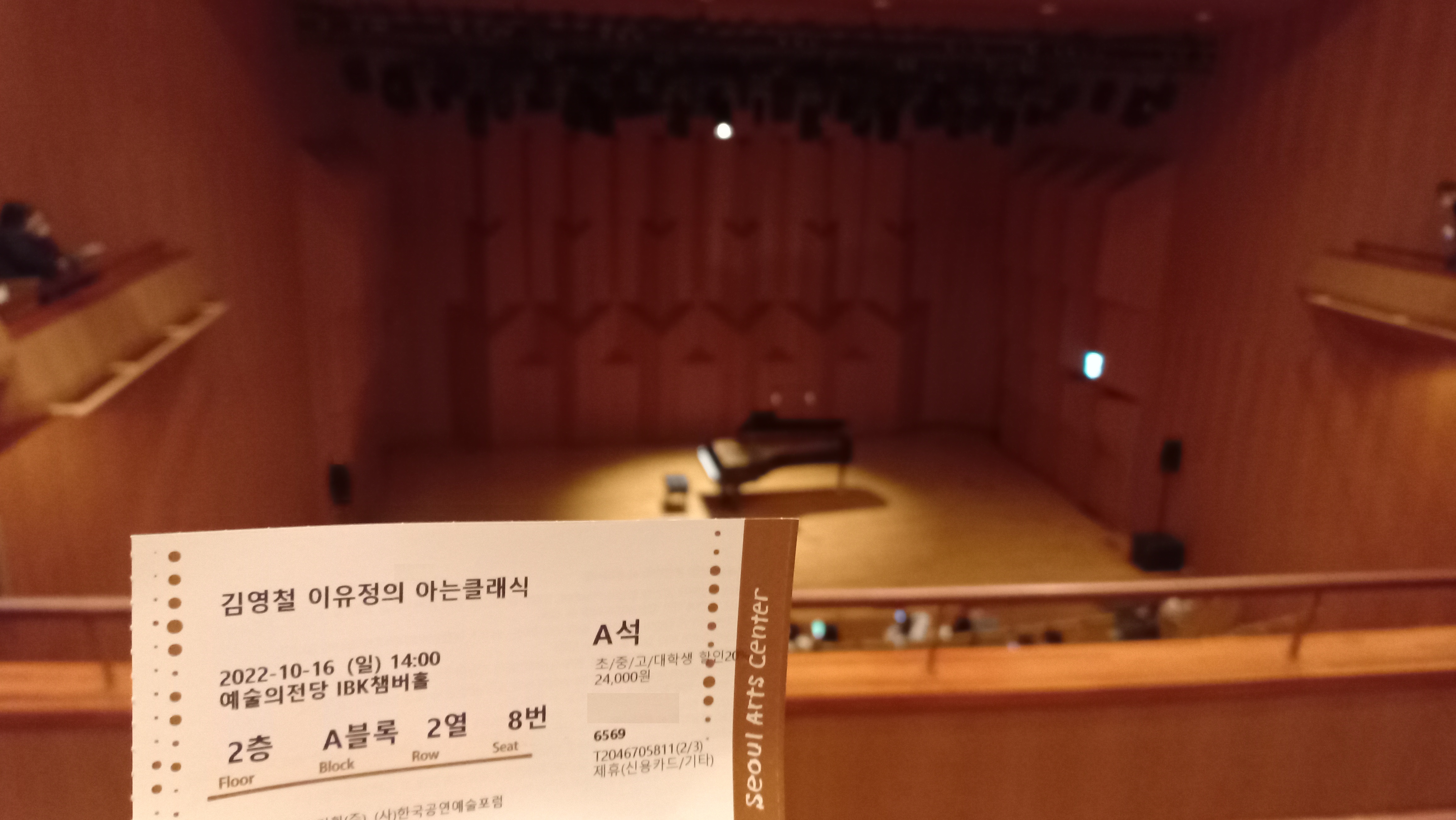 IBK챔버홀은 무대와 가까워 2층 A석에 앉아도 충분하더군요.